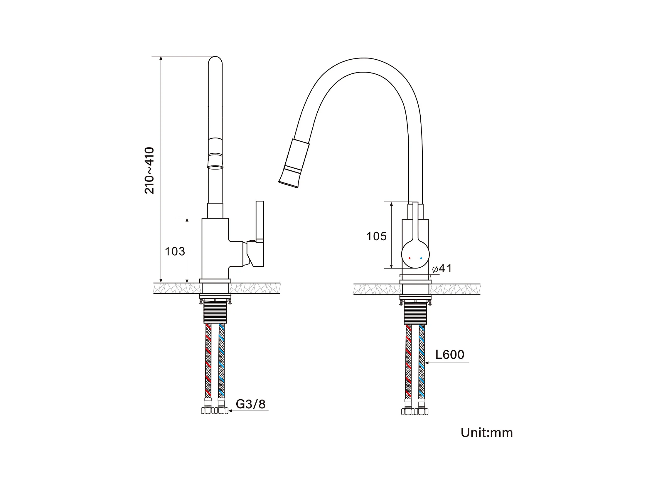 Wastafelmengkraan met flexibele uitloop, keukenkraan, keuken 360° draaibare flexibele mengkraan, grijs