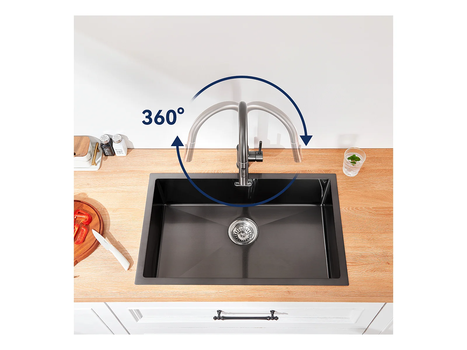 Lonheo Max 2 stks Keukenkraan met Uittrekbare Handdouche Donkergrijs 360 ° Draaibaar Roestvrij Staal Wastafel Keukenmengkraan 2 Functies, EU Model