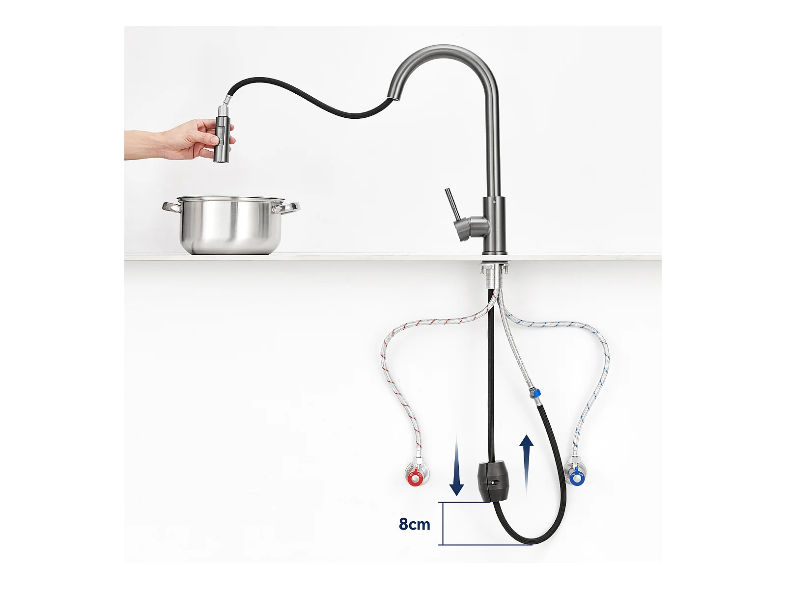 Lonheo Max Keukenkraan Grijs met 2 Functies Uittrekbare Handdouche 360° Draaibare Keukenmengkraan Roestvrij Staal, EU Model