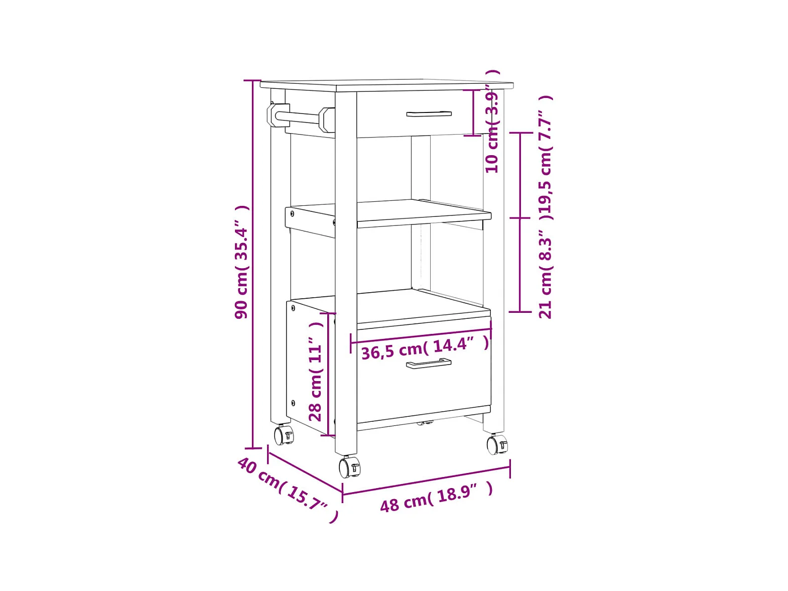 Keukentrolley MONZA 48x40x90 cm massief grenenhout