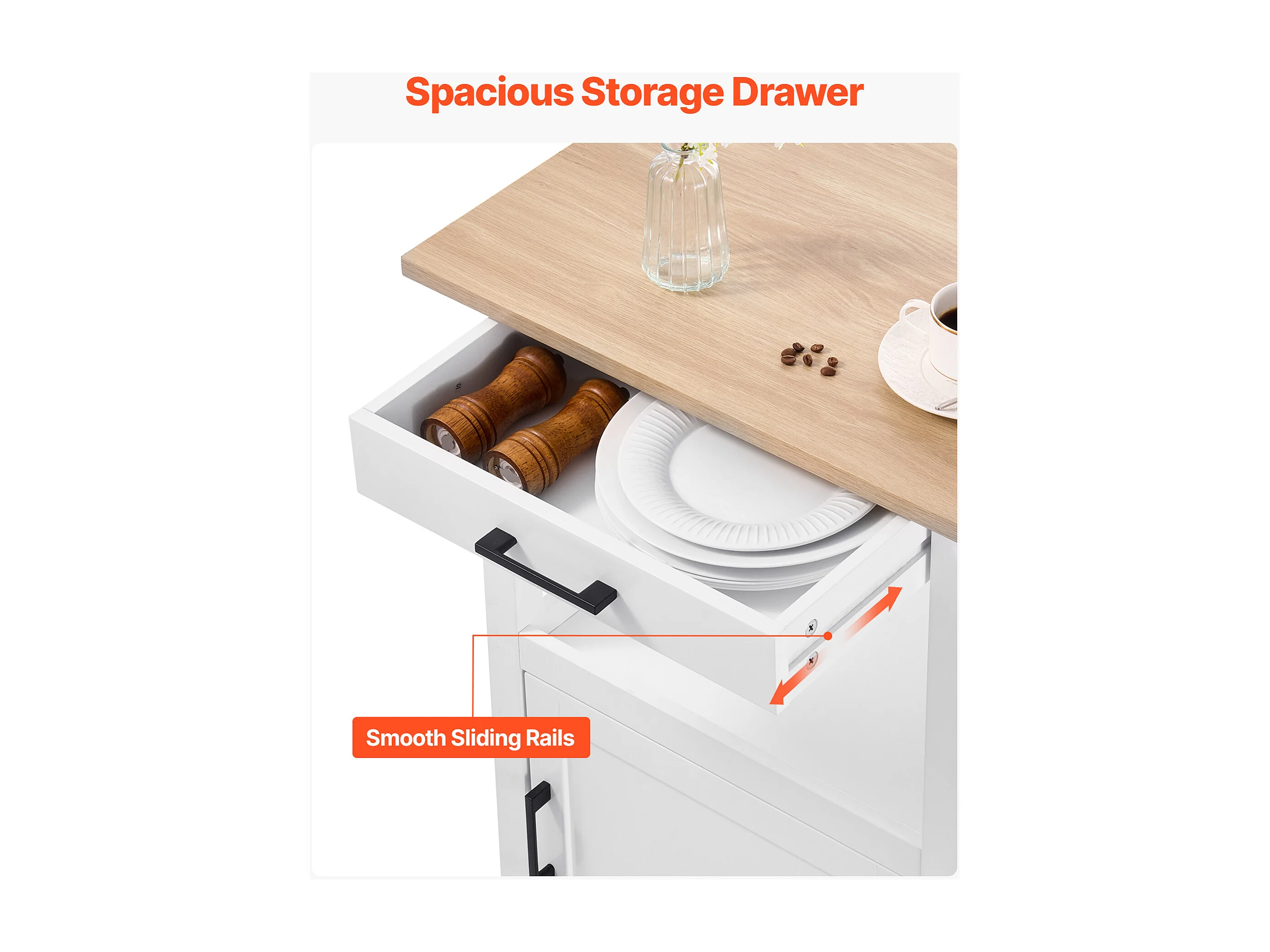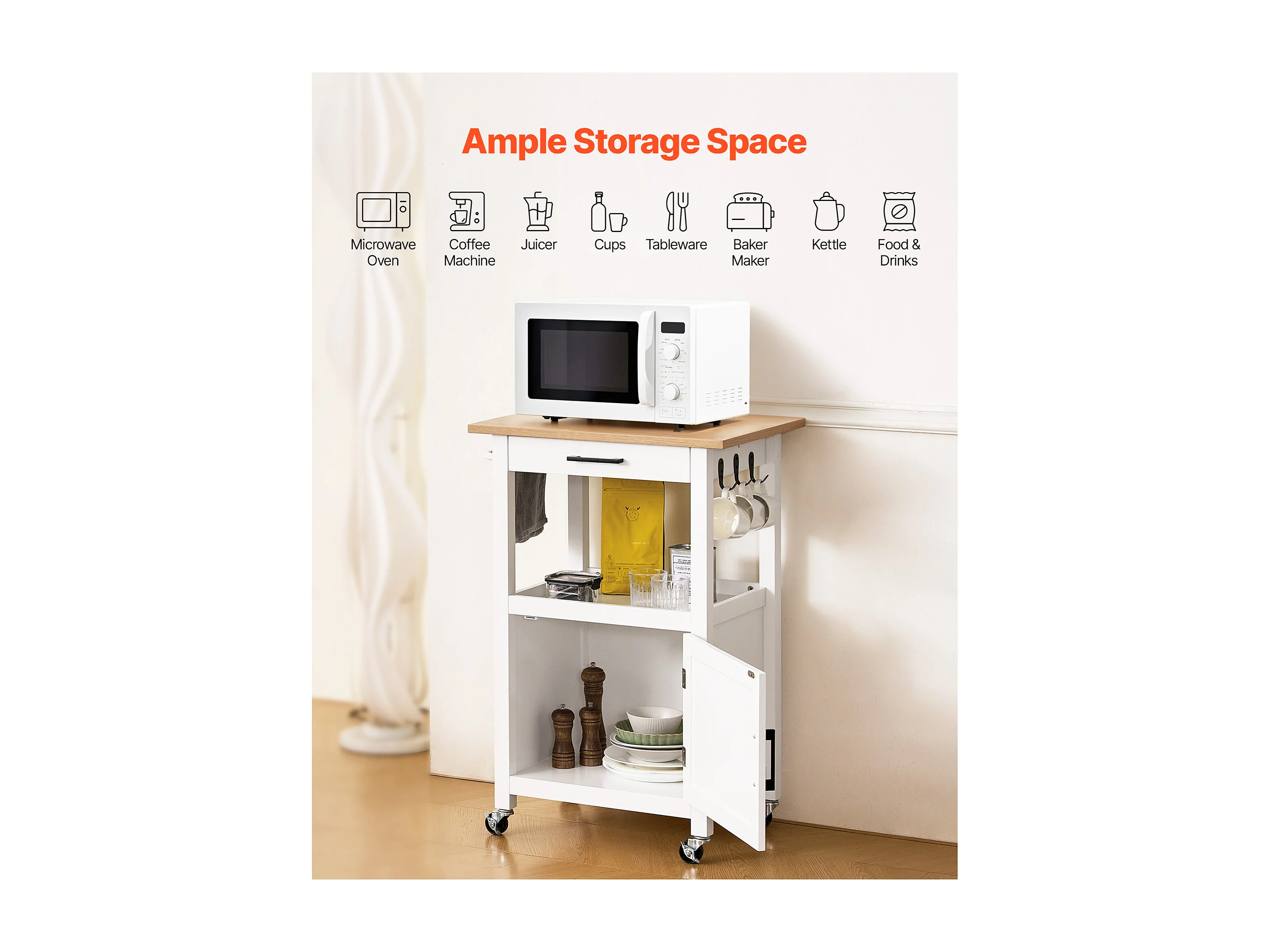 Keukentrolley SucceBuy op Wieltjes, met Blad 55x45 cm, Verrijdbaar Kookeiland met Lade, Meubel voor Magnetron, Eetkamer, Voorraadkast