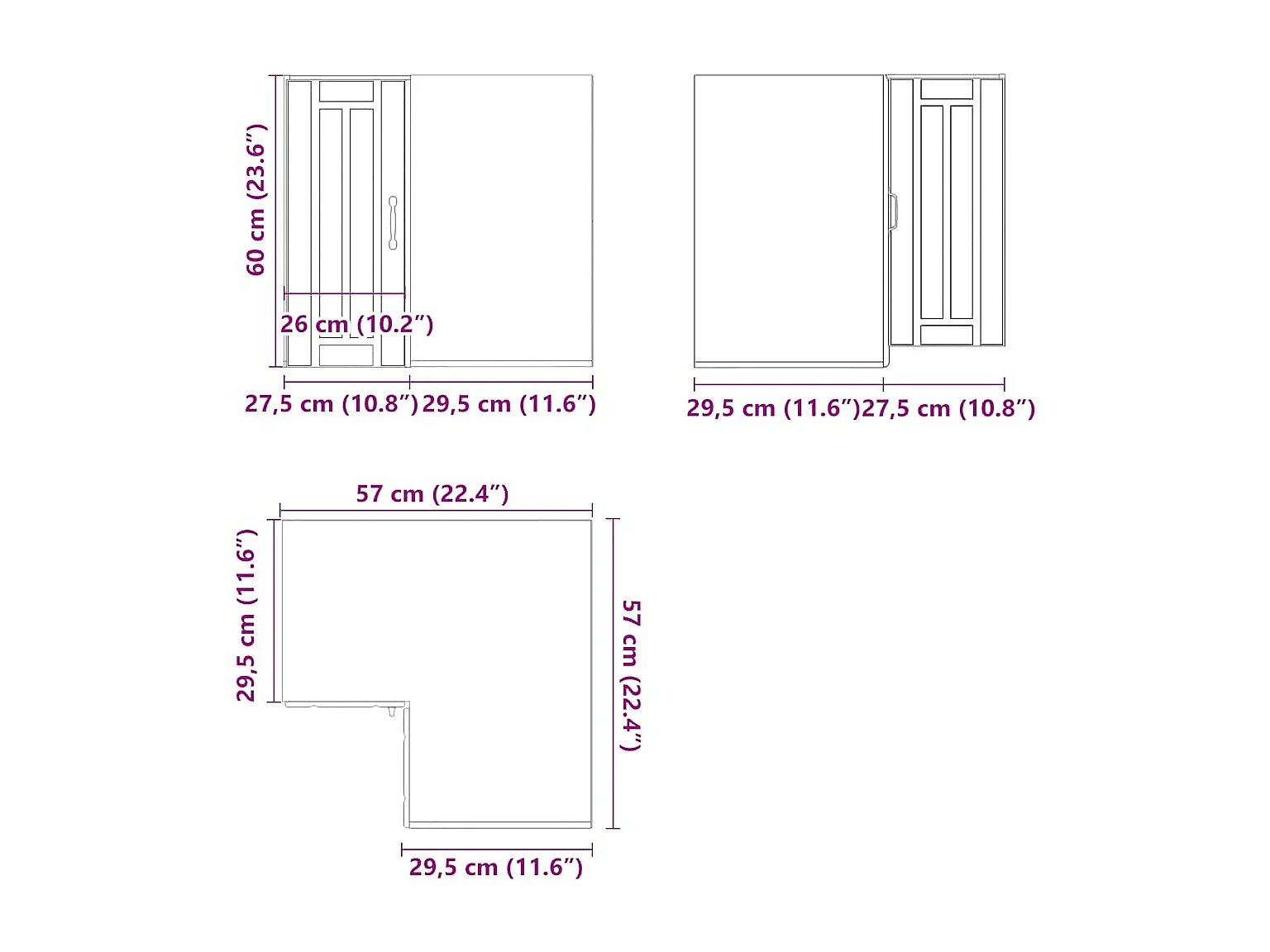 Hanghoekkast Lyon 57x57x60 cm bewerkt hout oud houtkleurig
