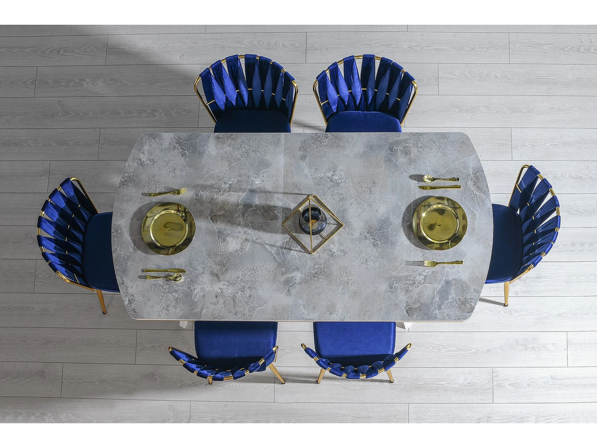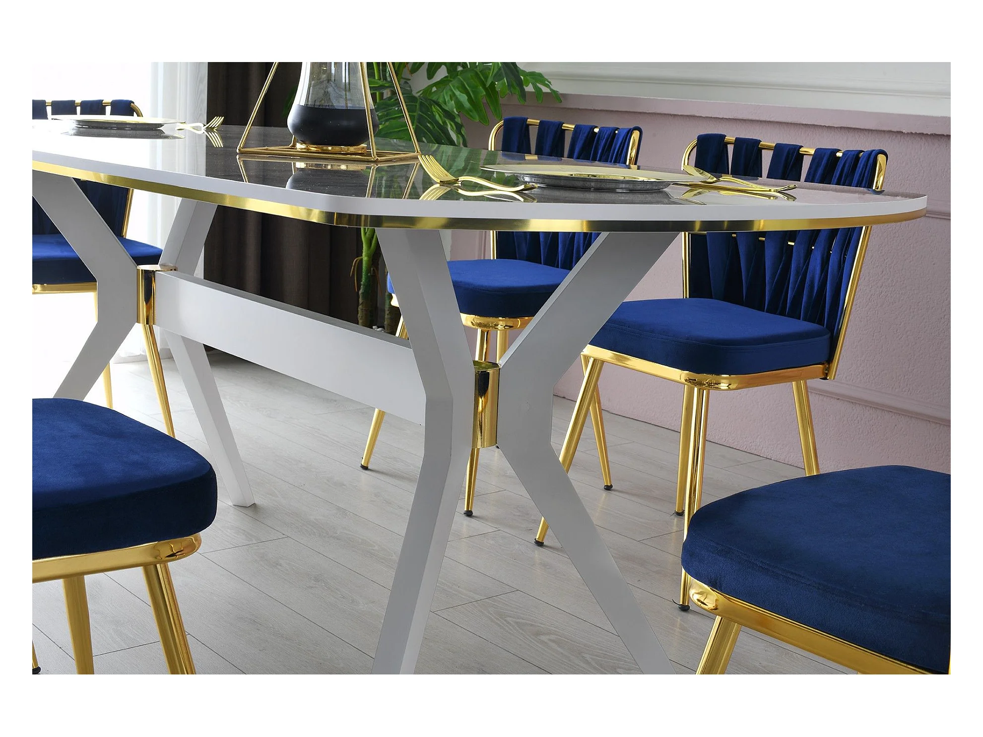 Kibona houten eettafel met wit marmereffect, 180 cm
