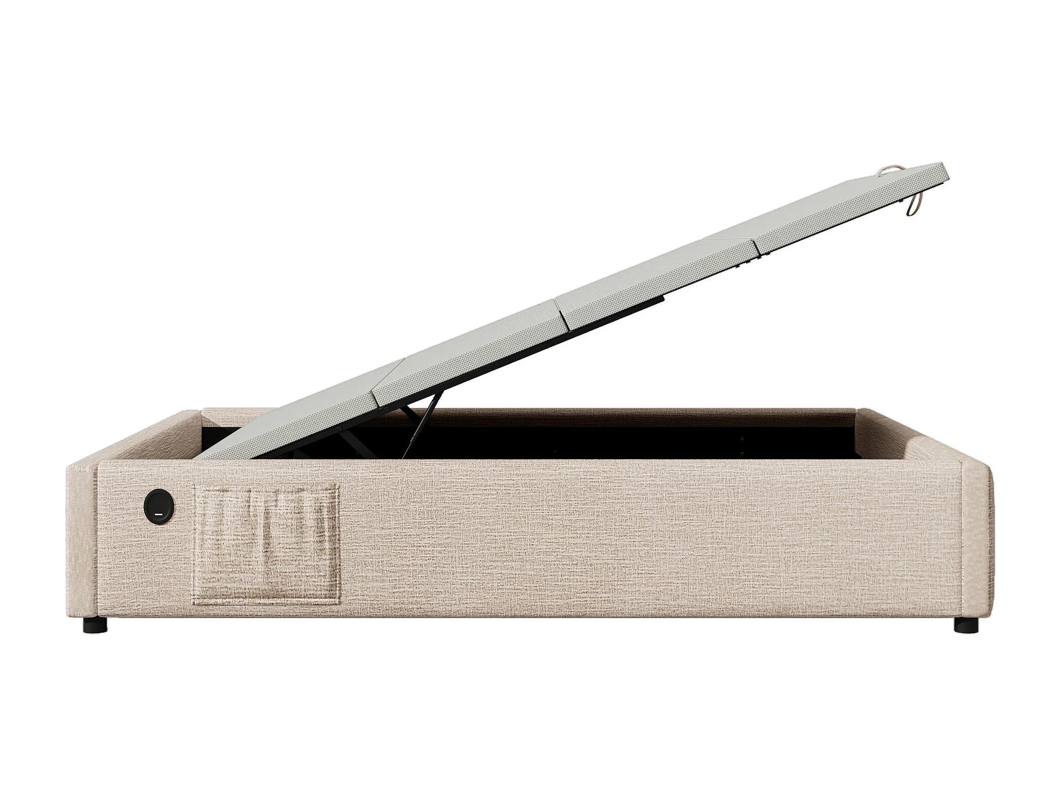 Kinderbed 1400x200cm Hoofdeinde met plank Modern ontwerp Hydraulische opbergruimte Linnen Metaal Hout Natuur (Zonder matras)