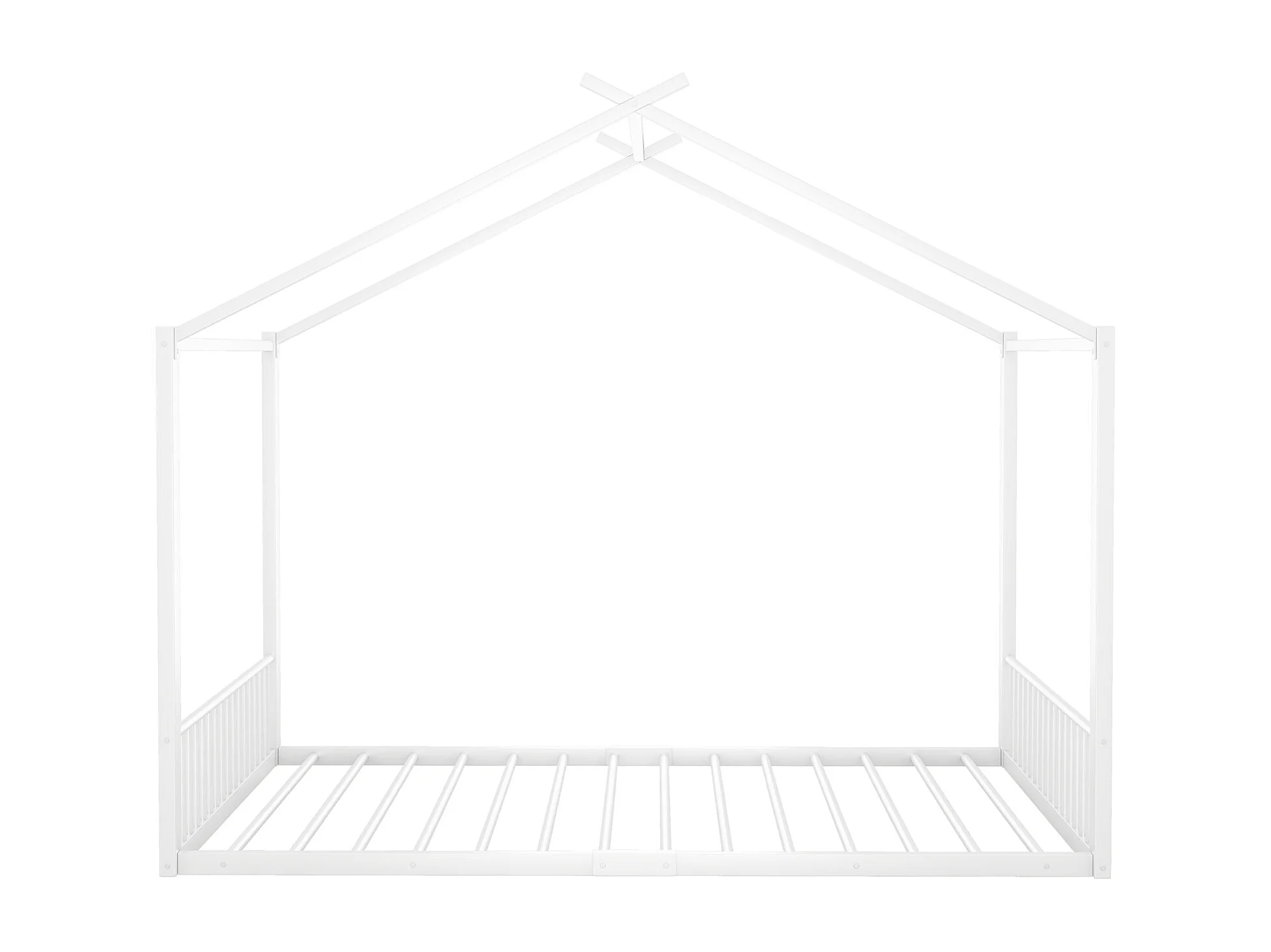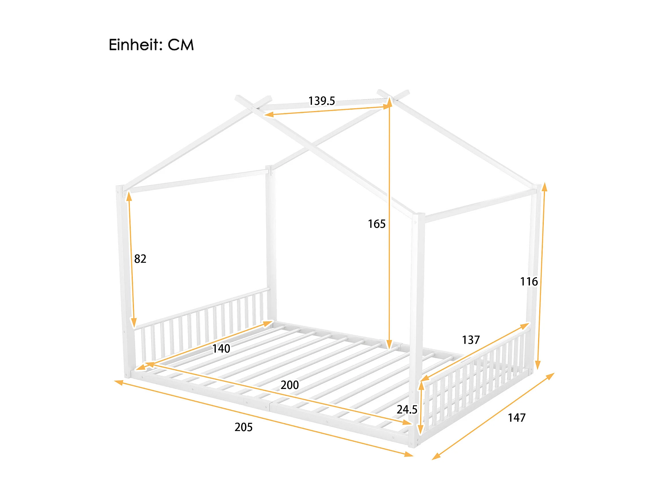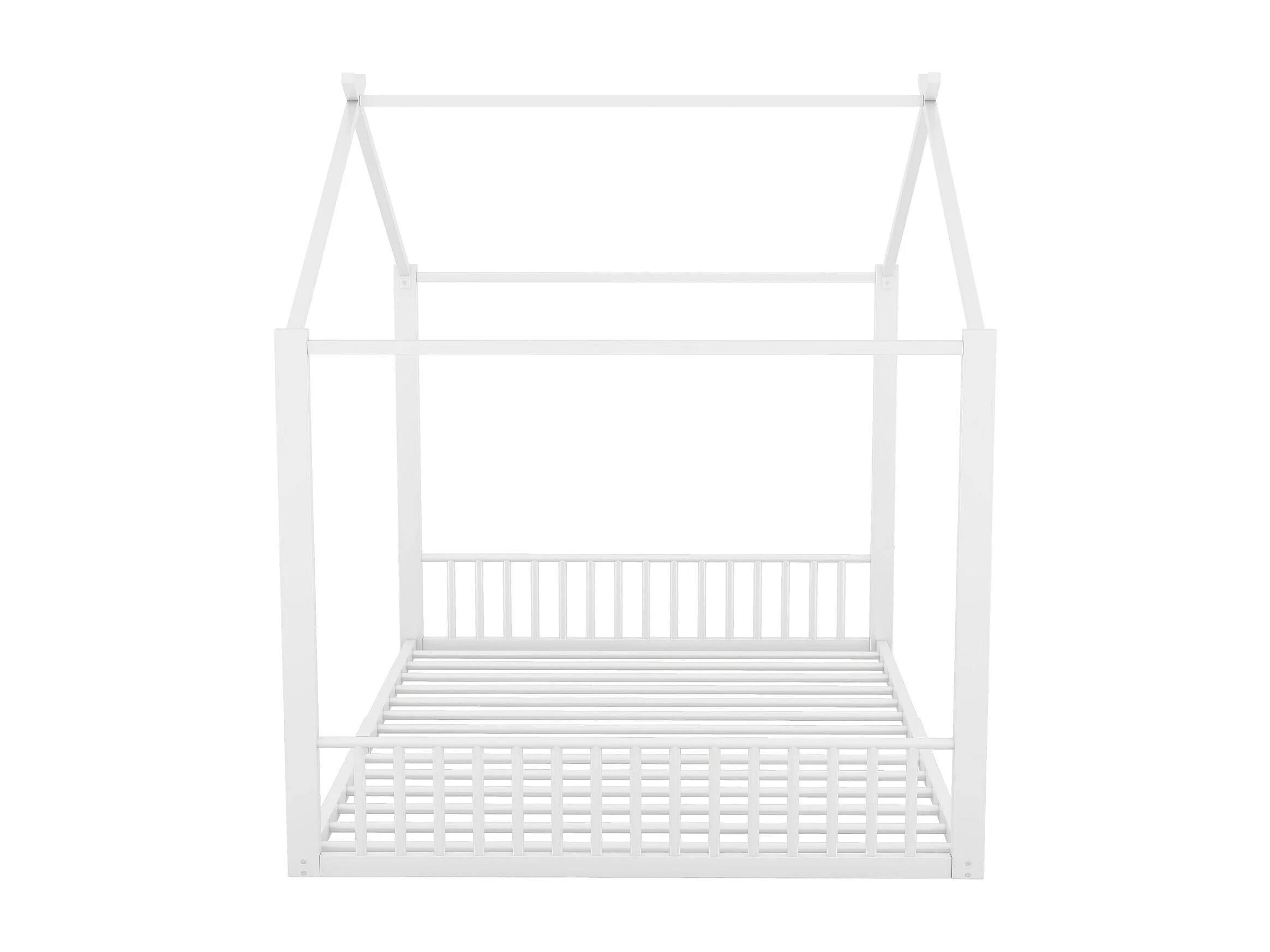 Huisbed 140x200 cm voor kinderen, wit metalen frame, modern huisontwerp en stevige constructie (zonder matras)