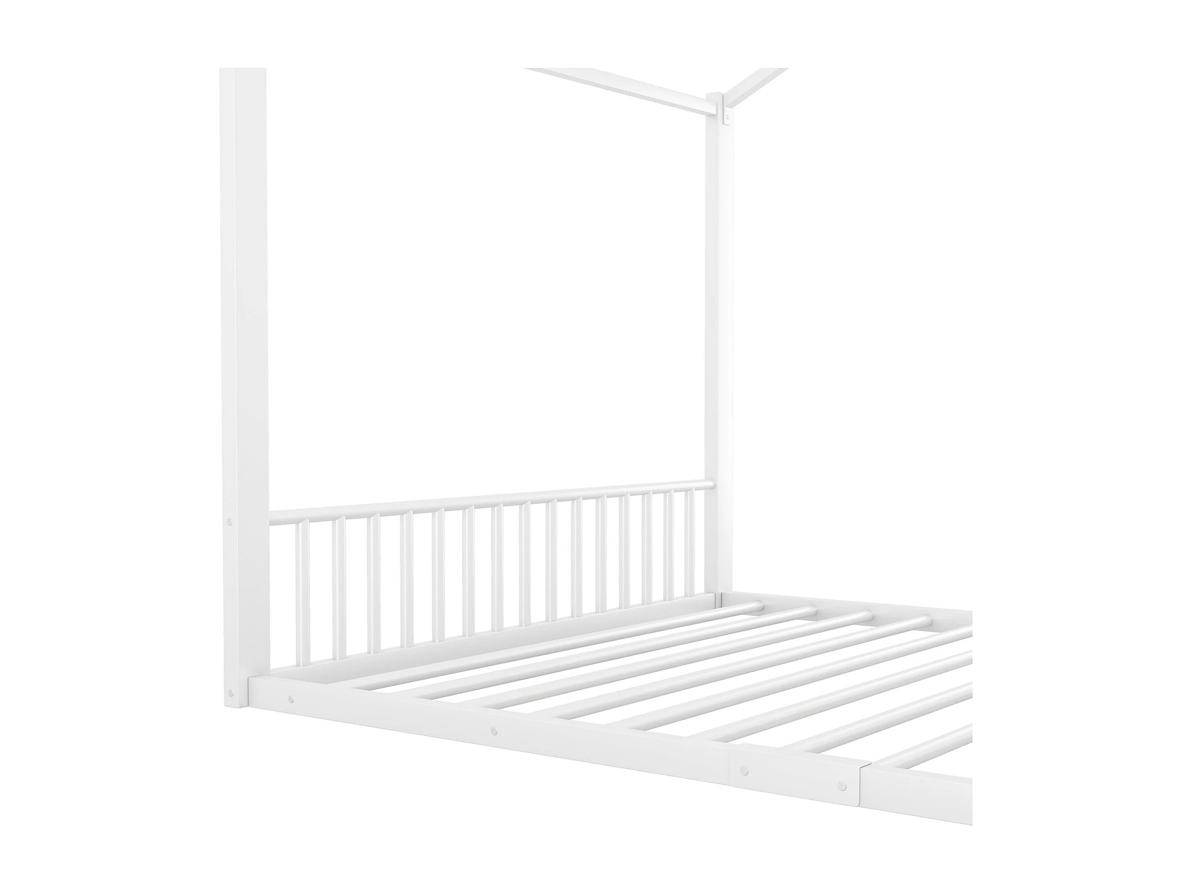 Kinderbed 140x200 cm zonder matras, metalen frame met hoofdeinde in de vorm van een huis – comfortabel, wit