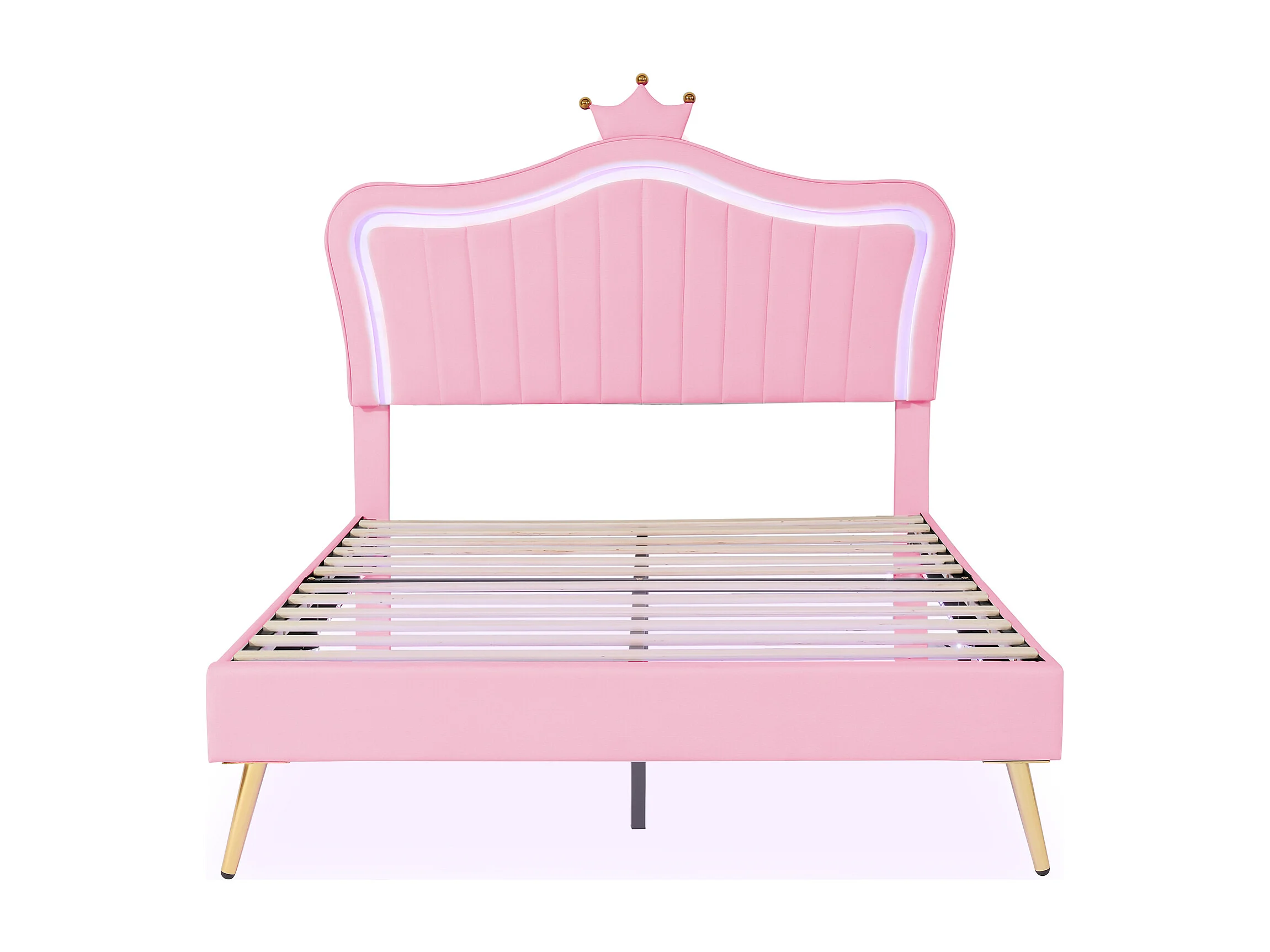 Kinderbed 203x152x134 cm met ledverlichting en lattenbodem in roze voor kinderen en tieners