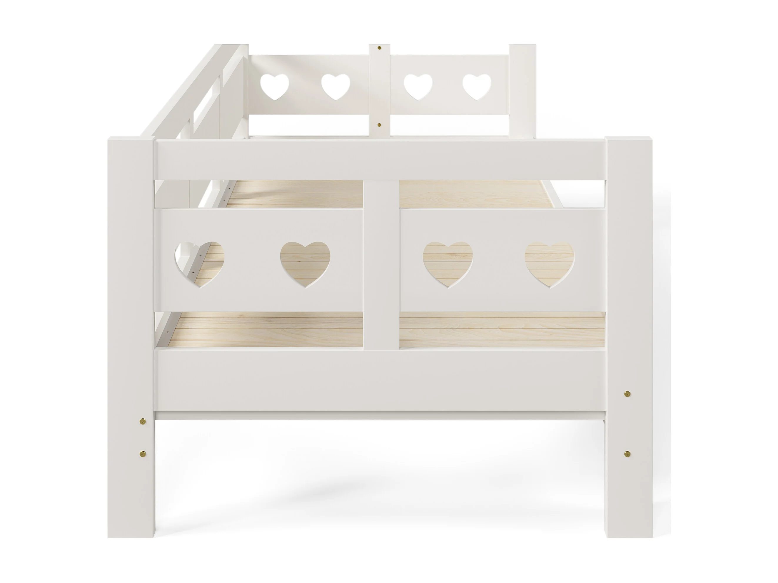 Uitschuifbed 90x190 cm met hartvormig ontwerp, met 2e slaapplaats, hout, wit (zonder matras)