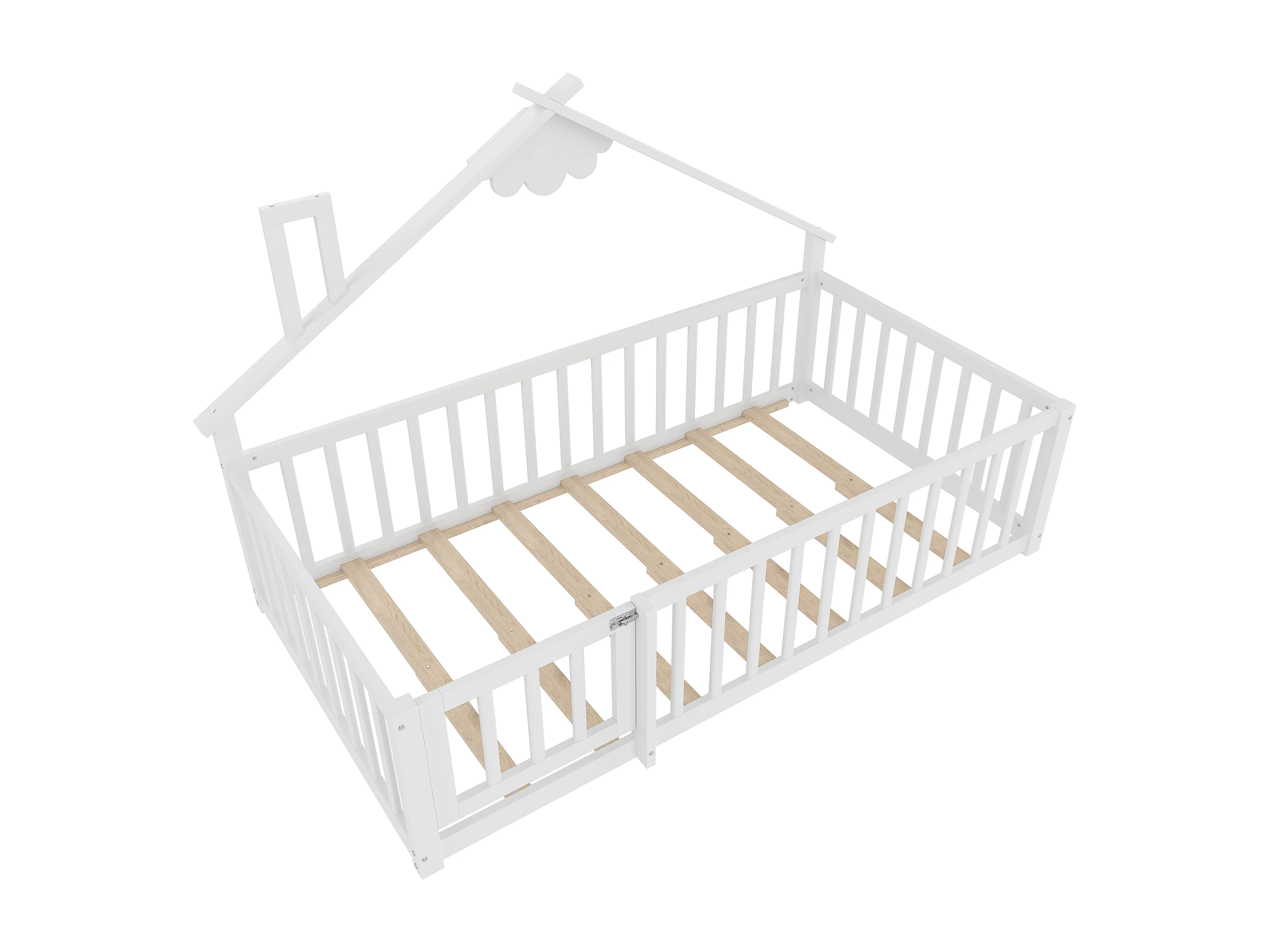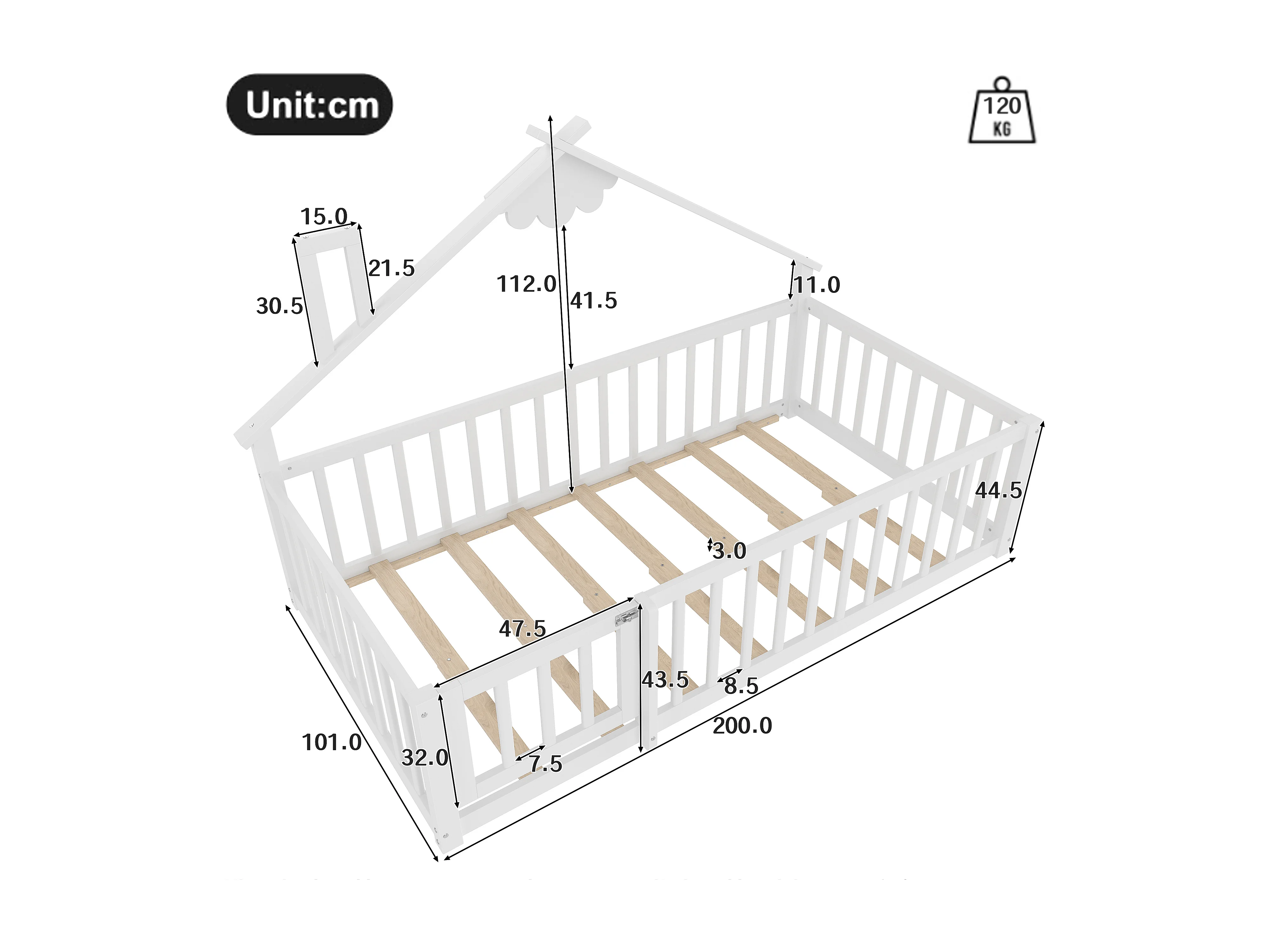 Kinderbed 90x190cm, lattenbodem, grenen frame, zonder matras, wit