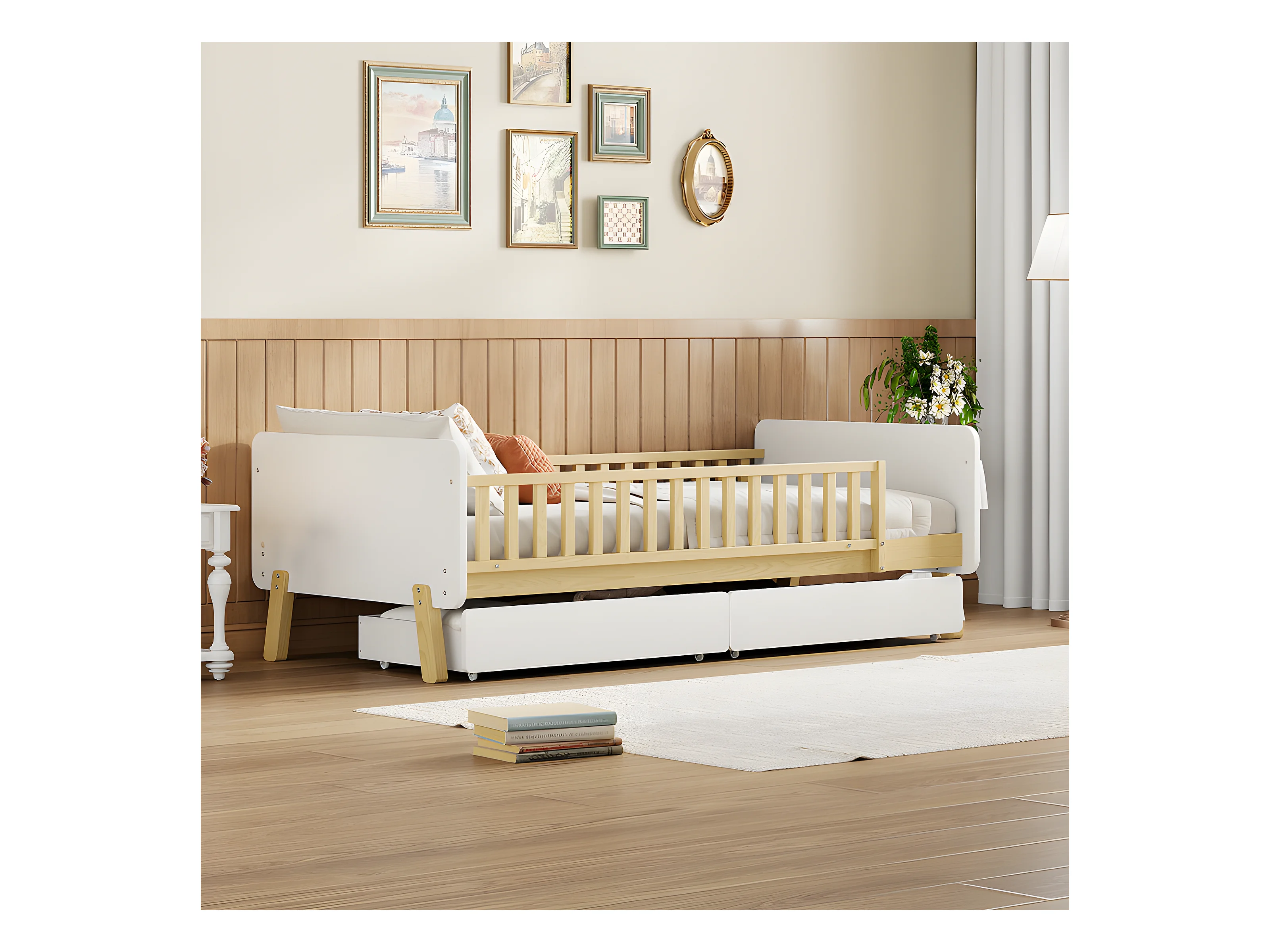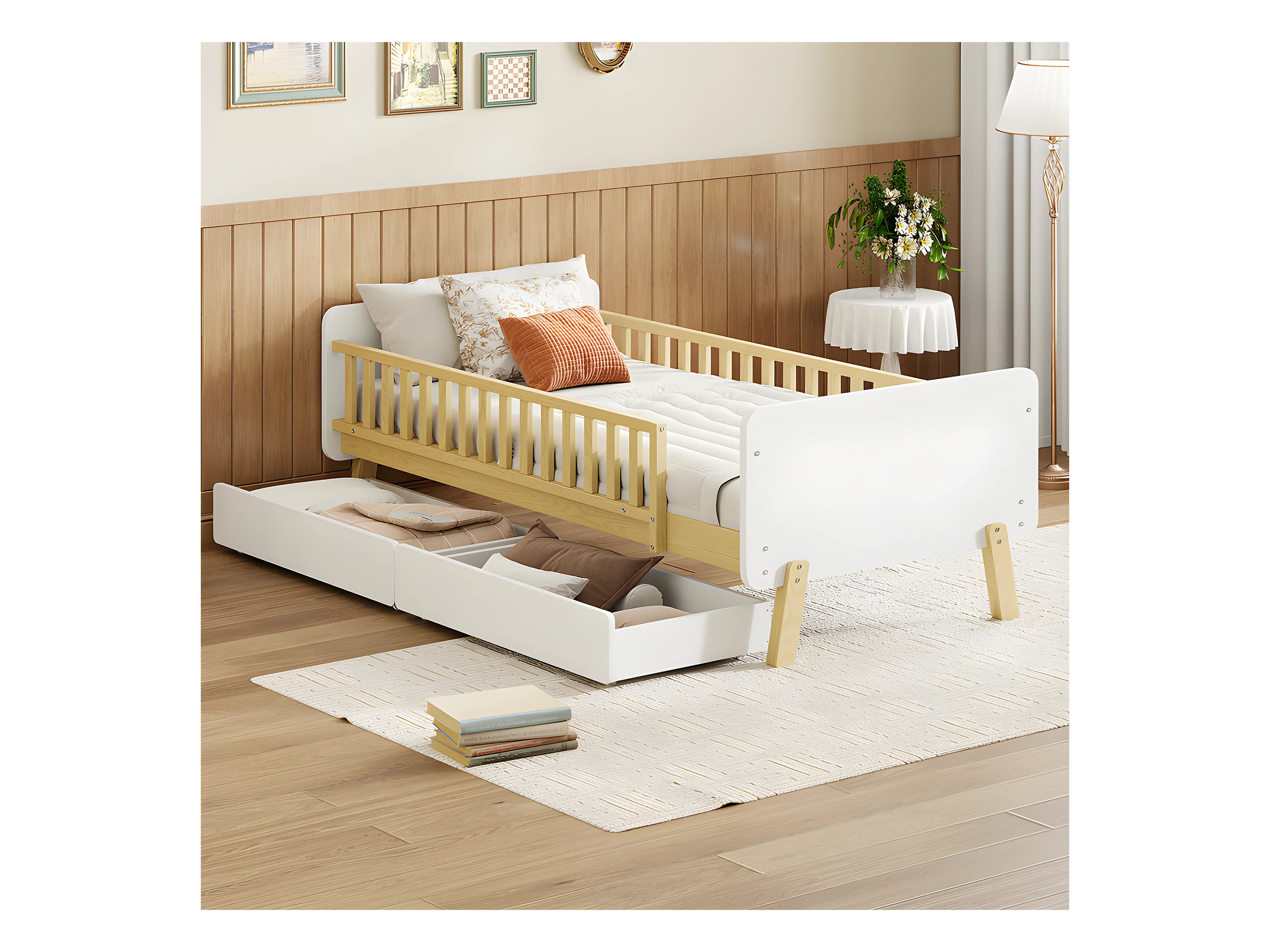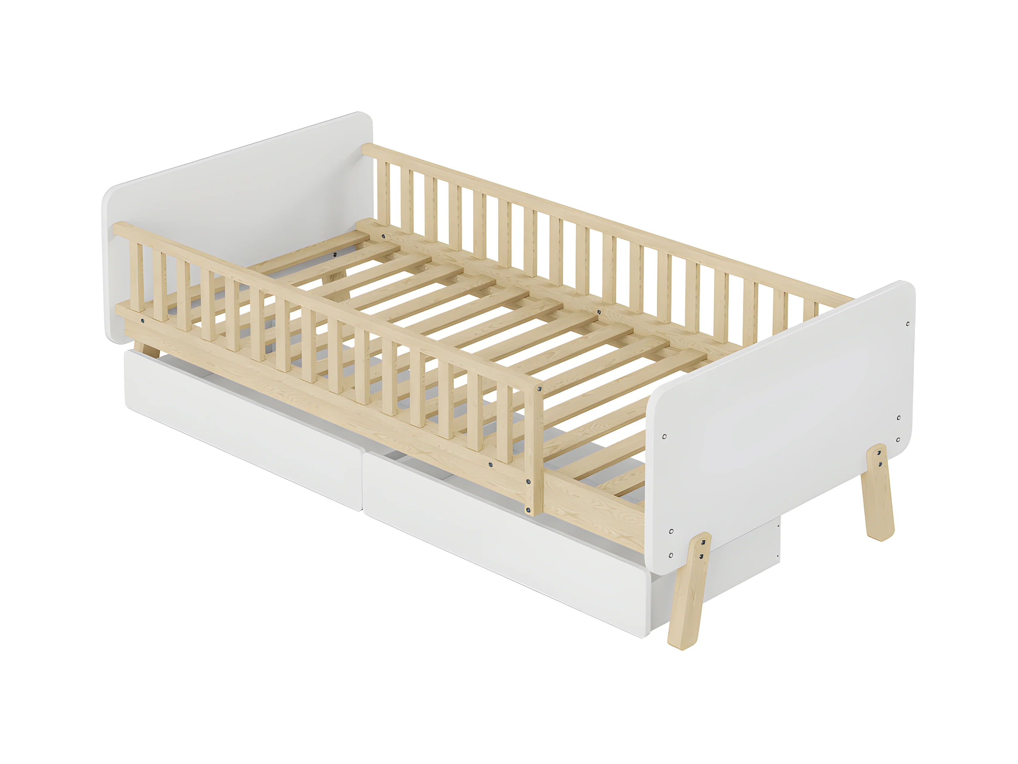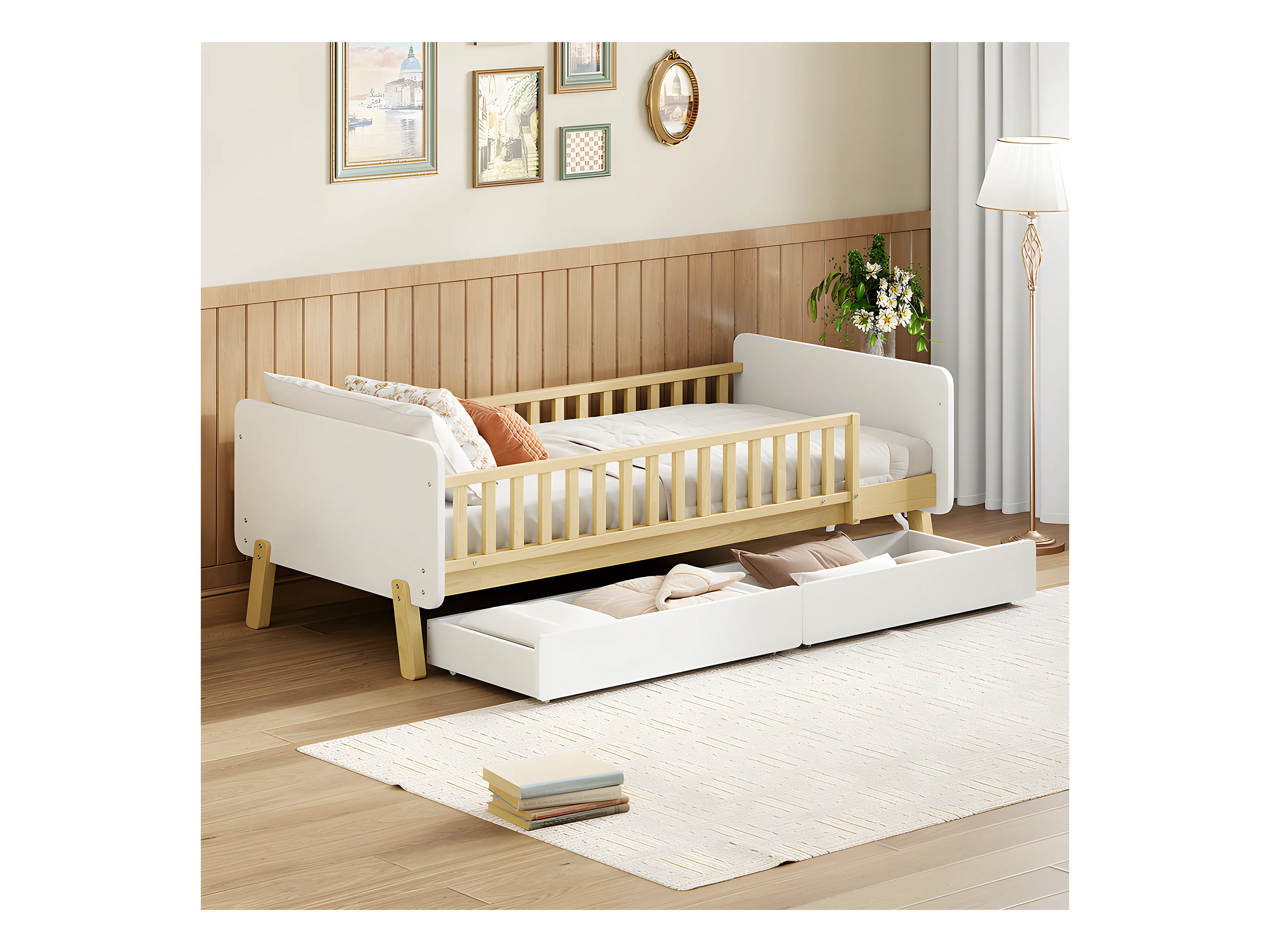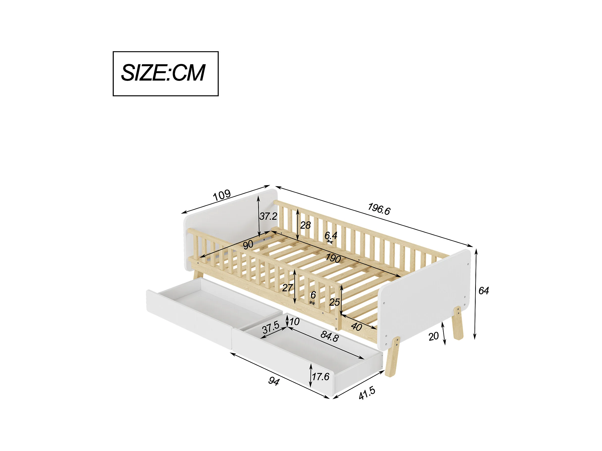 Kinderbed 90x190cm met 2 lades - massief houten eenpersoonsbed met lattenbodem - Wit