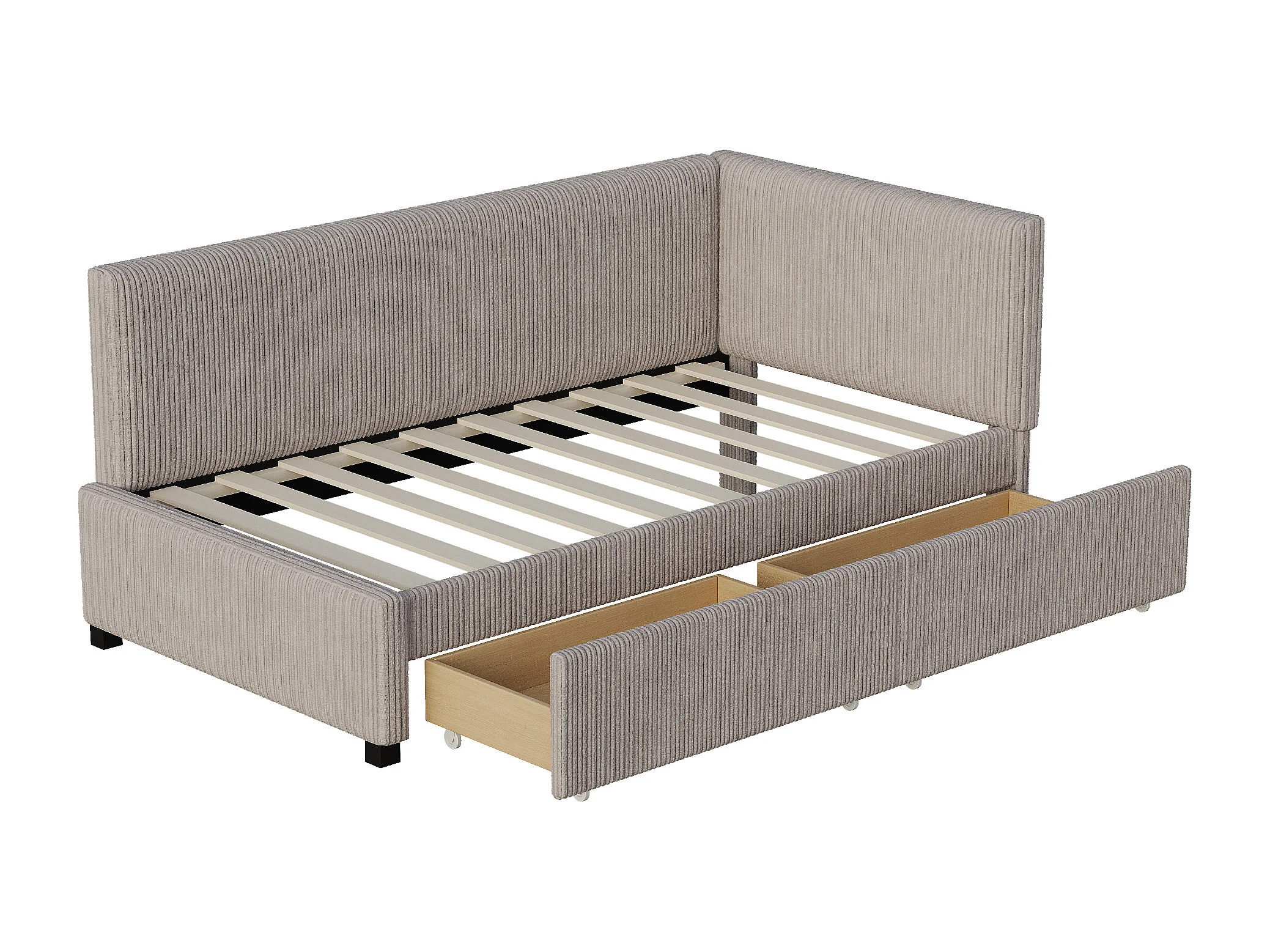Kinderbed 90x200 cm - met hoofdbord, 2 lades, lattenbodem - grijs - exclusief matras