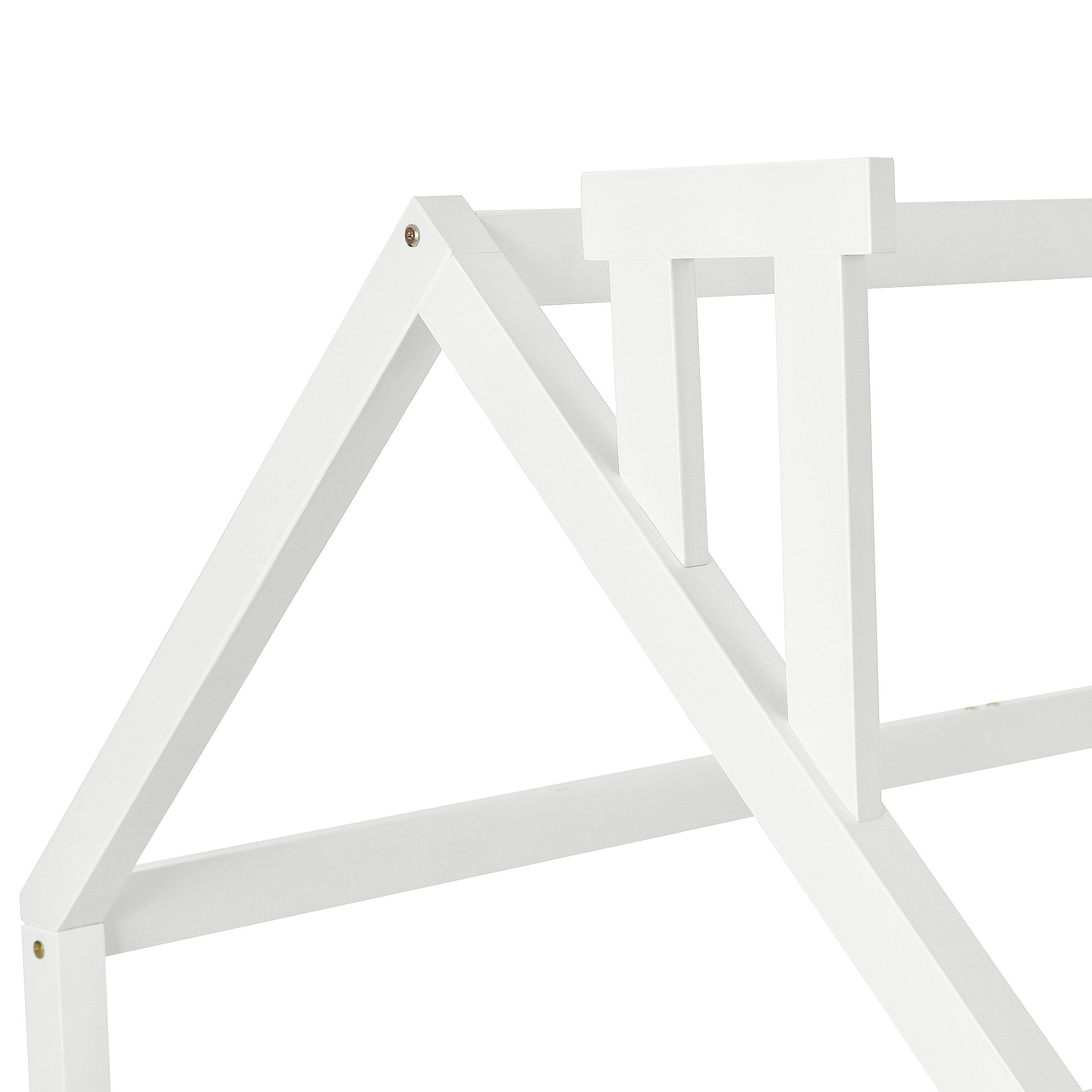 Kajuitbed 90x200cm, vlak kinderbed in de vorm van een huis met lattenbodem, in massief grenen, wit