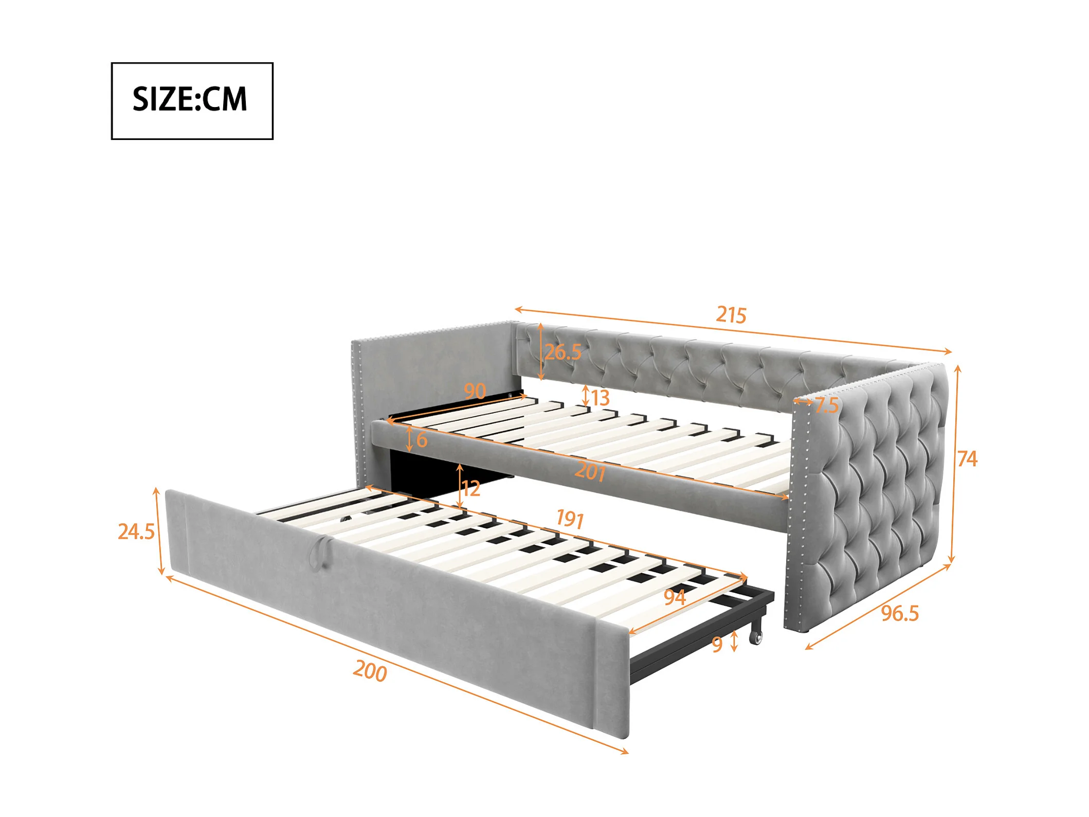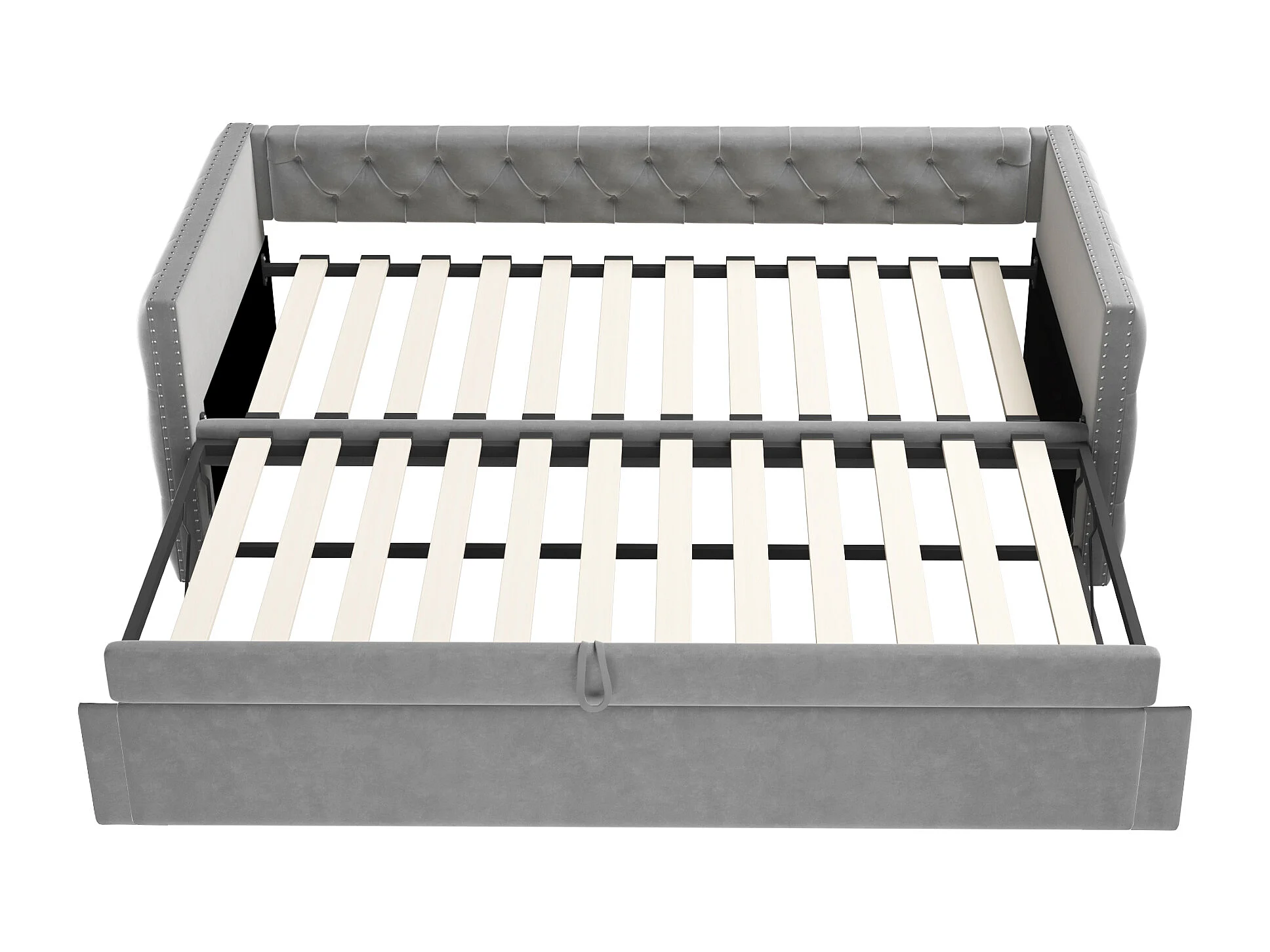 Kinderbed 90x200 cm - met lattenbodem - in fluweel - grijs - zonder matras