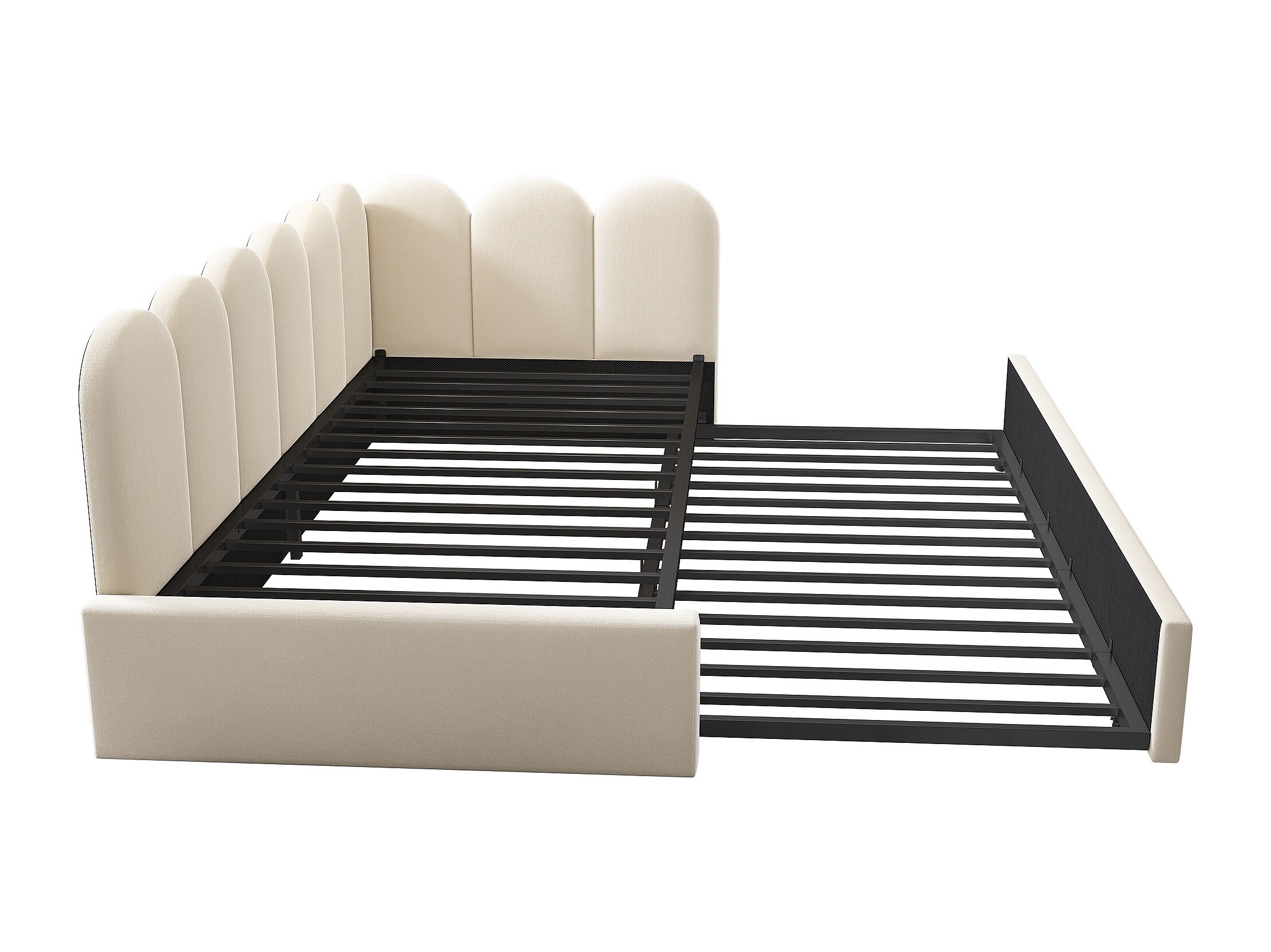 Kinderbed 90x200 cm met lattenbodem - uitschuifbed met metalen bedframe - beige fluweel (zonder matras)