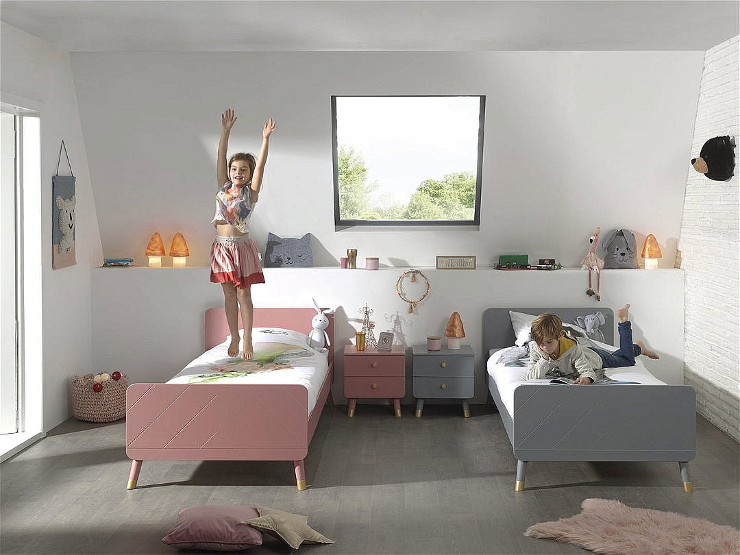 Kinderbed 90x200 cm met satijngrijs houten onderstel Funy