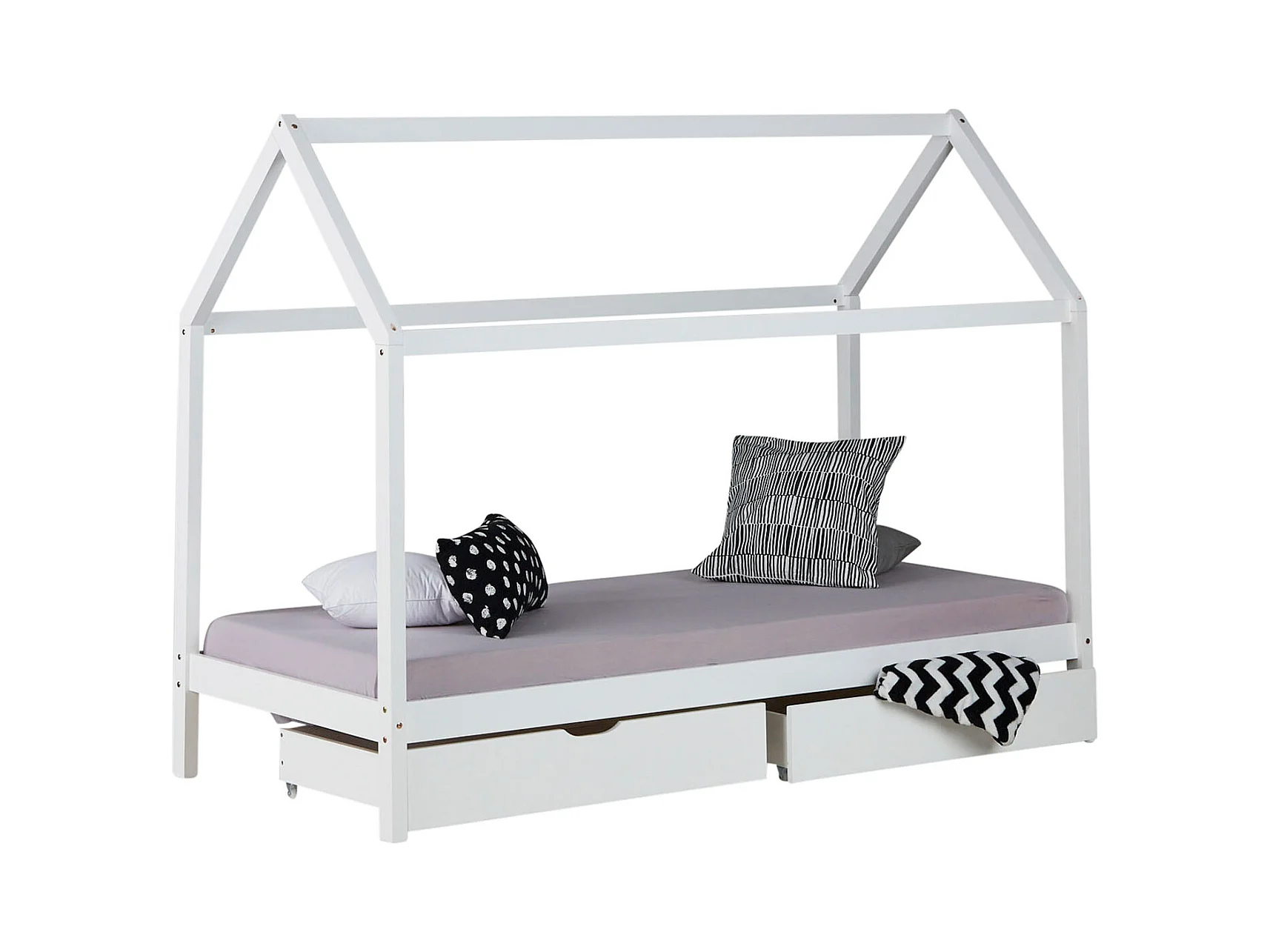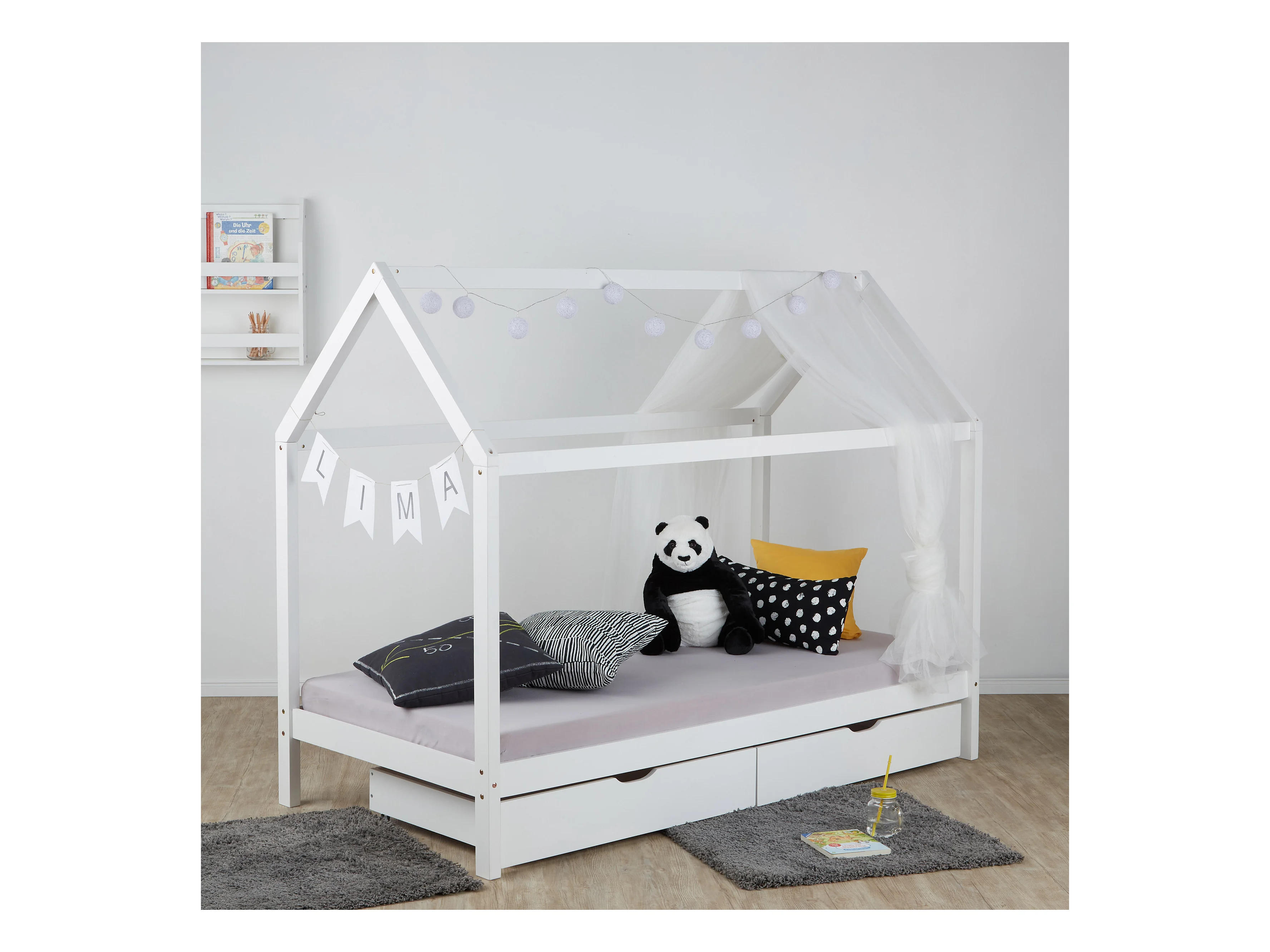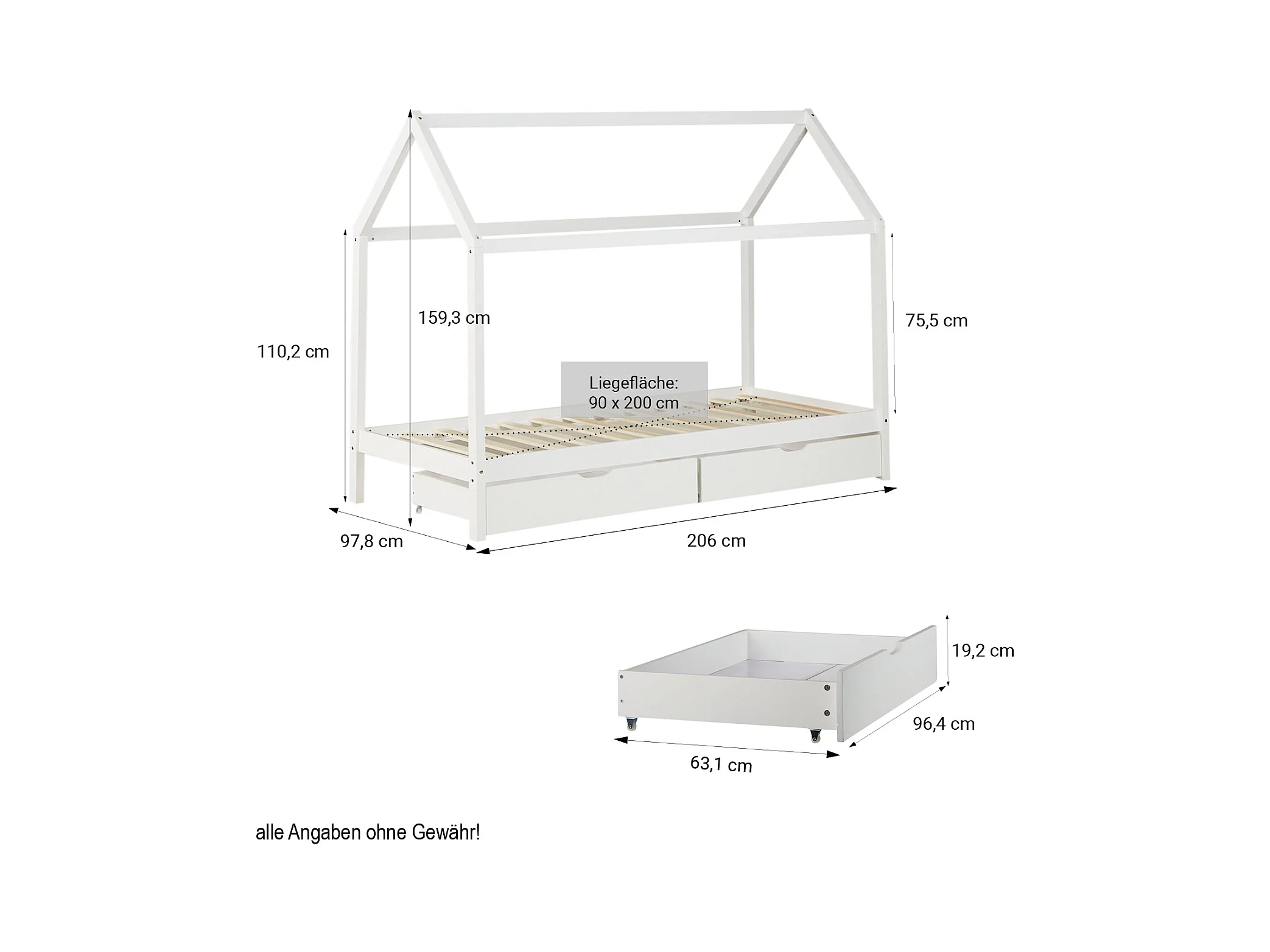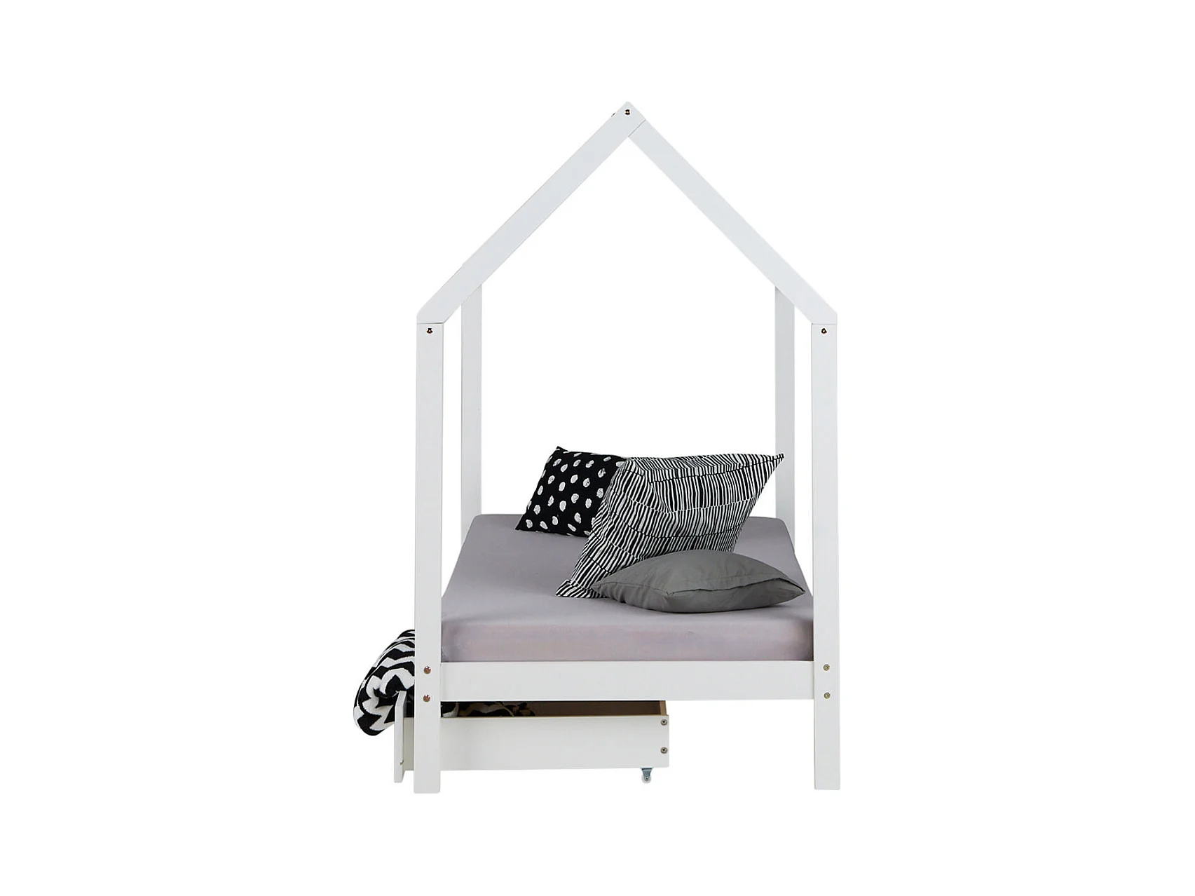 Kinderbed 90x200 cm wit Huis Bedframe voor kinderen met laden