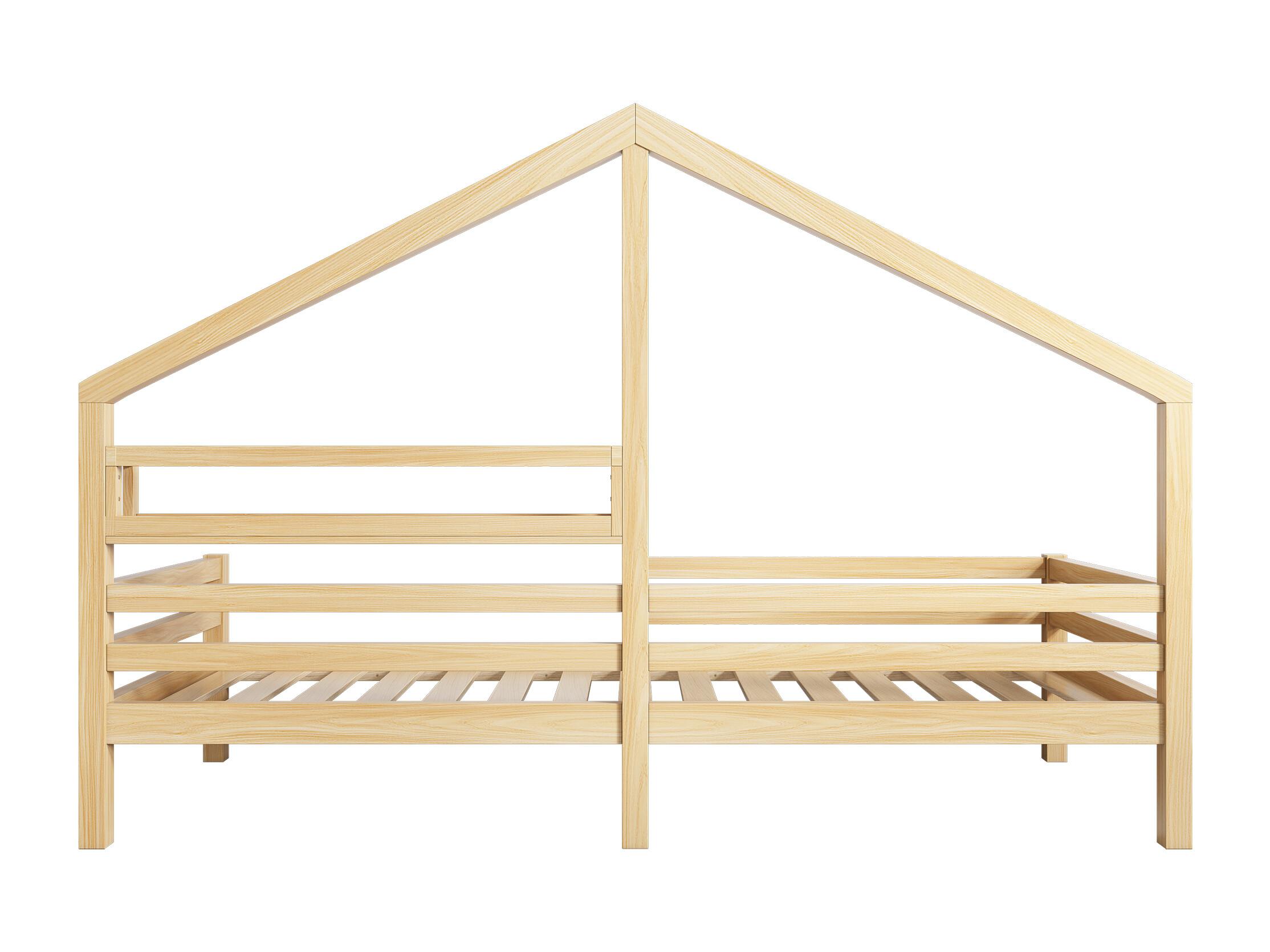 Kinderhuisbed 90x200 cm, met valbeveiliging, kinderbed, massief hout, naturel (90x200x181 cm)