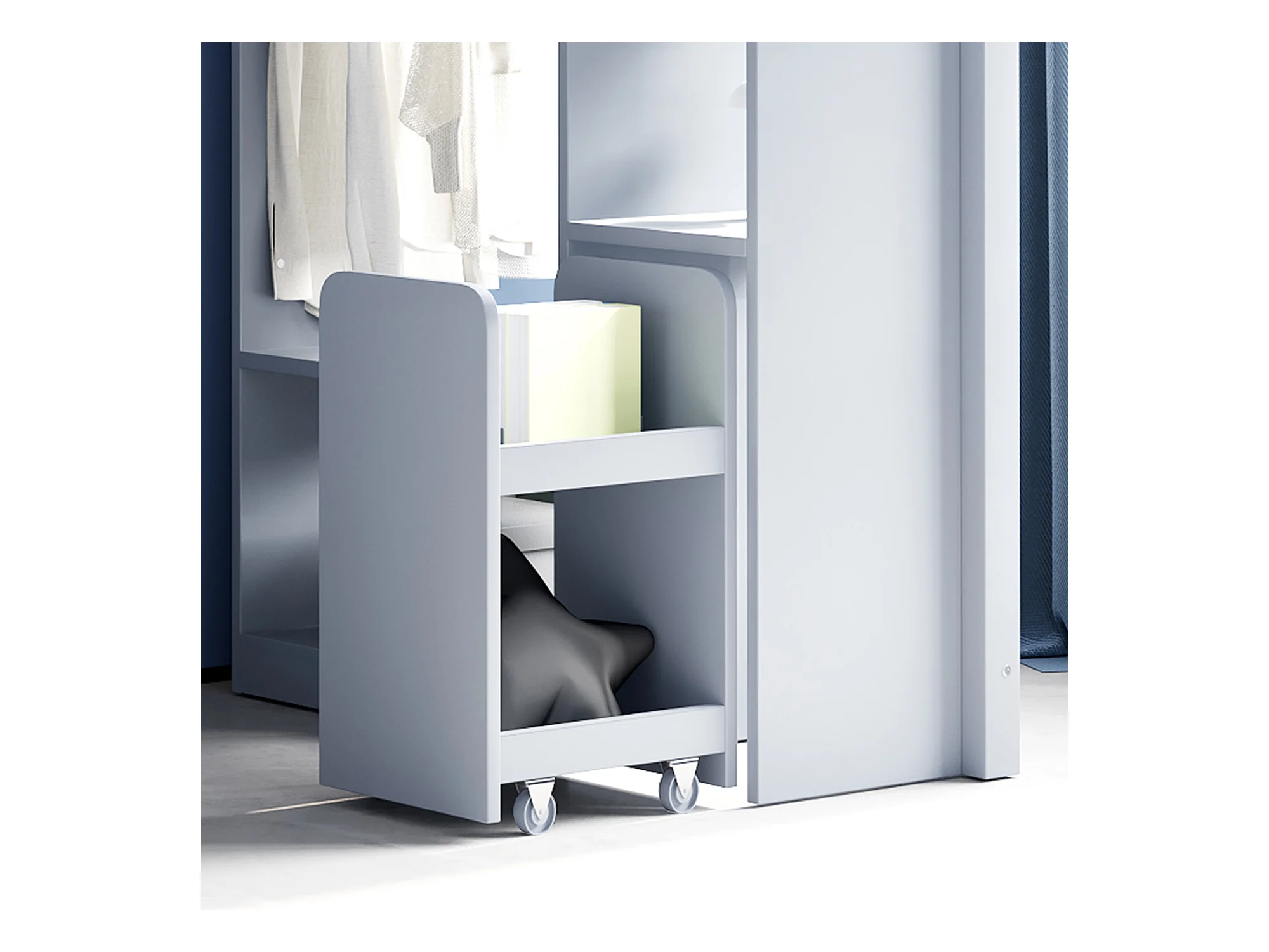 Kinderhoogbed 90×200 cm - met kleerhaak + opbergruimte - met 1 verplaatsbare opbergkar - grijs (matras niet inbegrepen)
