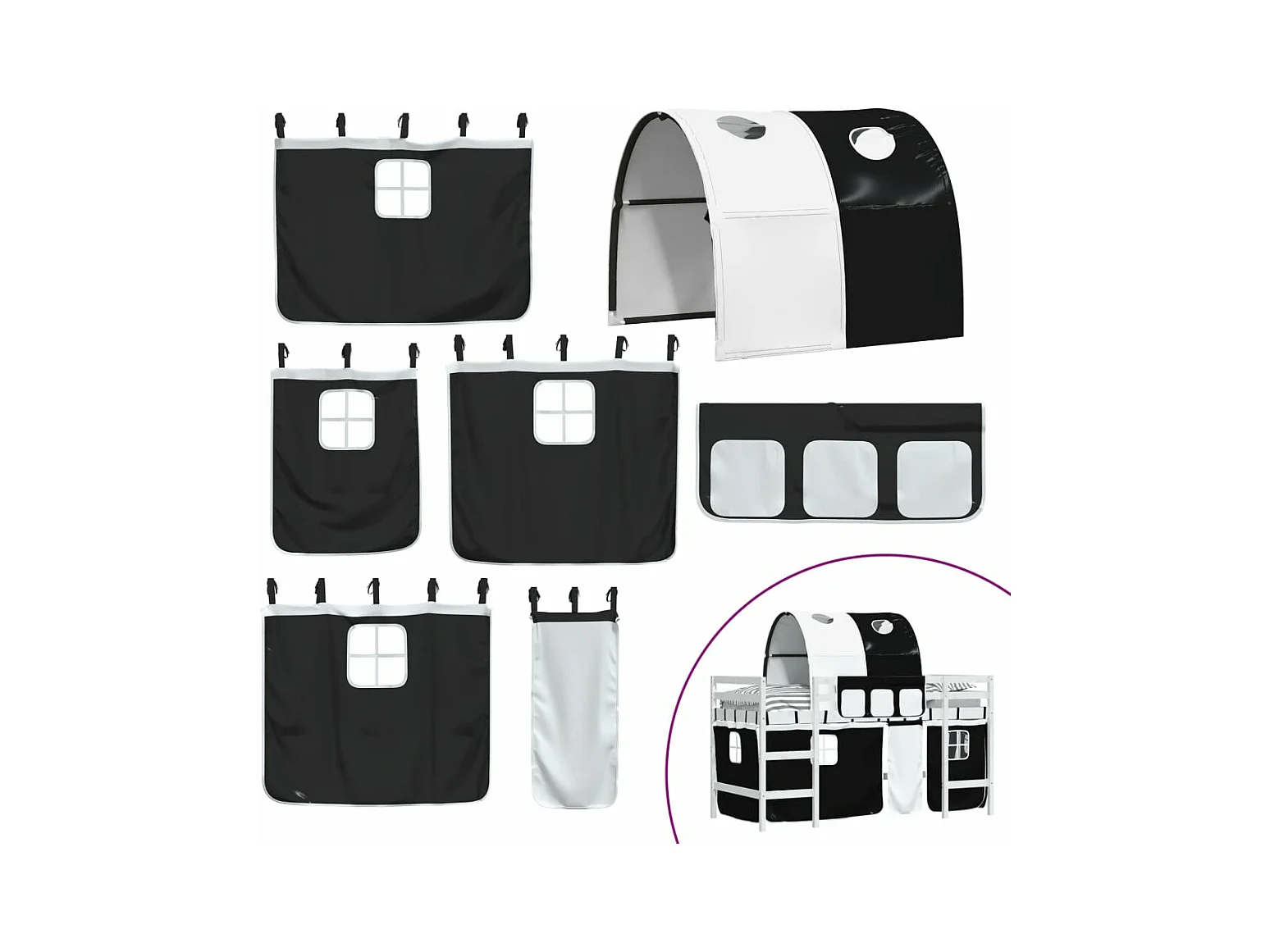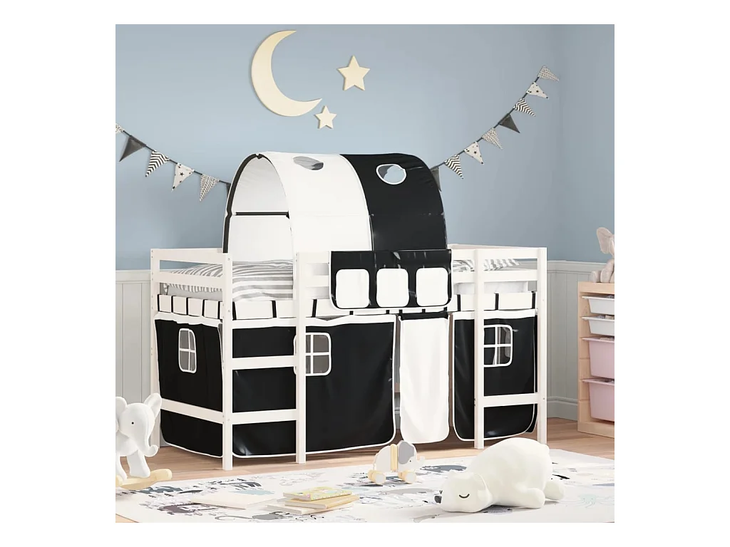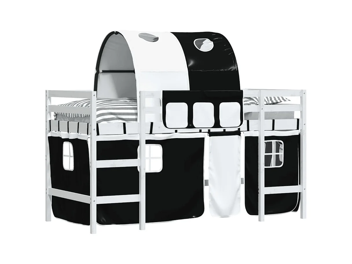 Kinderhoogslaper met tunnel 80x200 cm grenenhout wit en zwart