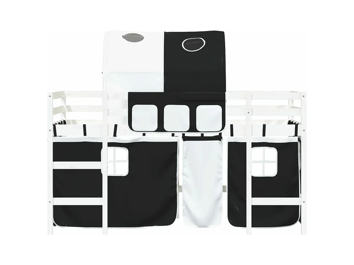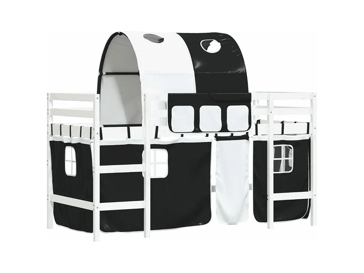 Kinderhoogslaper met toren 80x200 cm grenenhout wit en zwart