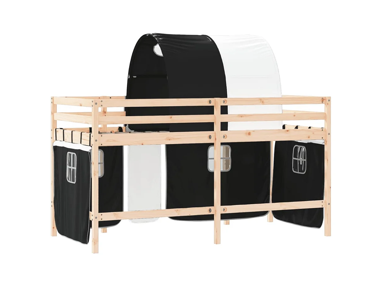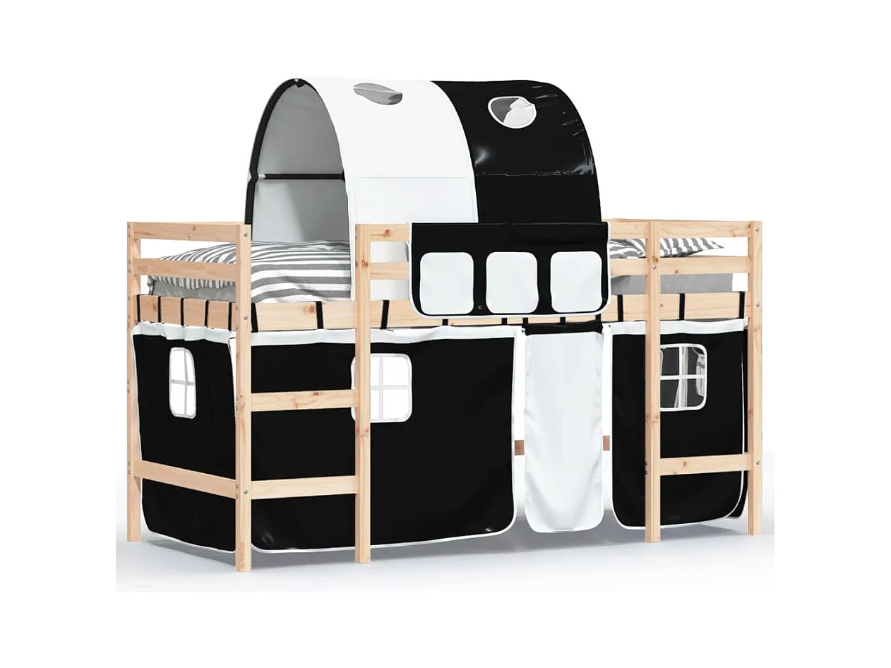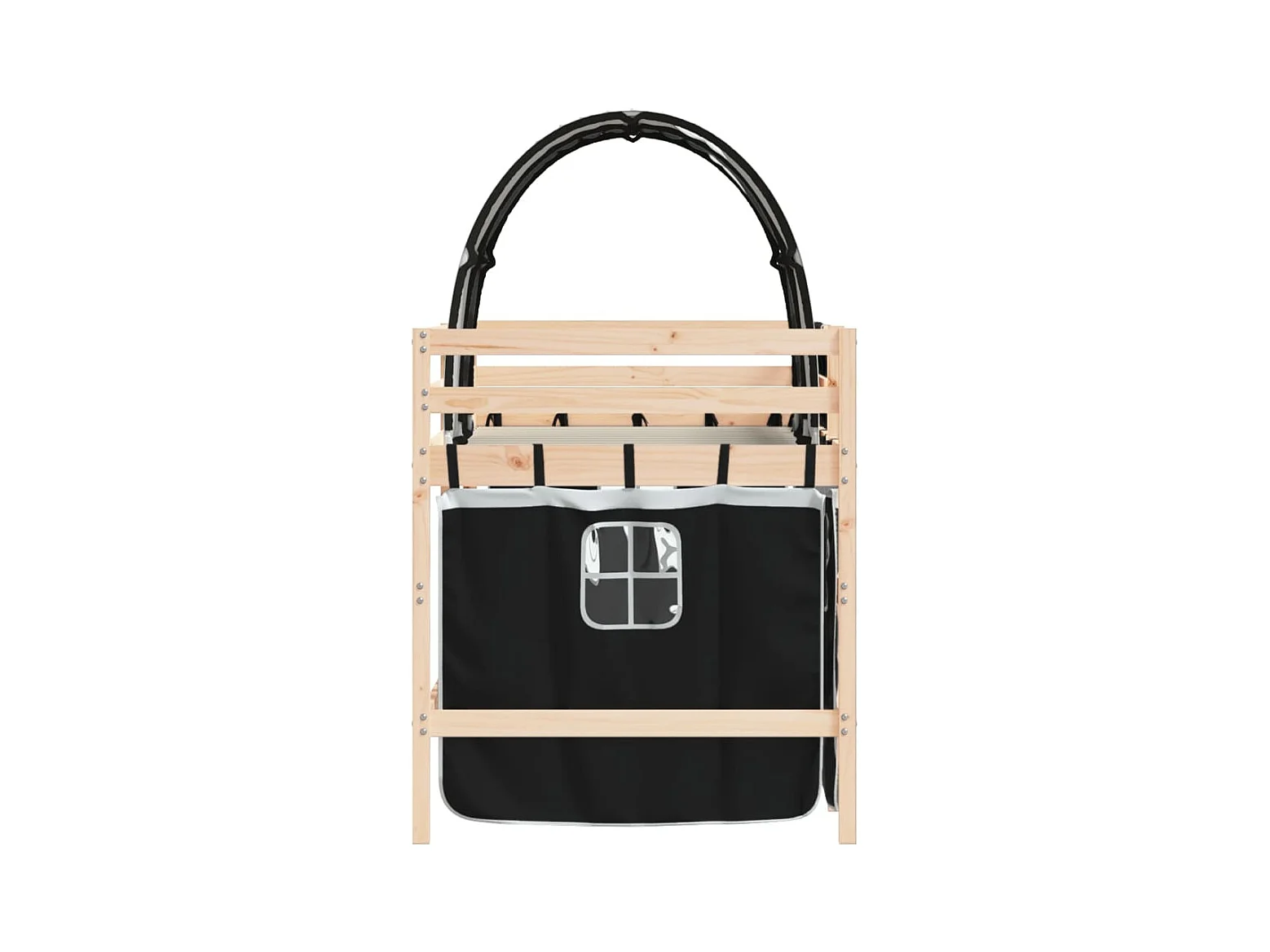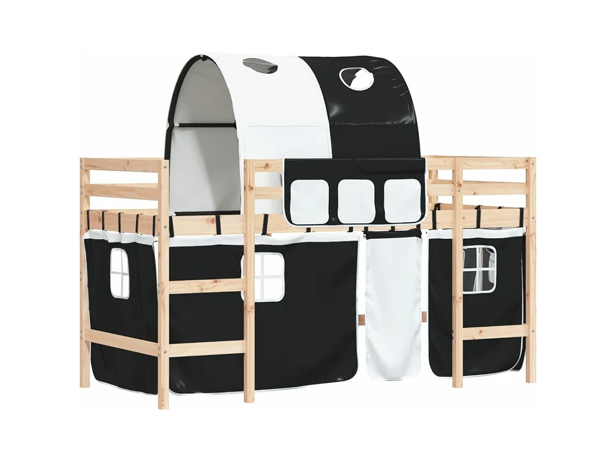 Kinderhoogslaper met tunnel 80x200 cm grenenhout wit en zwart