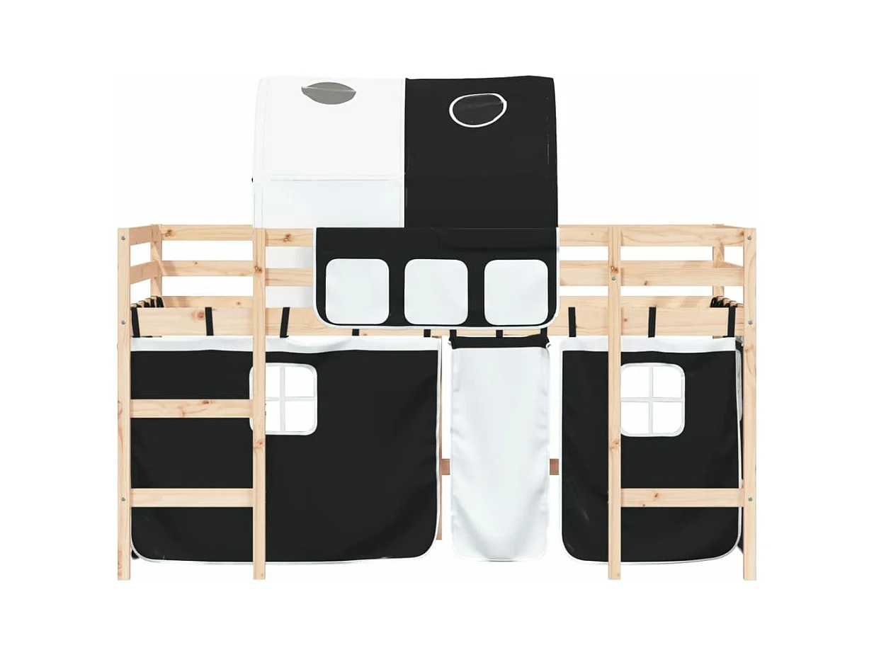 Kinderhoogslaper met toren 80x200 cm grenenhout wit en zwart