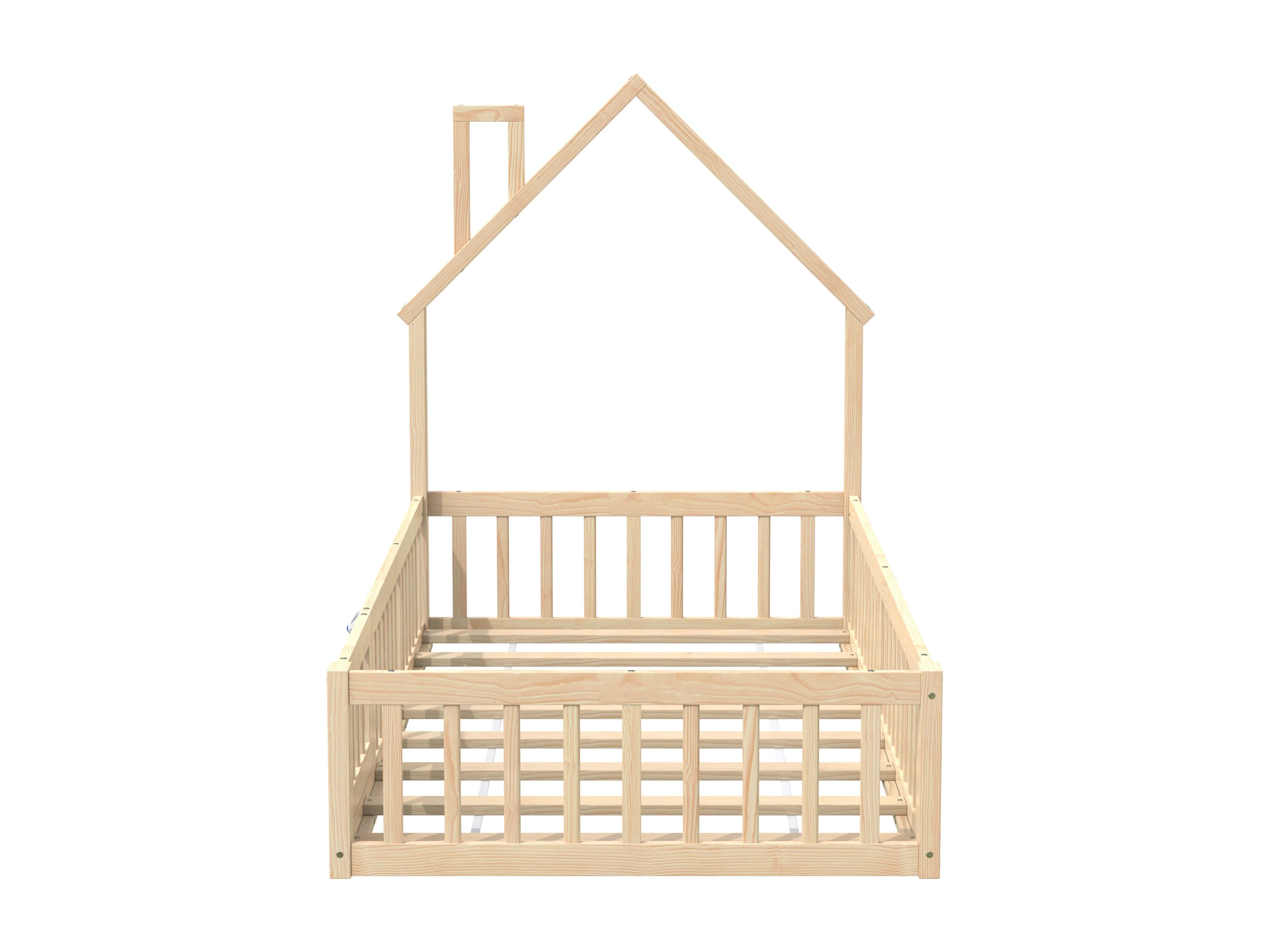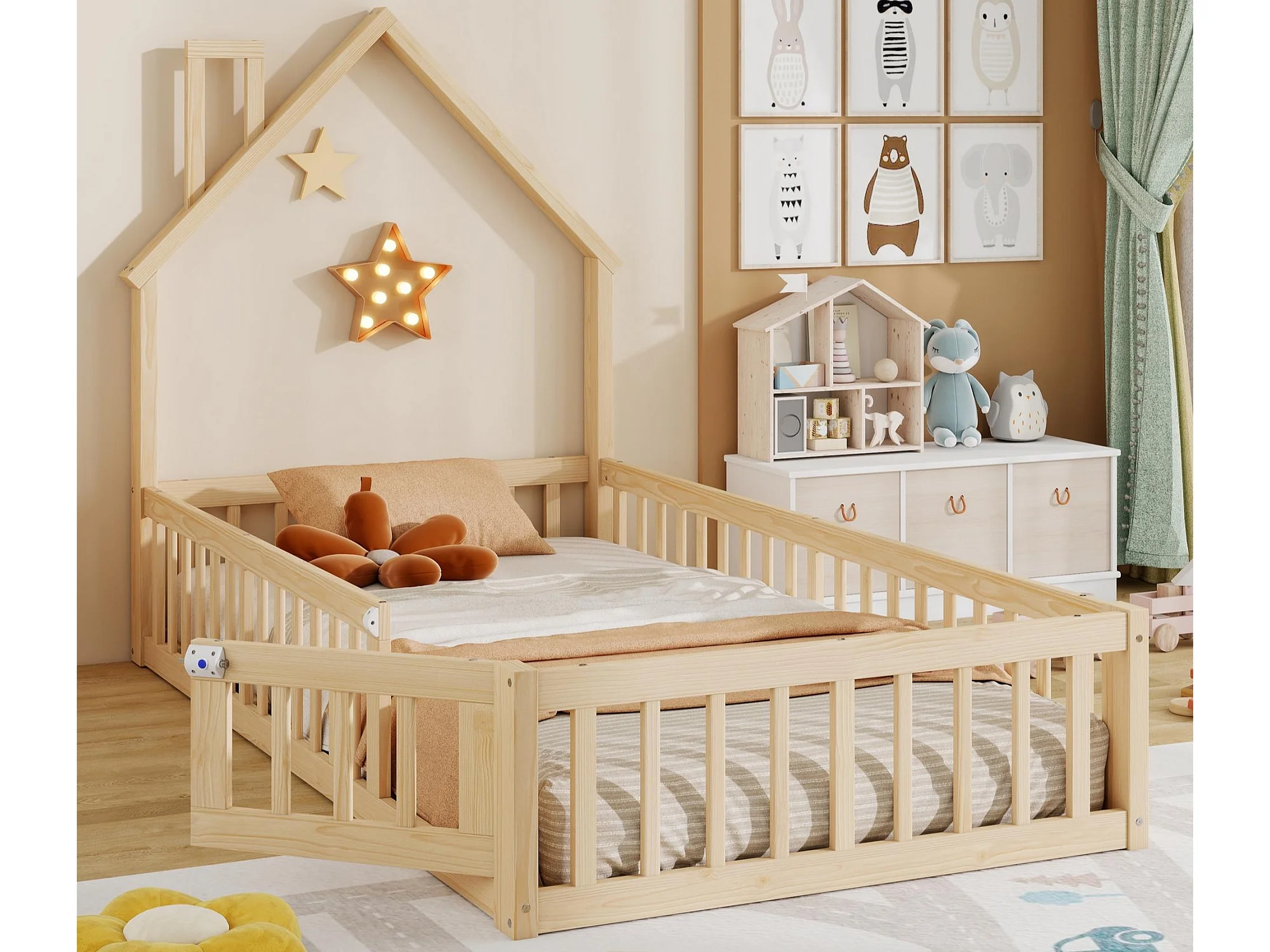 Kinderhuisbed 90 x 200 cm - met lattenbodem - met 1 deur - natuur (matras niet inbegrepen)
