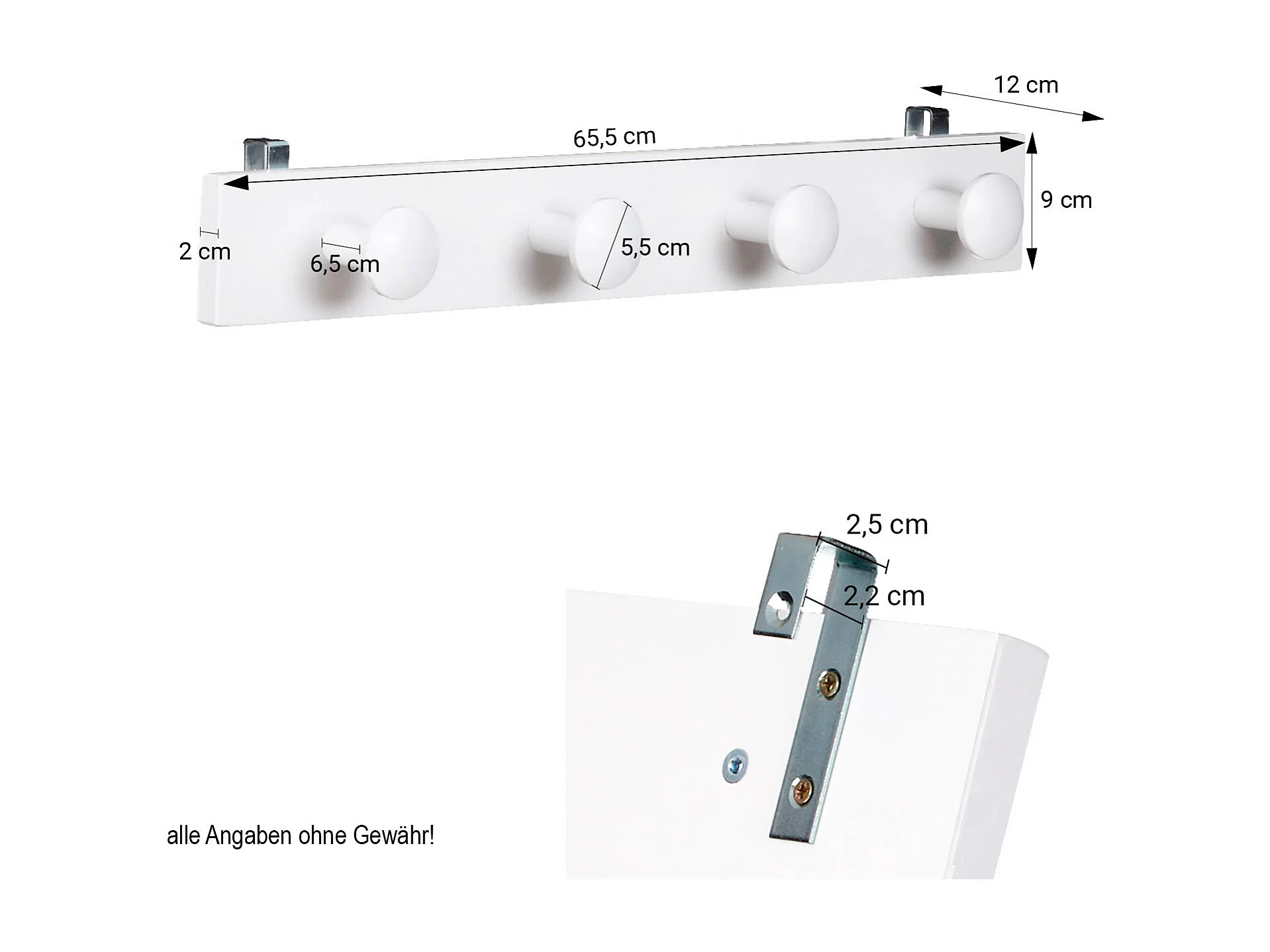 Kinderjassenrek 65,5x12x9 cm wit