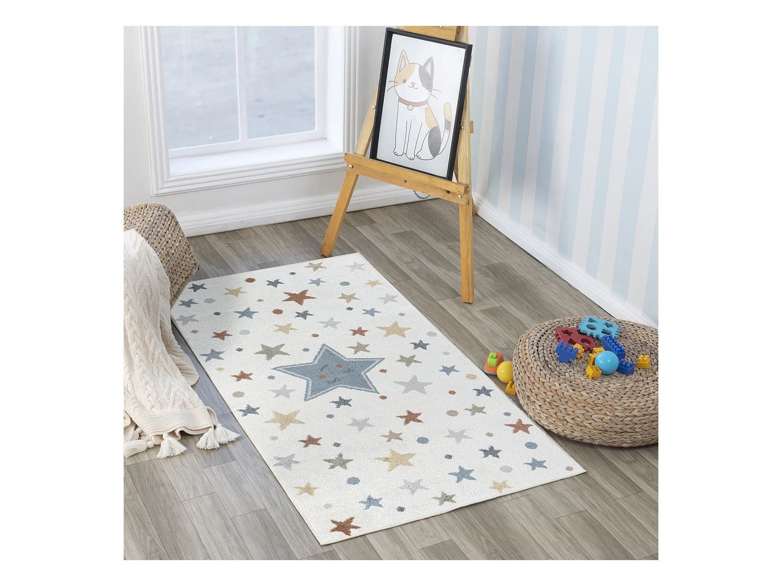 Machinewasbaar Kinderkamer Vloerkleed Sterren - Meerkleurig/Blauw - 80x150cm - SUPERMAMA