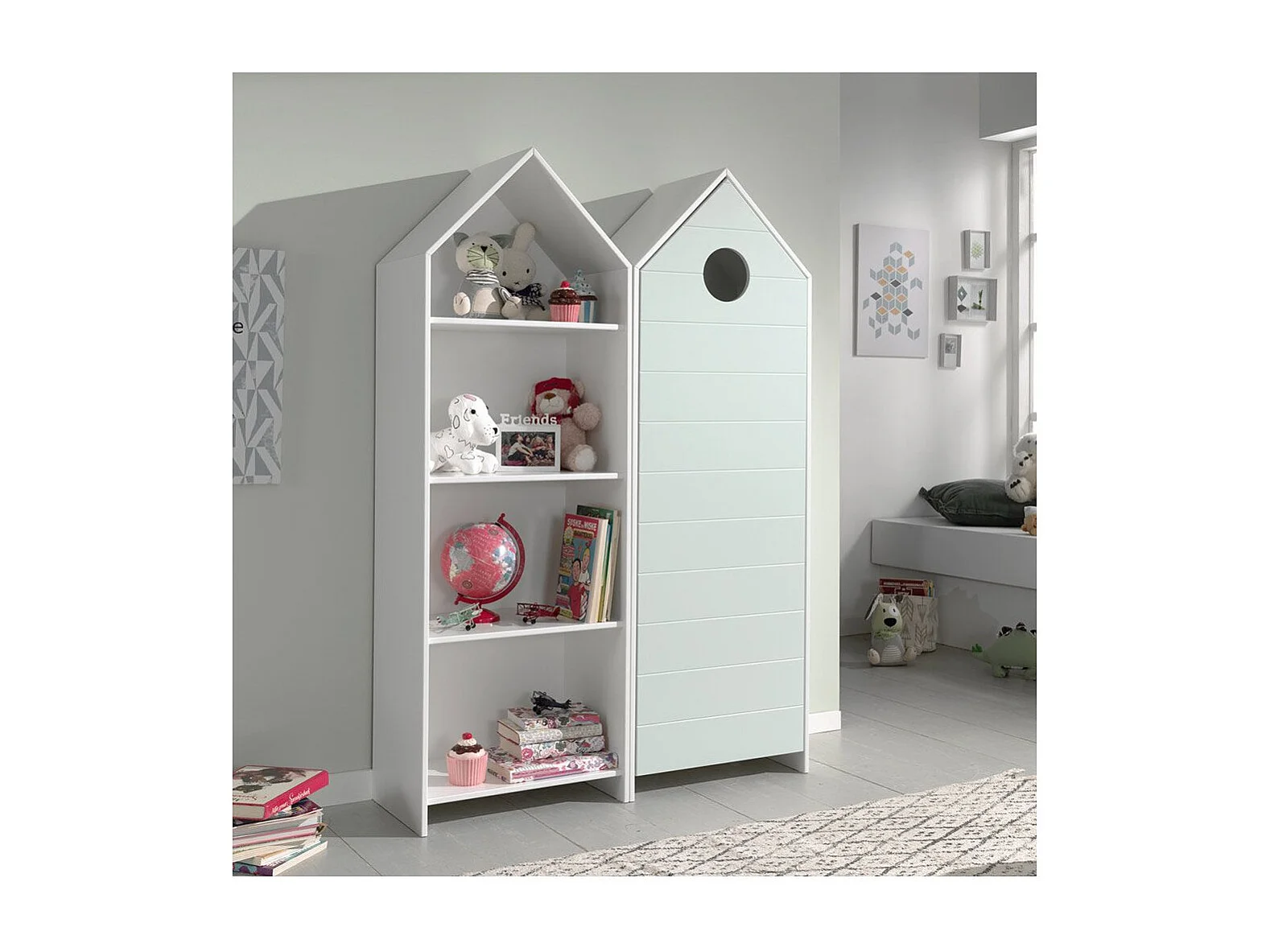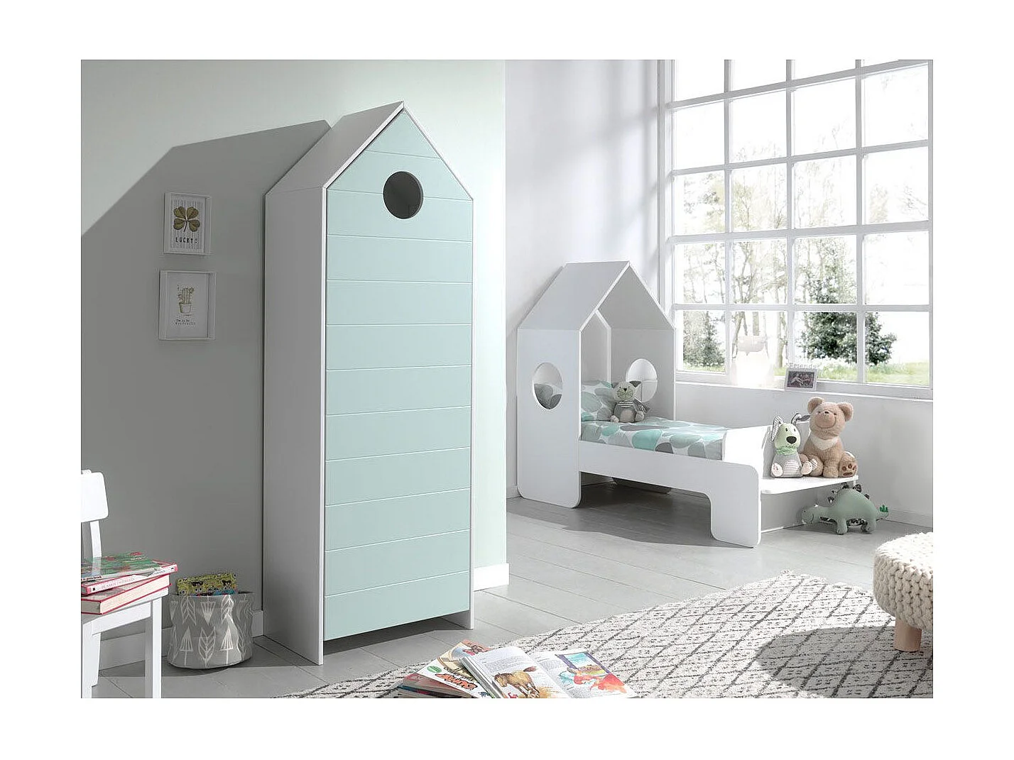 Kinderkledingkast 1 deur strandhuisje gelakt hout mintgroen Camila