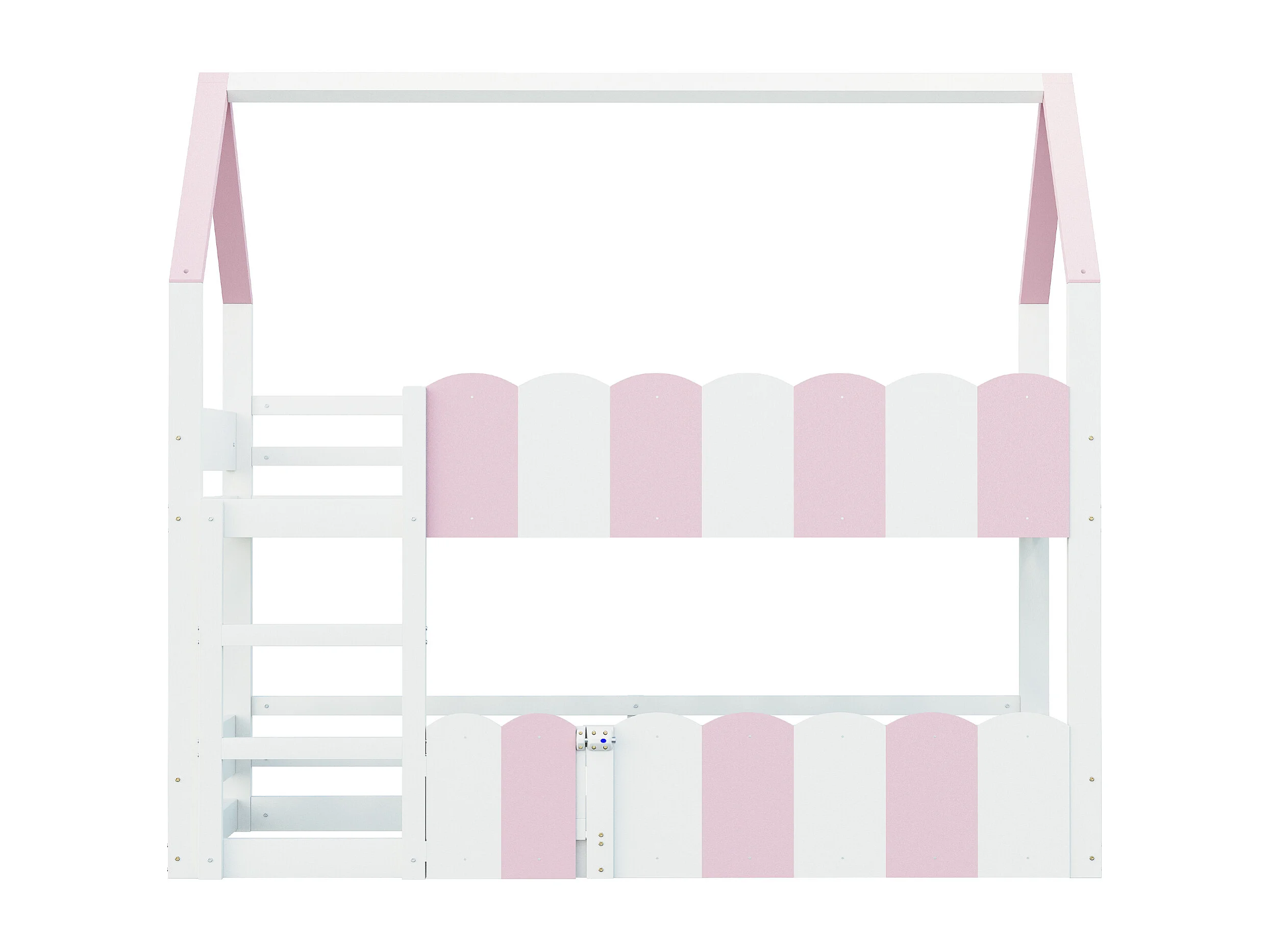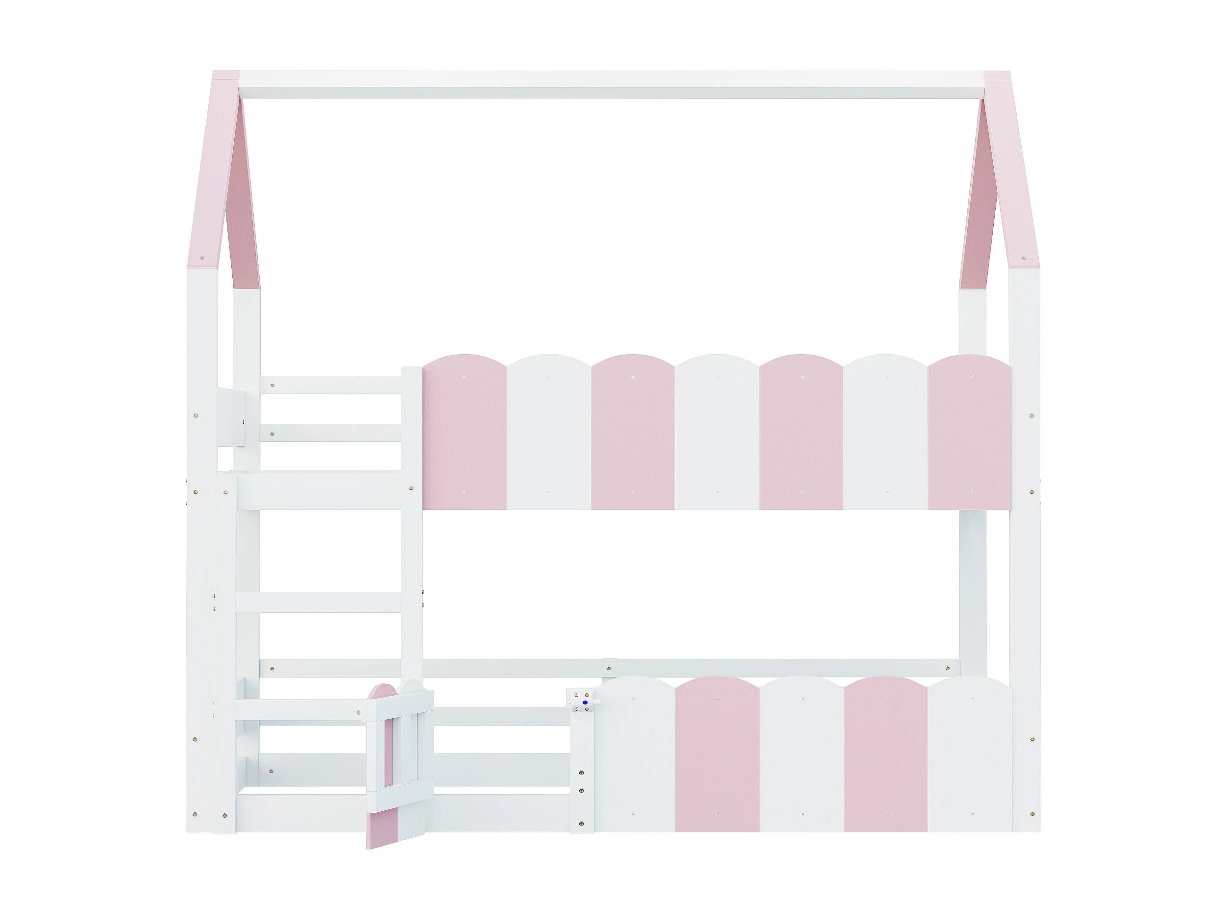 Kinderstapelbed cabinestijl 90x200cm met hoge uitvalbeveiliging, zonder matras, roze en wit