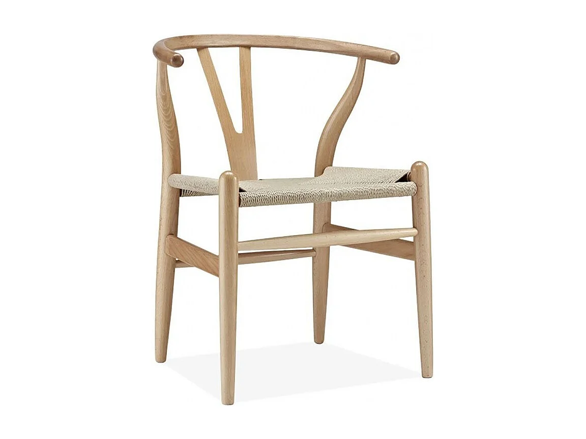 Kinki stoel, handgesneden natuurlijk beukenhout en touw van natuurlijke vezels