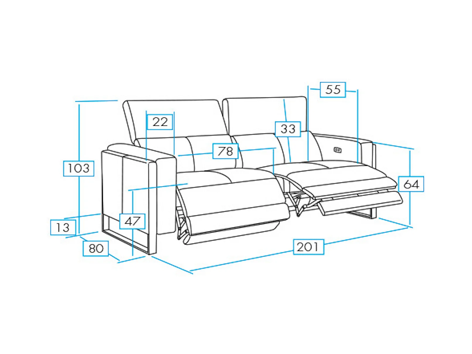 Kinston elektrische lederen ontspanningsbank-Kleur Hazelnoot bruin-Aantal plaatsen) 2 vaste plaatsen