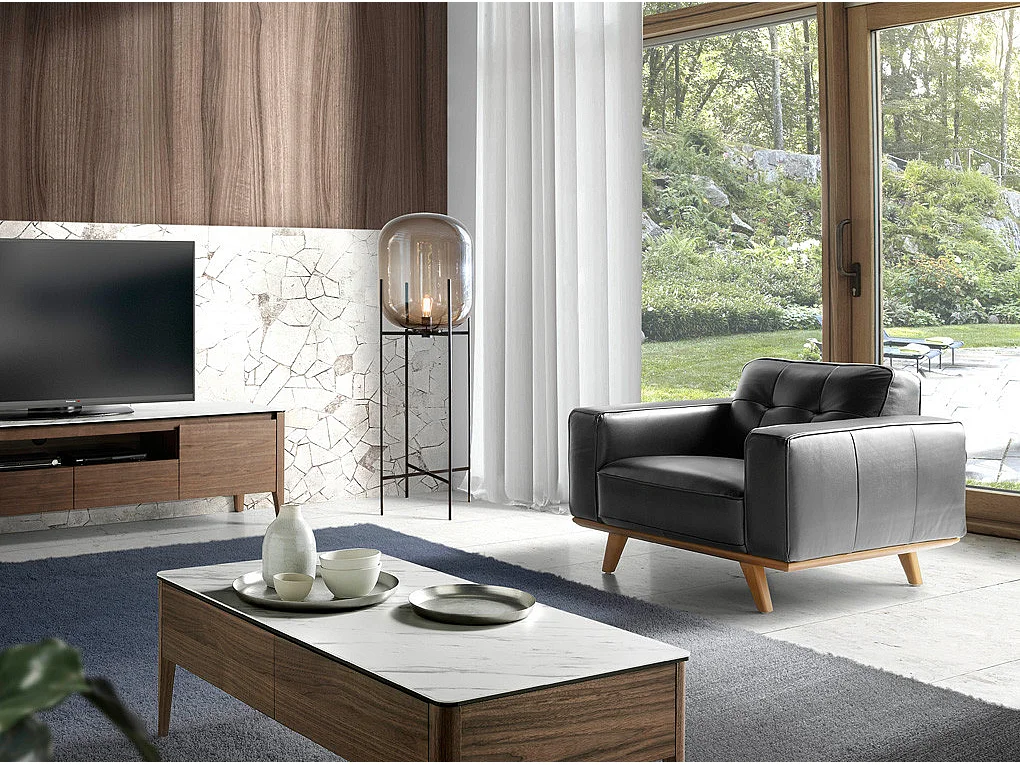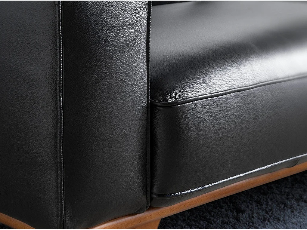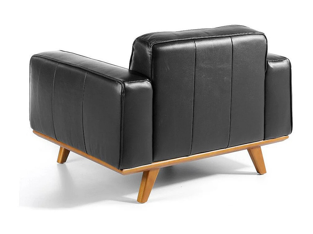 Kiro gewatteerde zwart lederen fauteuil en massief houten poten