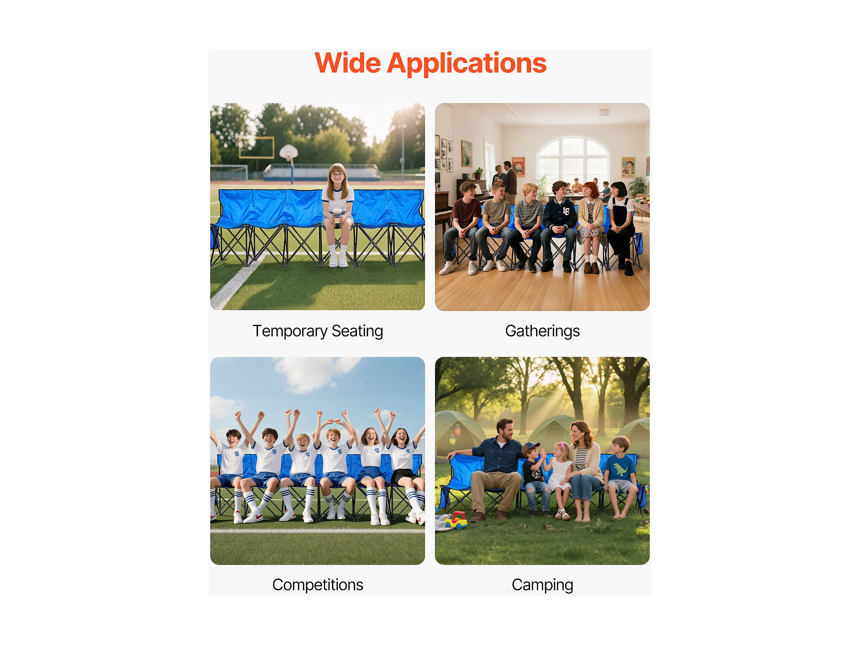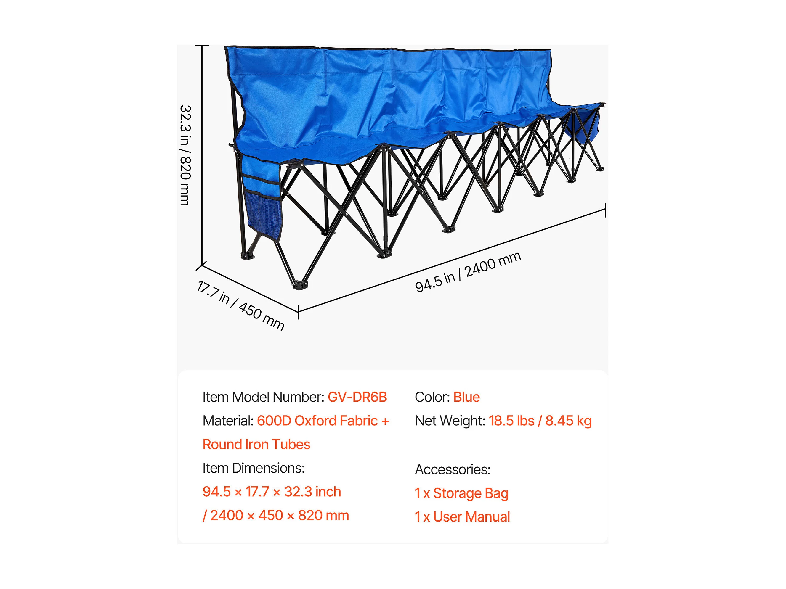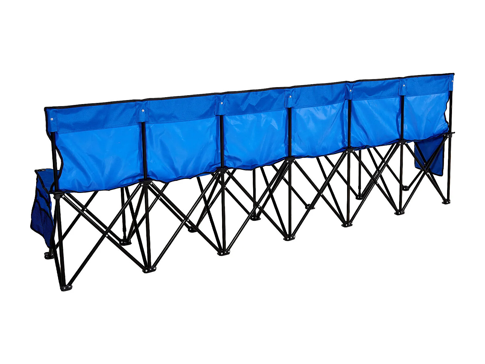 Klapbank SucceBuy, Draagbaar, 6 Zitplaatsen, Opvouwbare Campingbank met Opbergvakken en Draagtas, voor Buitenevenementen, Blauw