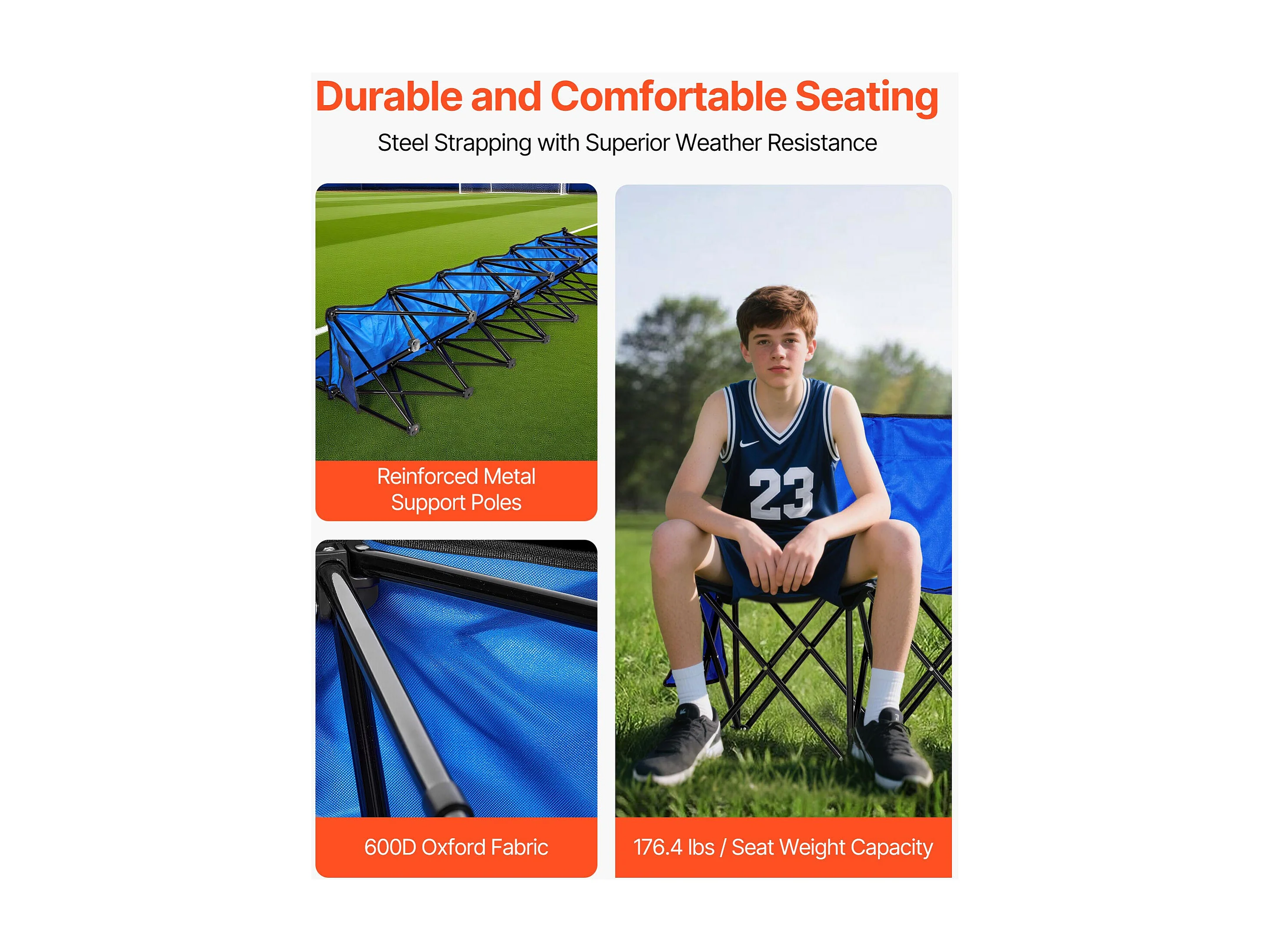Klapbank SucceBuy, Draagbaar, 8 Zitplaatsen, Opvouwbare Campingbank met Opbergvakken en Draagtas, voor Buitenevenementen, Blauw