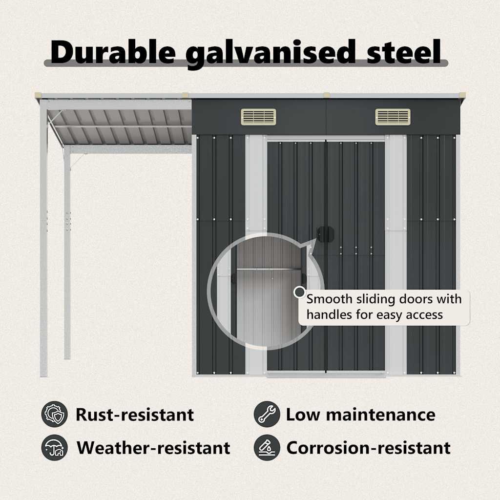 Klavs Tuinschuur met verlengd dak 277x107x181 cm staal antraciet
