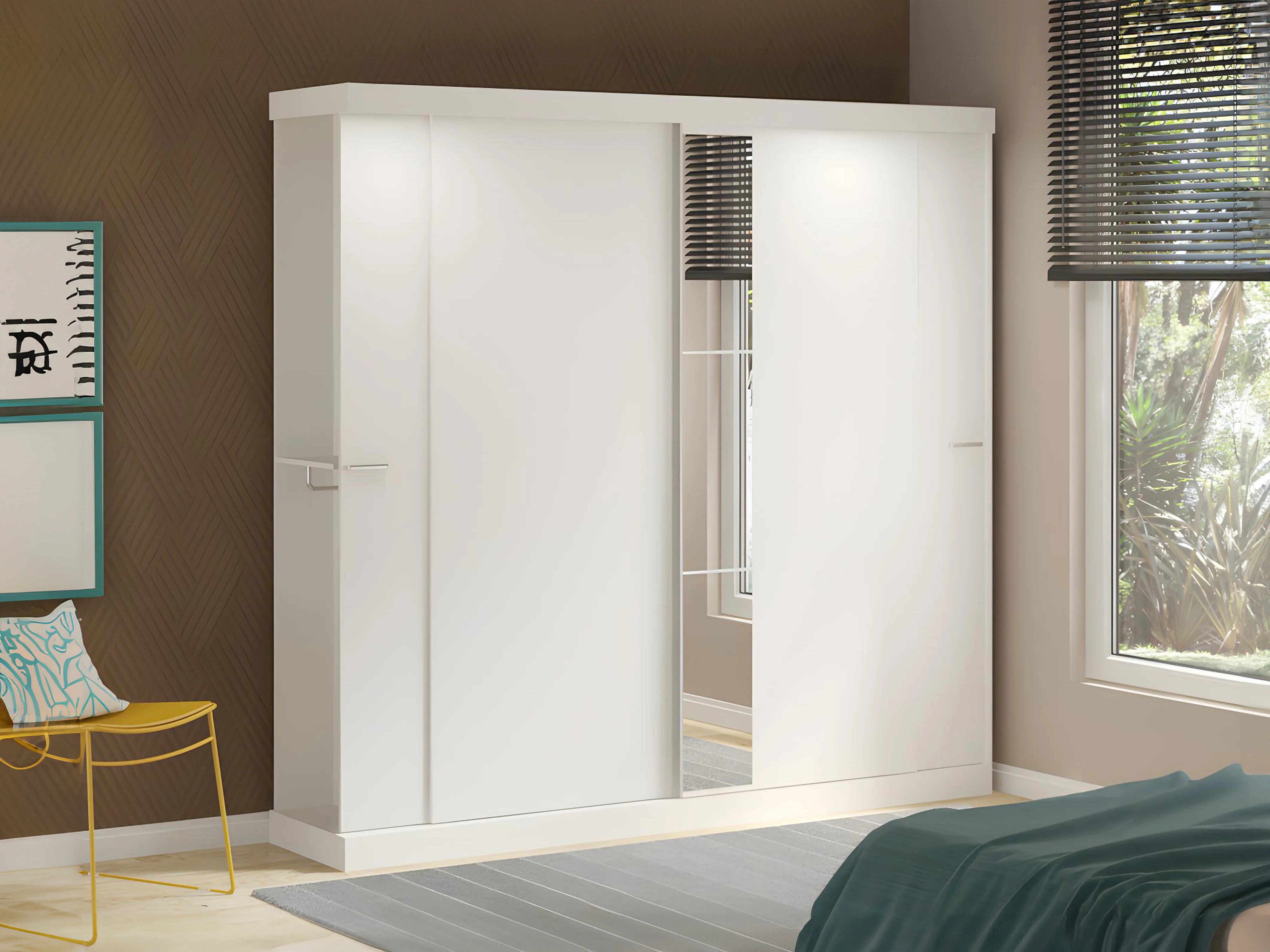 Kledingkast - 2 schuifdeuren - Met spiegel - L 231 cm - Wit - ADALRIK