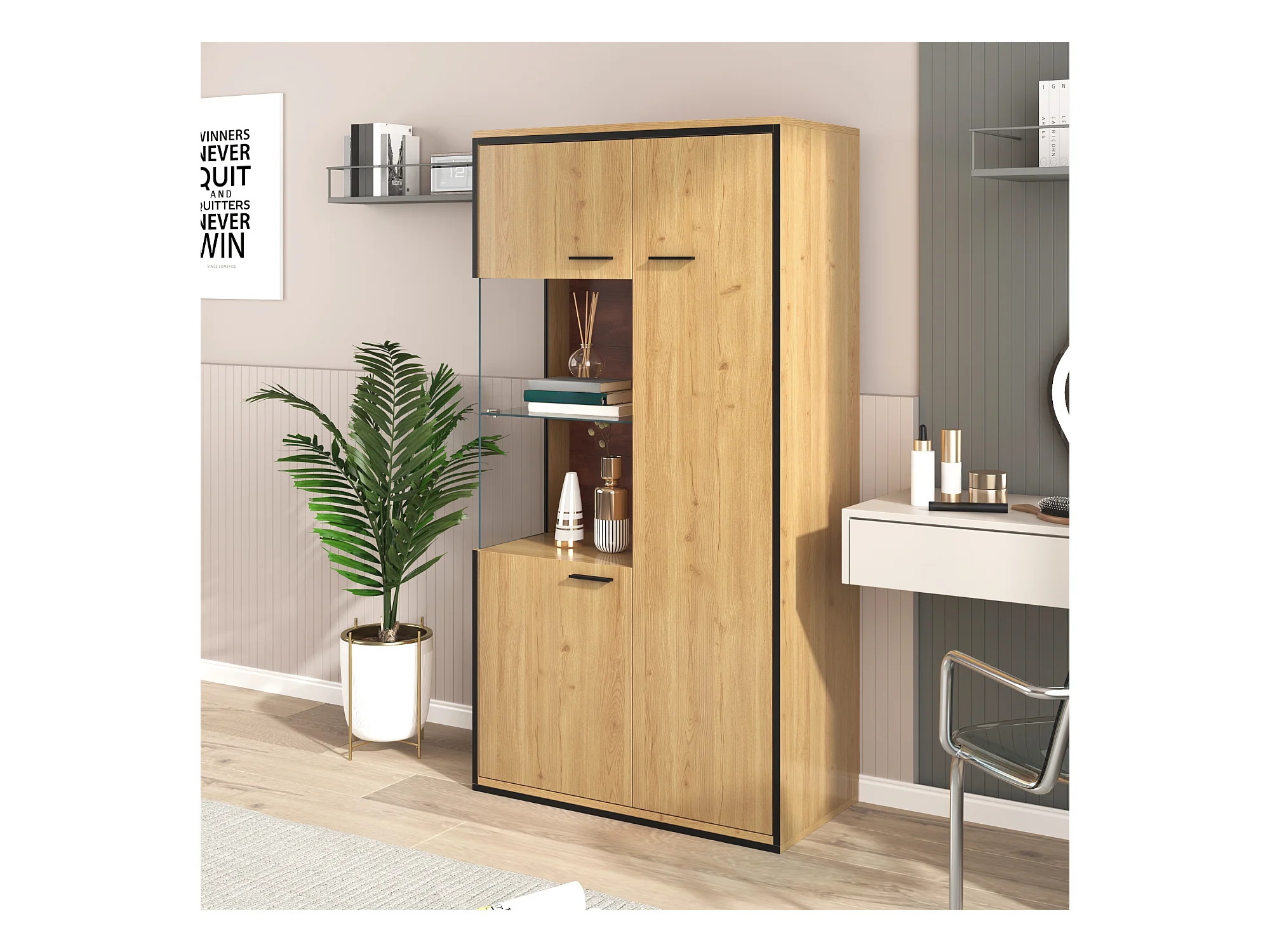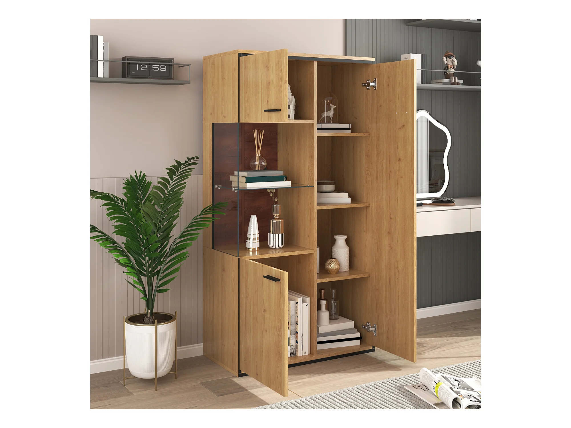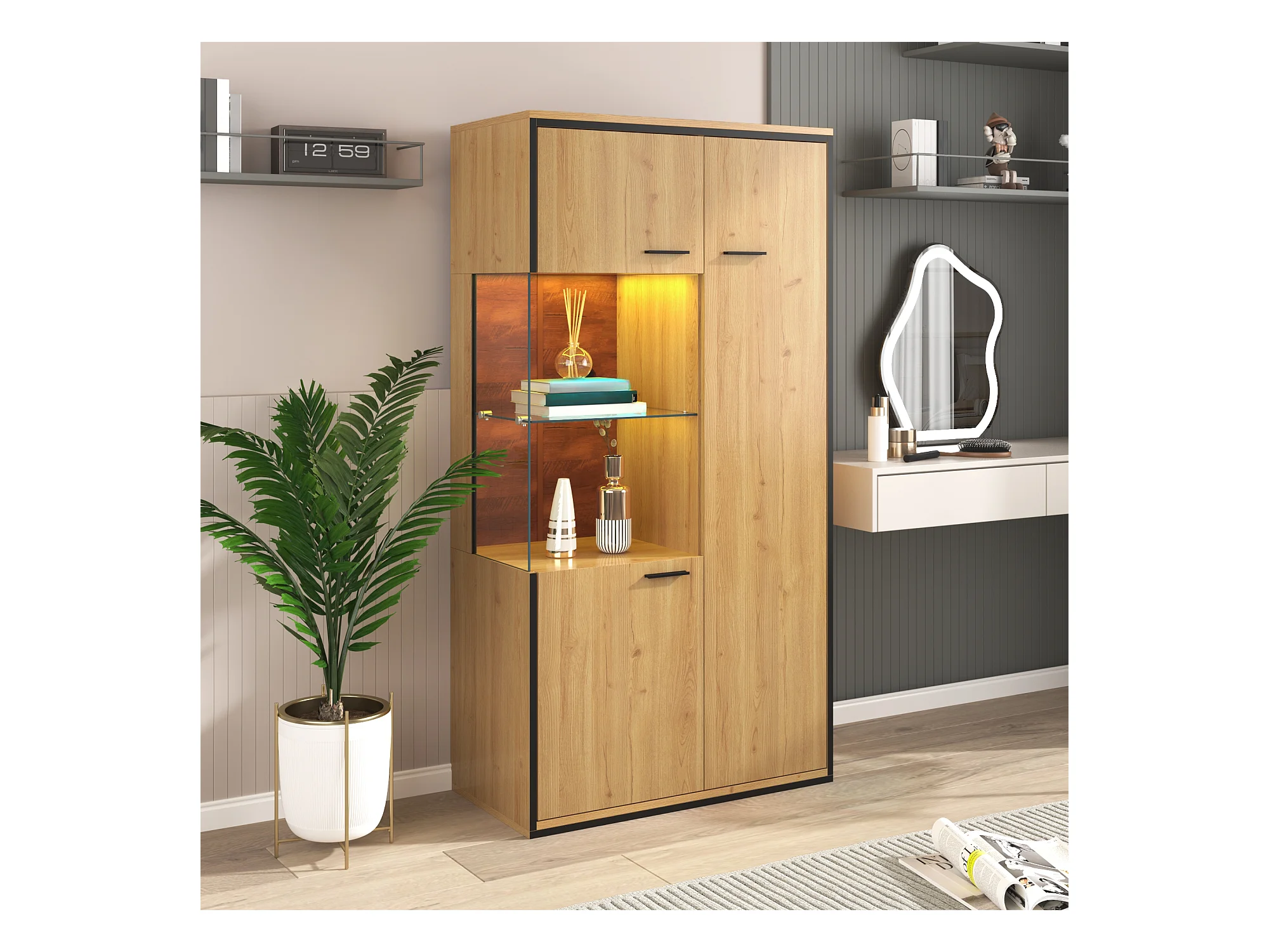 Kledingkast 77.5x40x150cm met 15 kleuren LED verlichting deuren en 3 verstelbare plankken brengen Materiaal MDF en Natuurlijke kleur