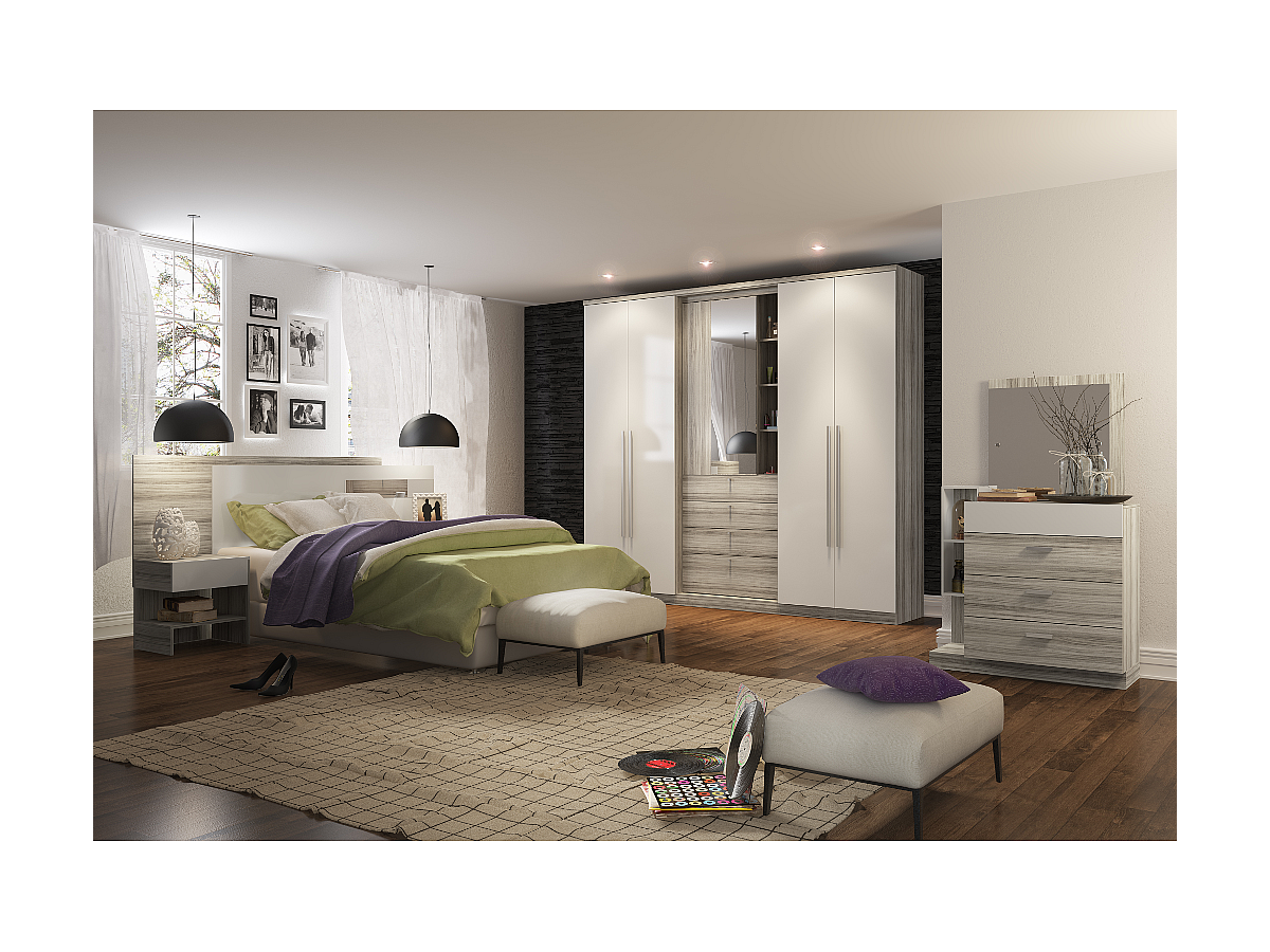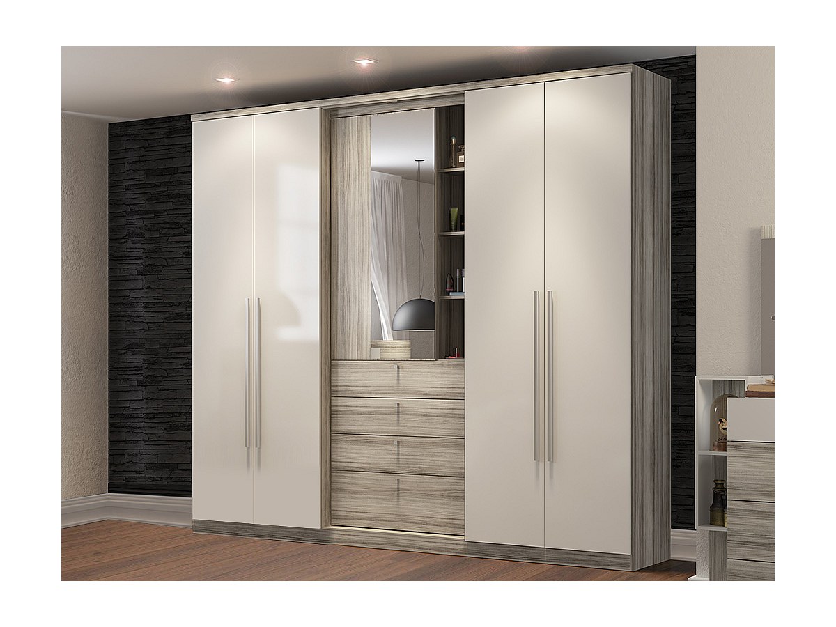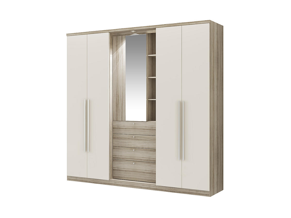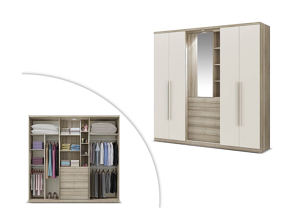 Kledingkast ISAK - 4 deuren - Spiegel en laden - L240 cm - Eik en ivoor