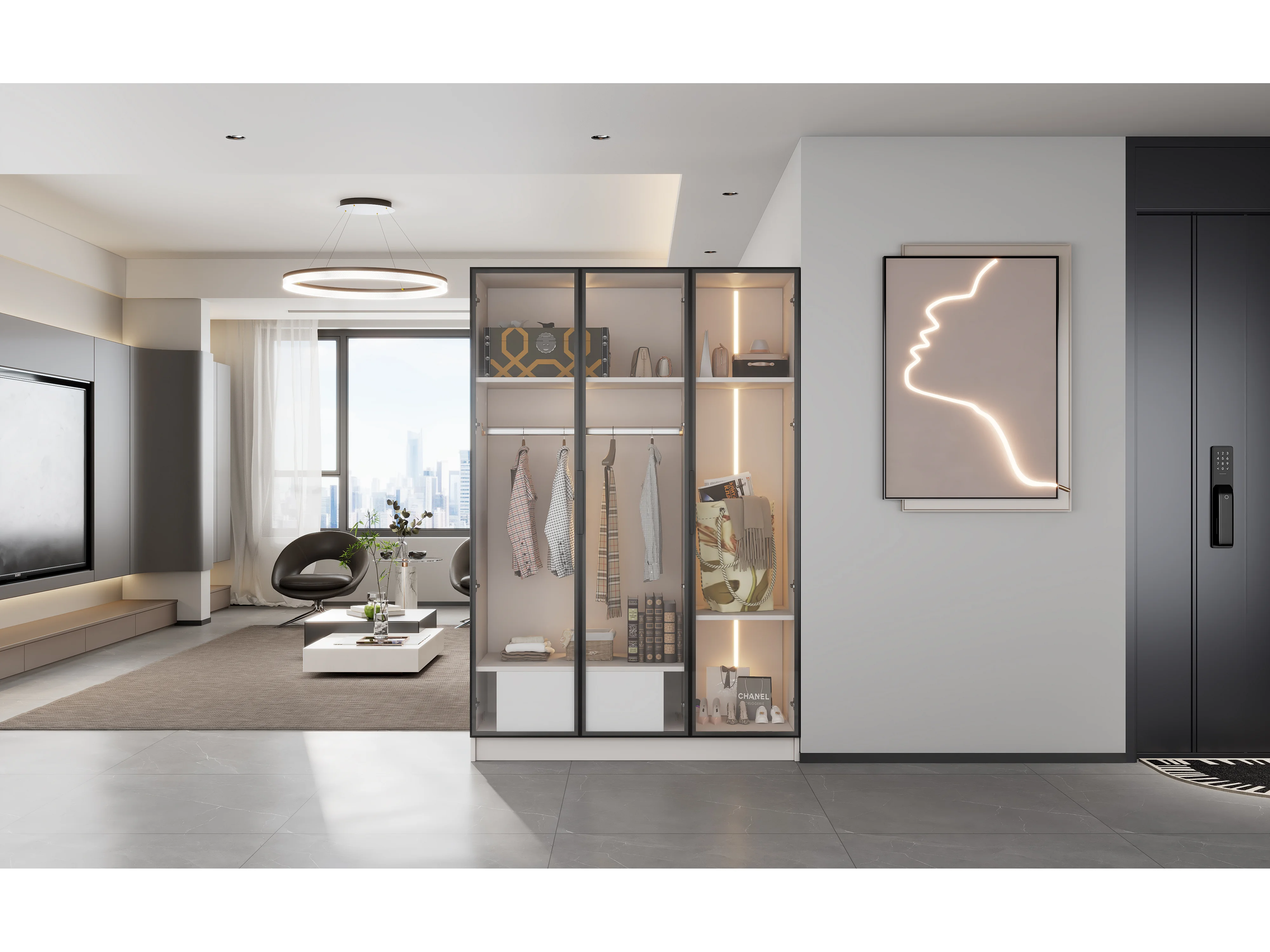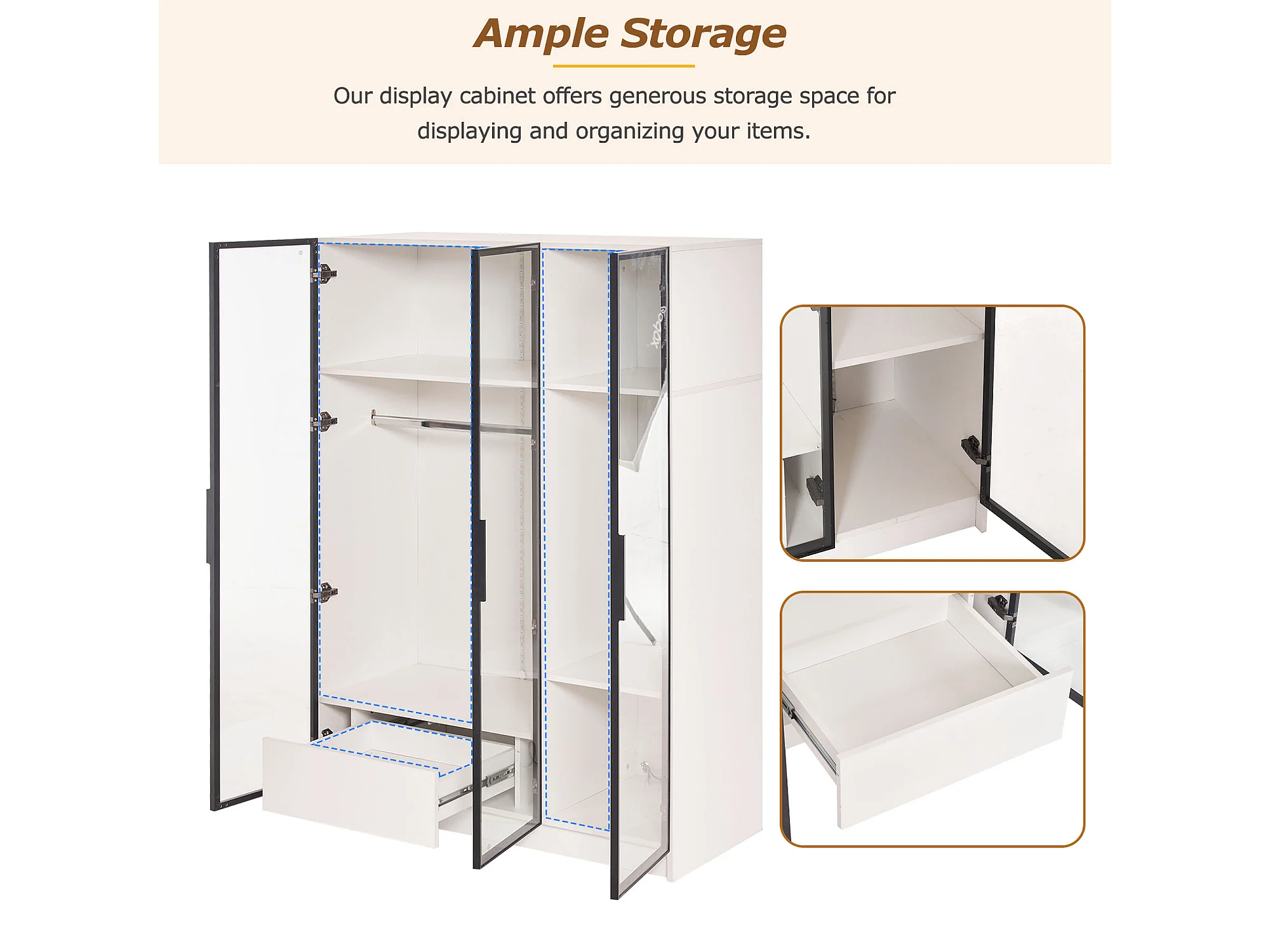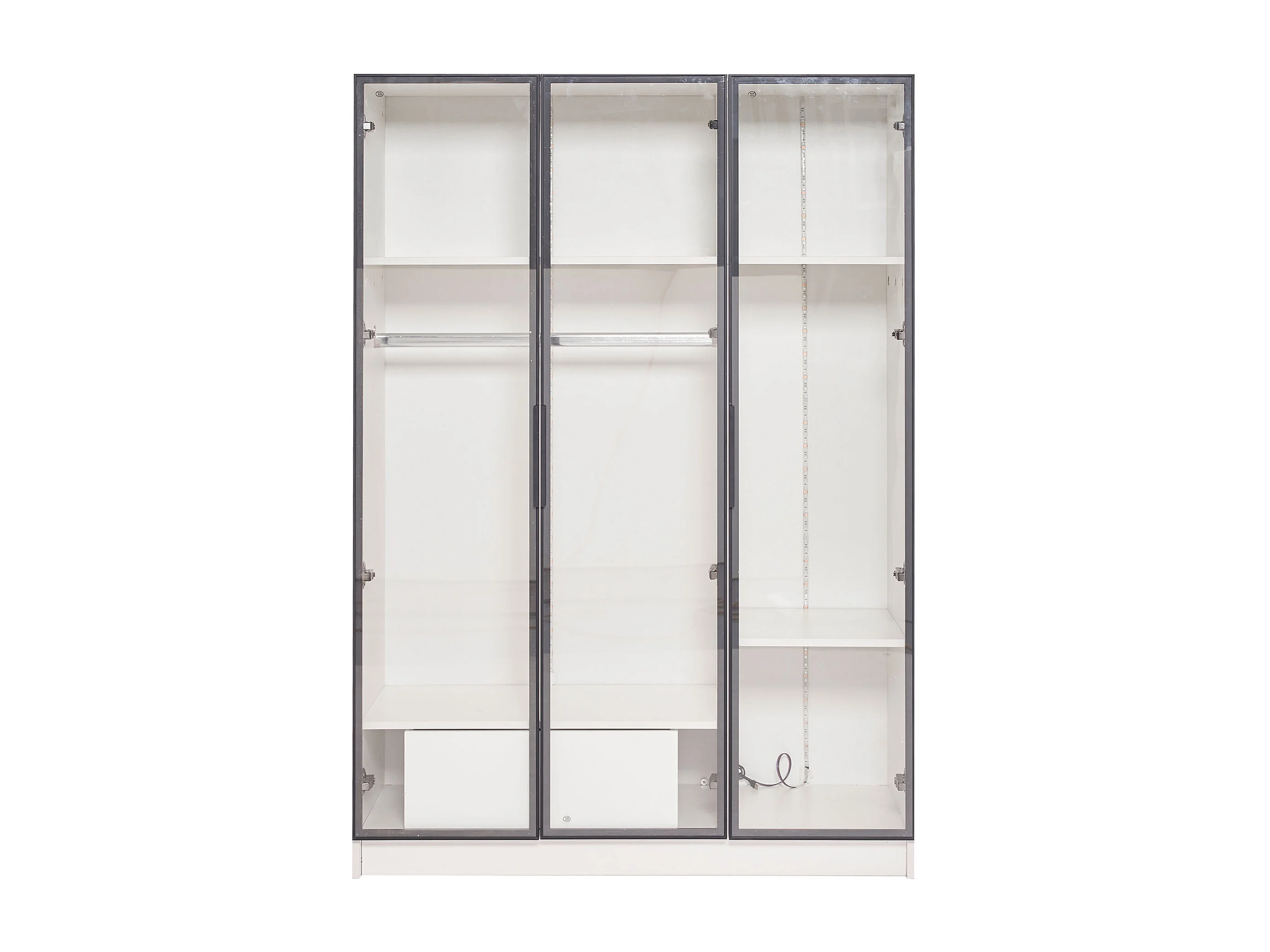 Kledingkast met LED-verlichting, 3 glazen deuren en 1 lade - Witte kledingkast