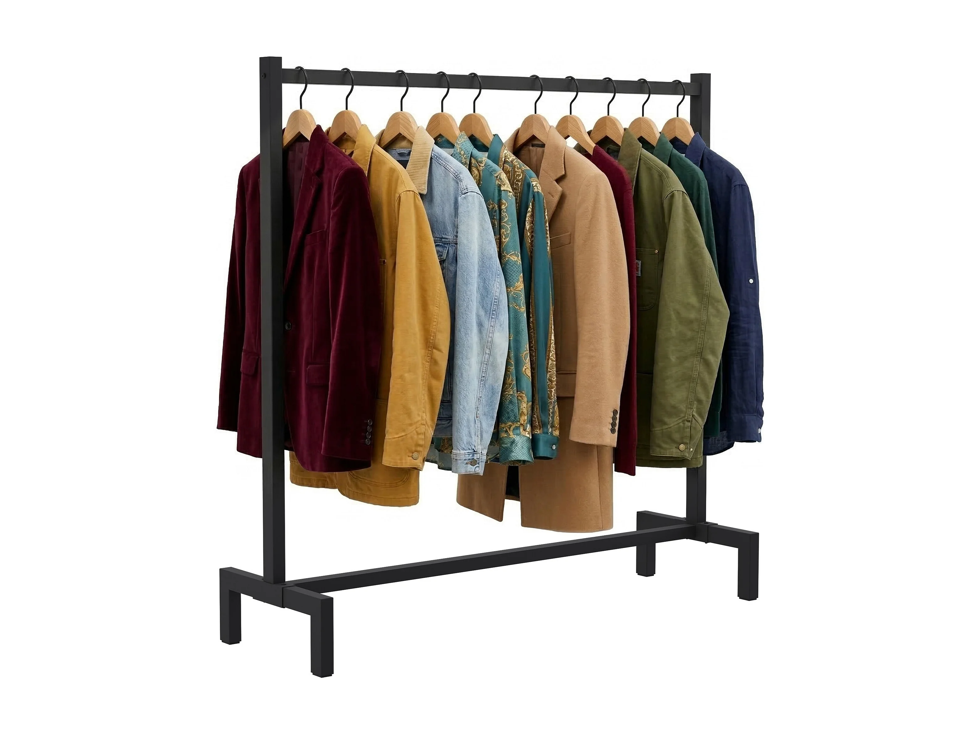 Kledingrek met schoenenplank, 145 cm hoge kledinghanger, ijzeren buis, 4 verstelbare poten, kledingrek voor slaapkamer, woonkamer, zwart
