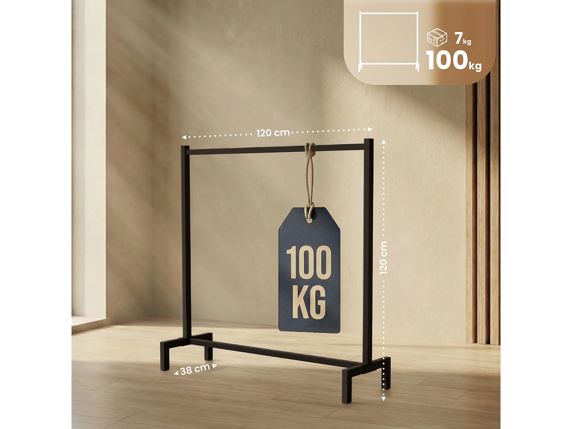 Kledingrek - Metaal - 120x38x120 cm - zwart - Lara