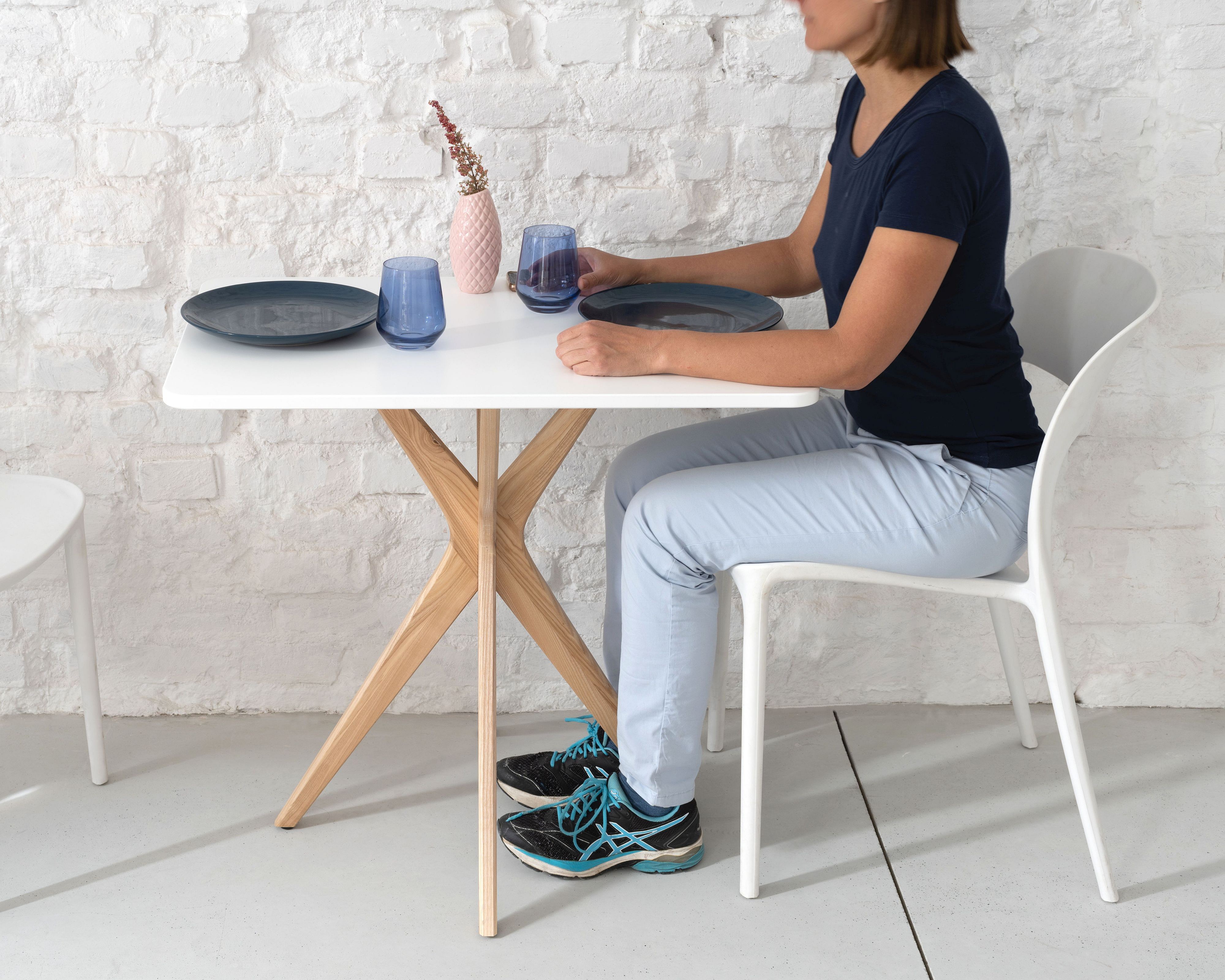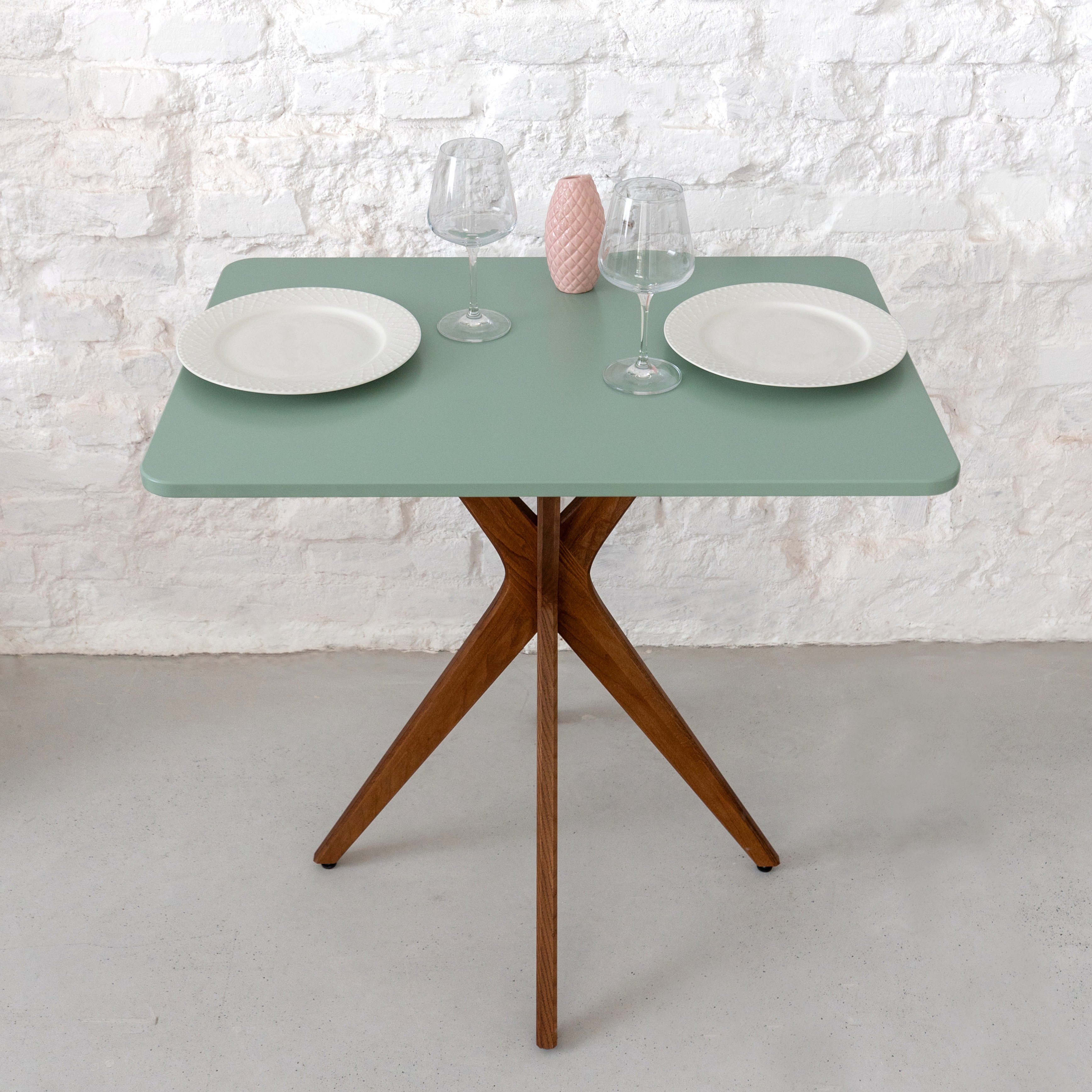 Kleine rechthoekige eettafel Jubi 55x80cm Parelgrijs met eiken poten
