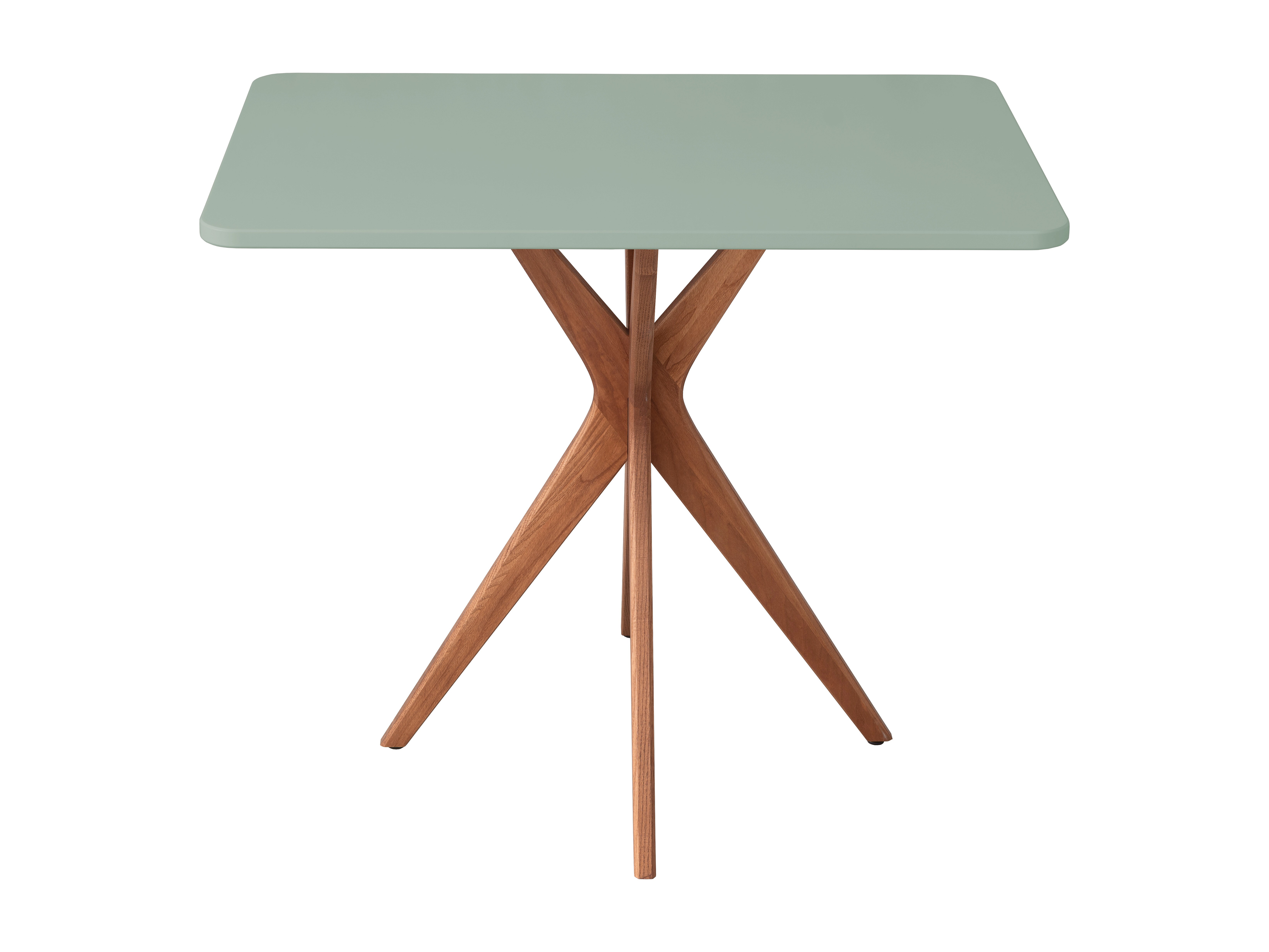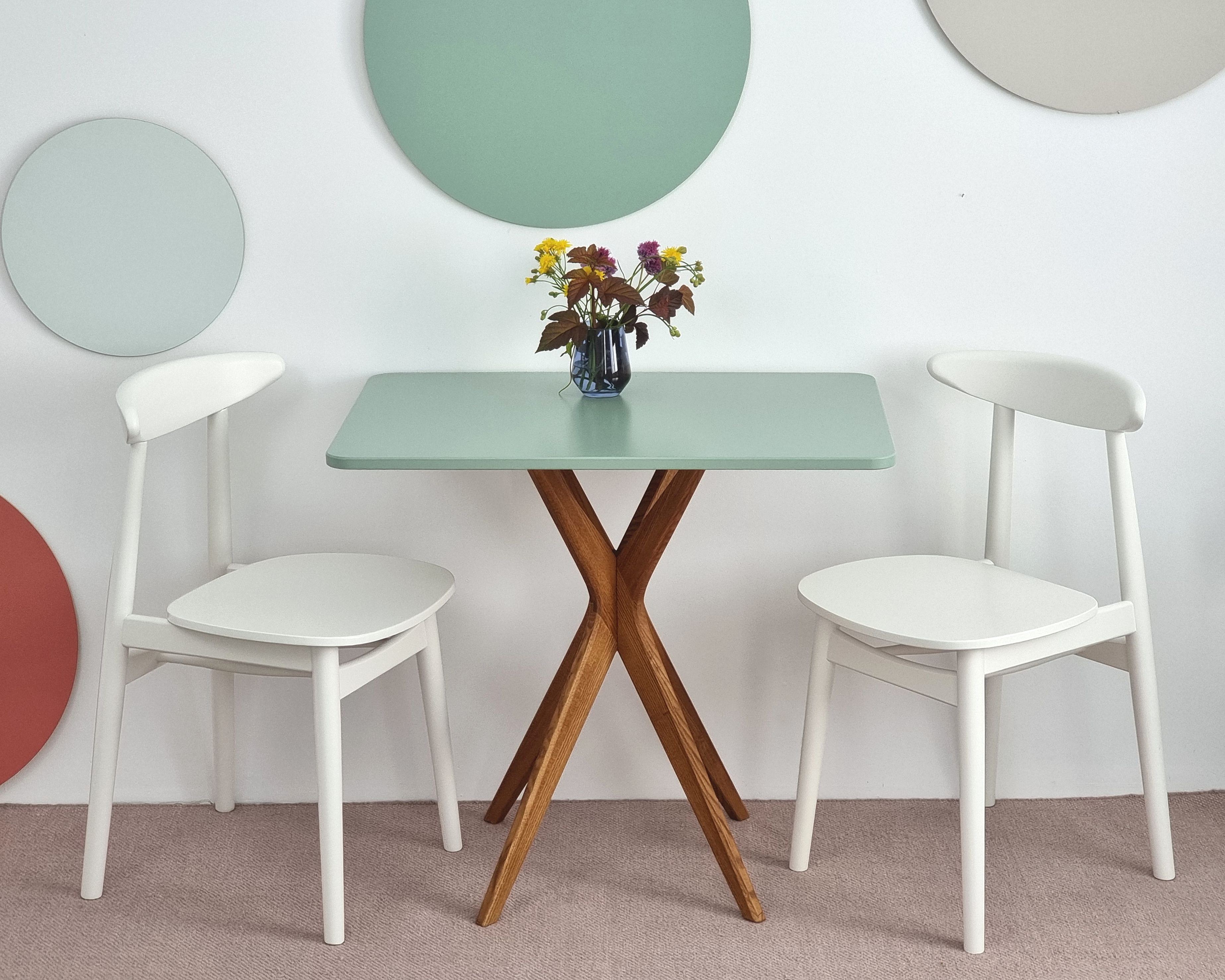 Kleine rechthoekige eettafel Jubi 55x80cm Saliegroen met eiken poten