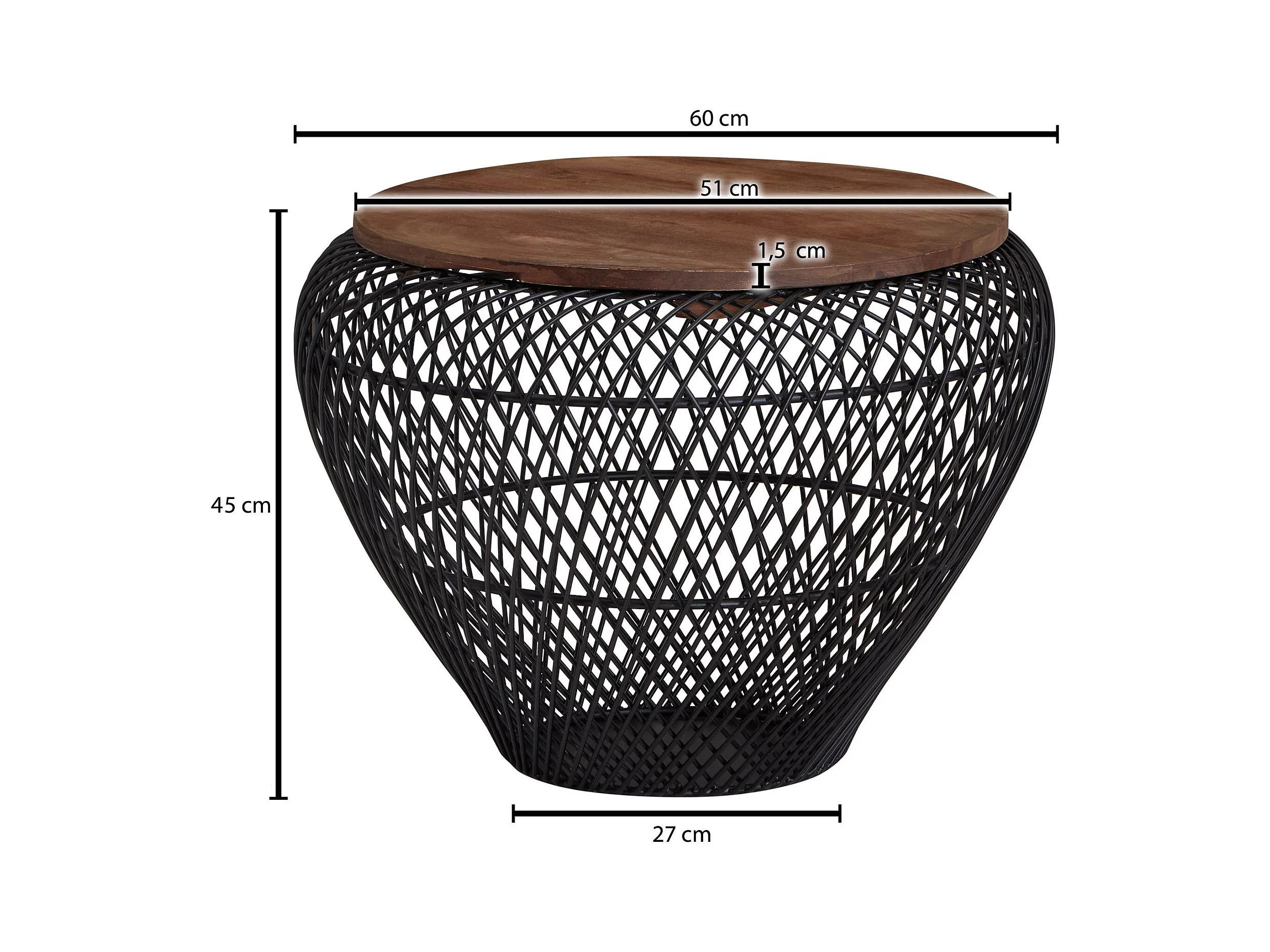 salontafel 60x43x60 cm acacia massief houten / metalen salontafel | Design woonkamer tafel rond | Massieve salontafel | Kleine tafel woonkamer