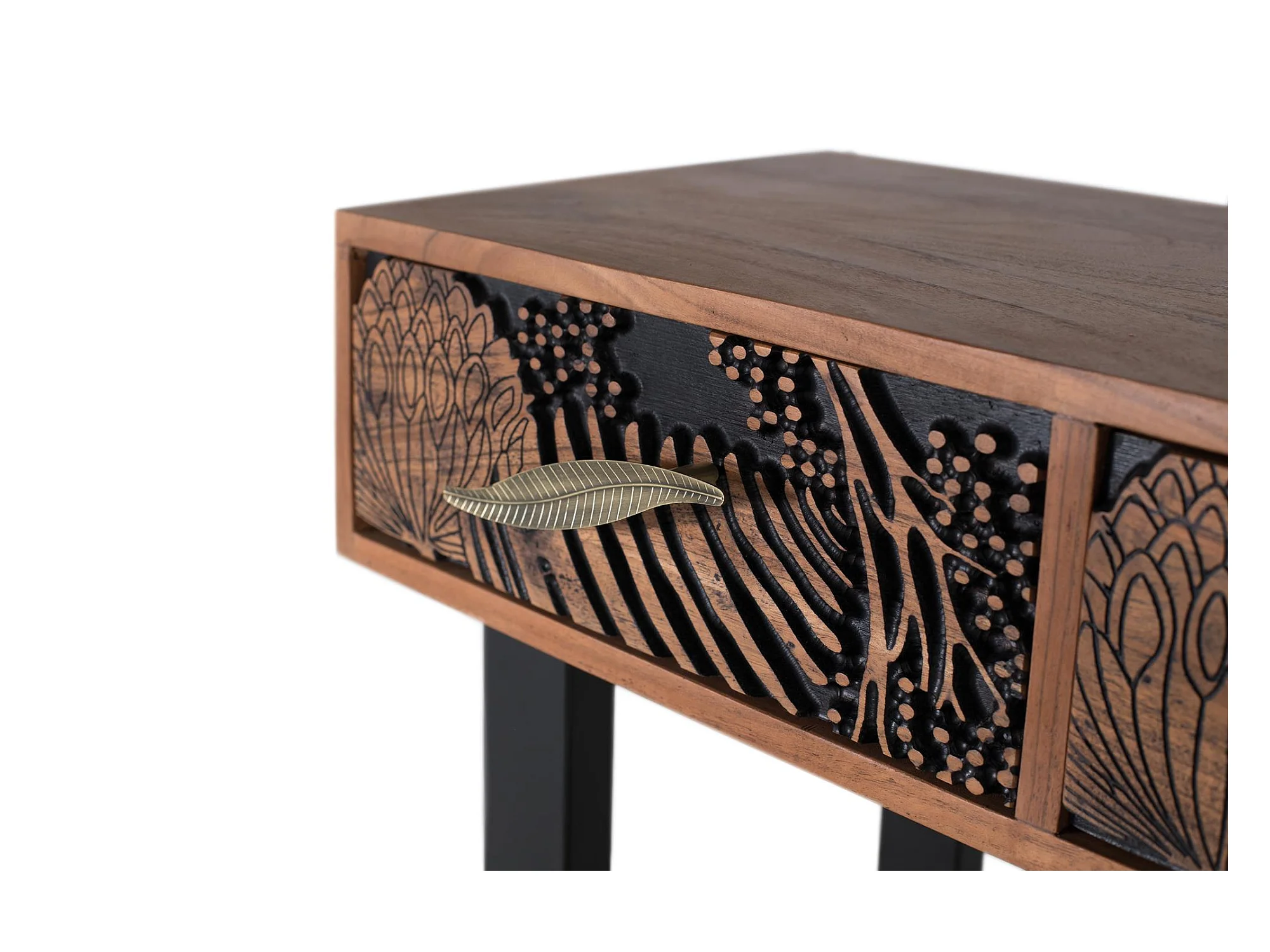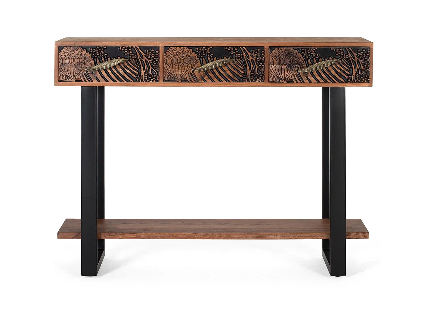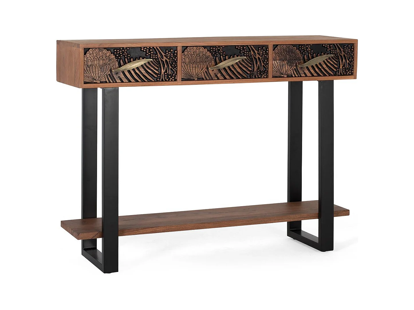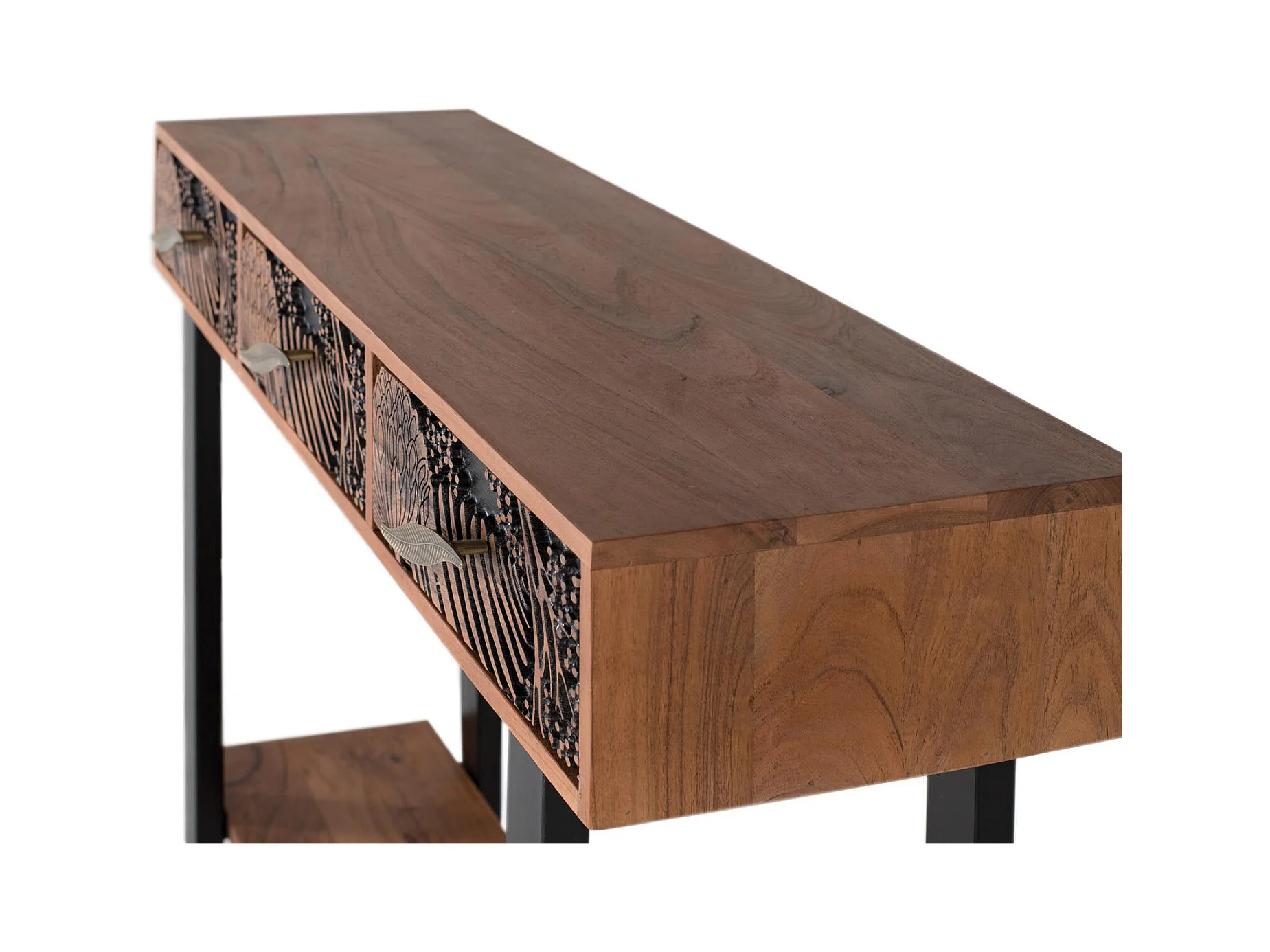 Konsole aus naturgefärbtem Akazienholz und Metall