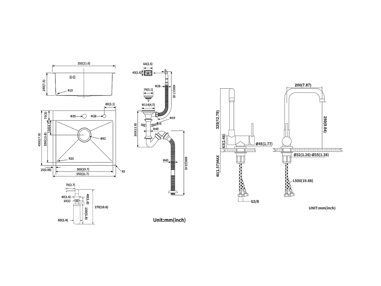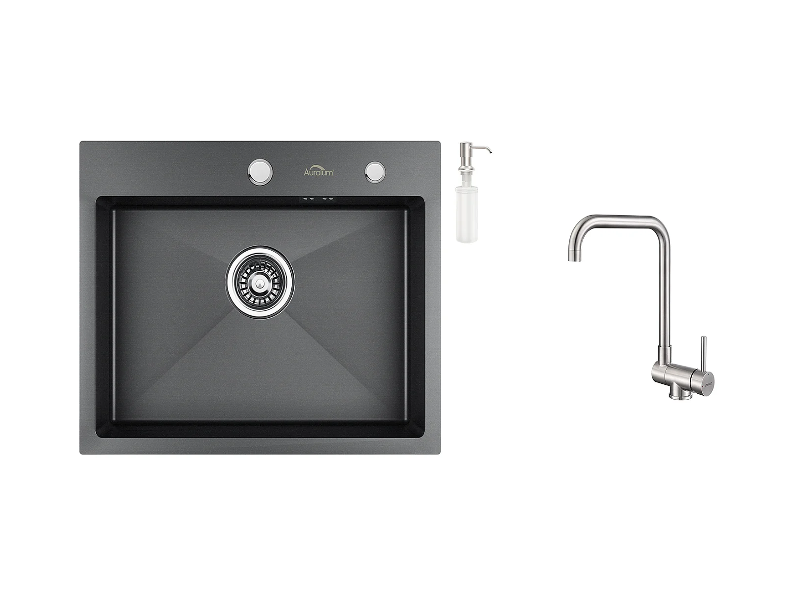AuraLum Max Gootsteen 1 Bak 55x45x18.5CM RVS Inbouw Gootsteen Donkergrijze Aanrecht Keuken met Zeepdistructor/Drainage Set,EU Model