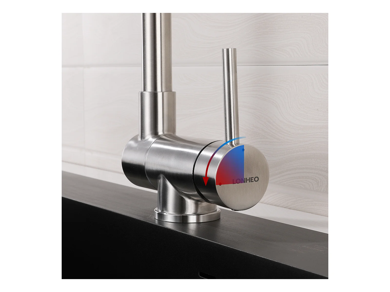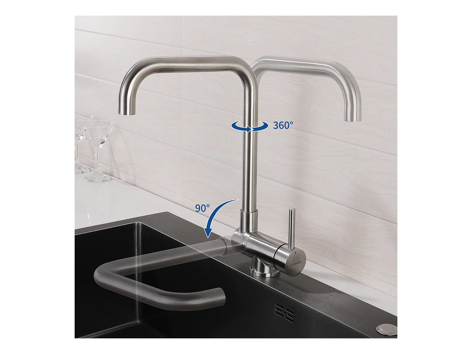 Aanrecht 1 Bak 55*45CM Zwart+RobinEn 360° Draaibare Keuken met Warm/Koud Water, Verchroomd