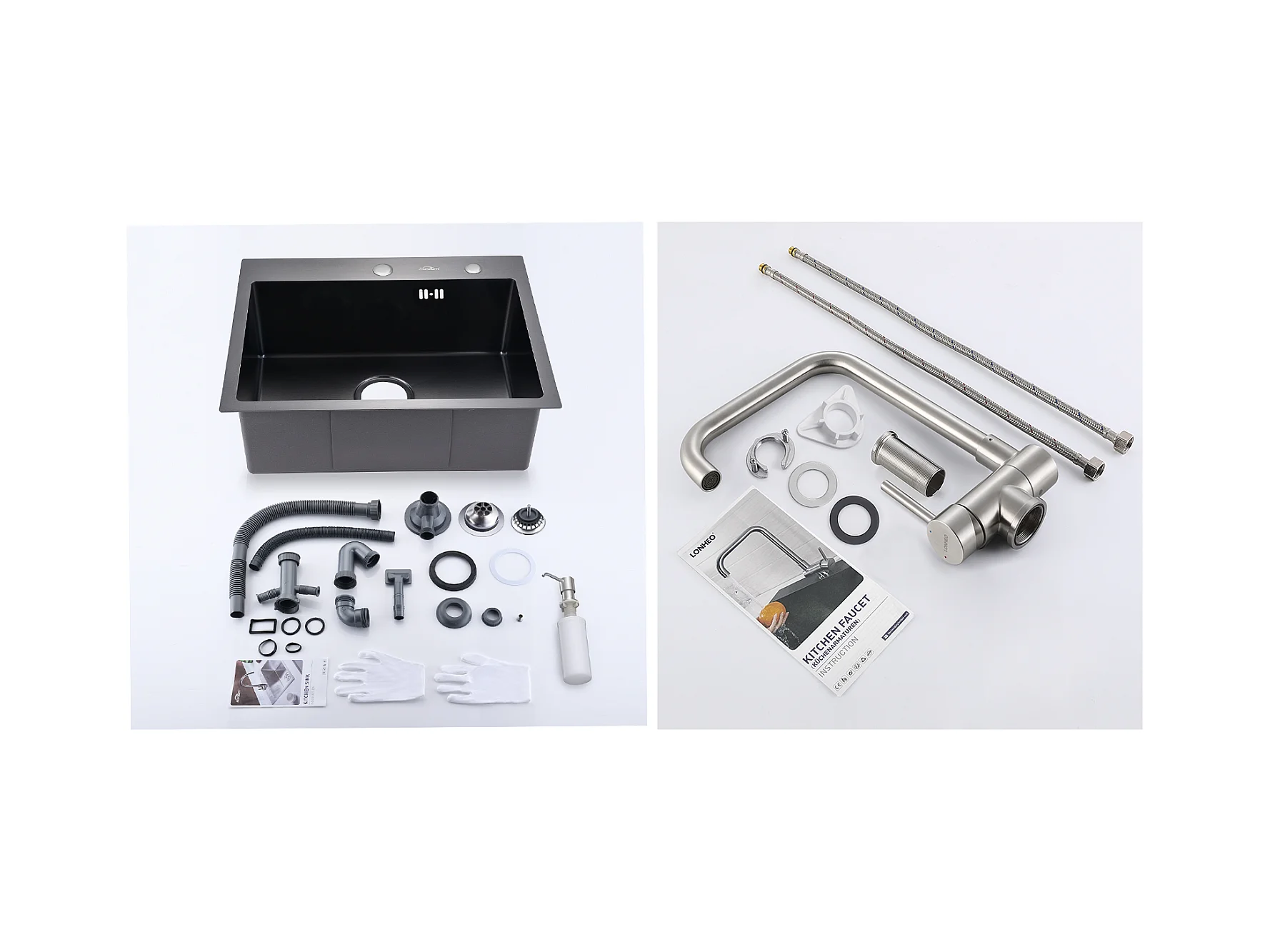 Aanrecht 1 Bak 55*45CM Zwart+Flexibele Keukenkraan Hoge Uitloop Draaibaar